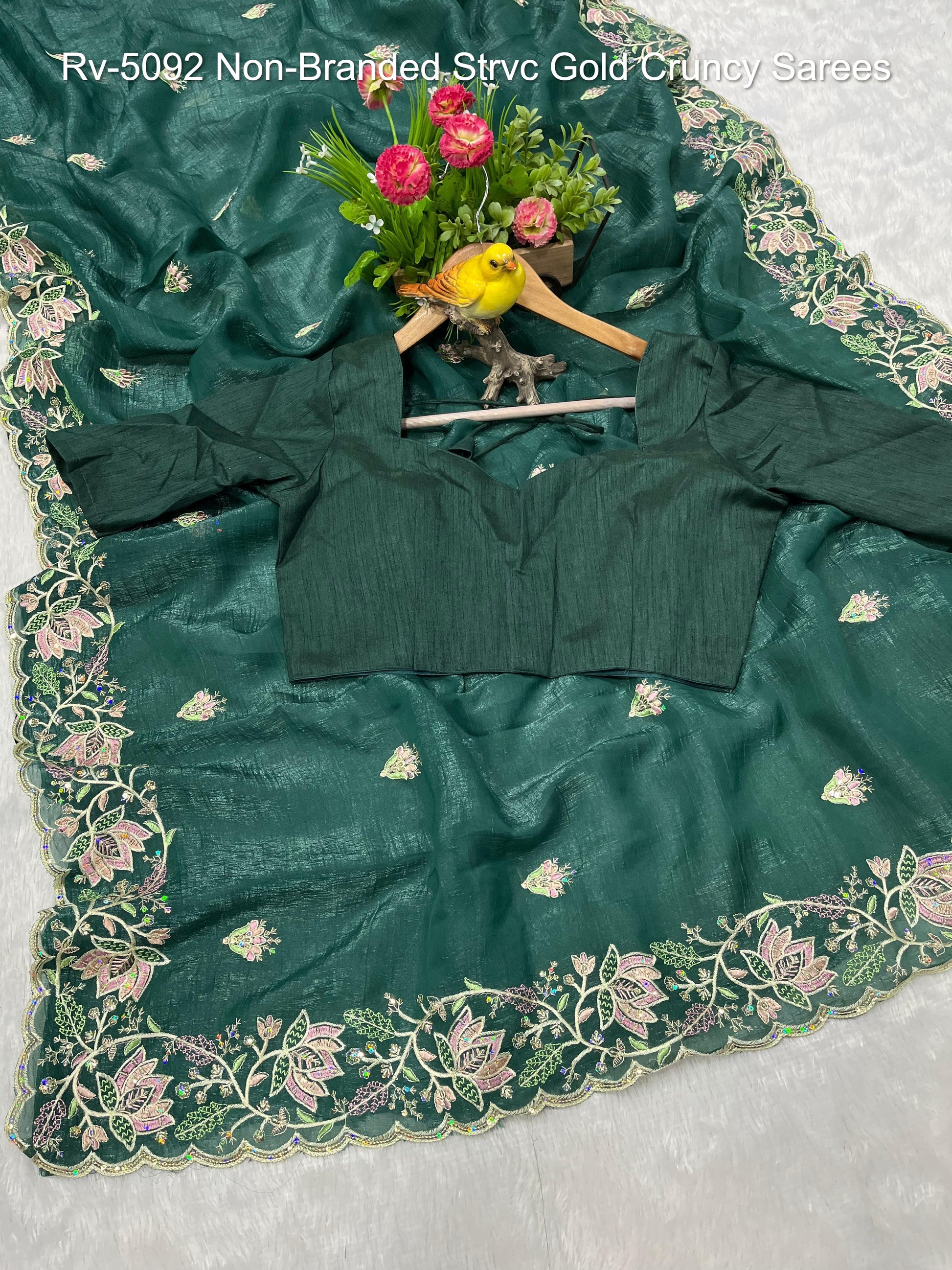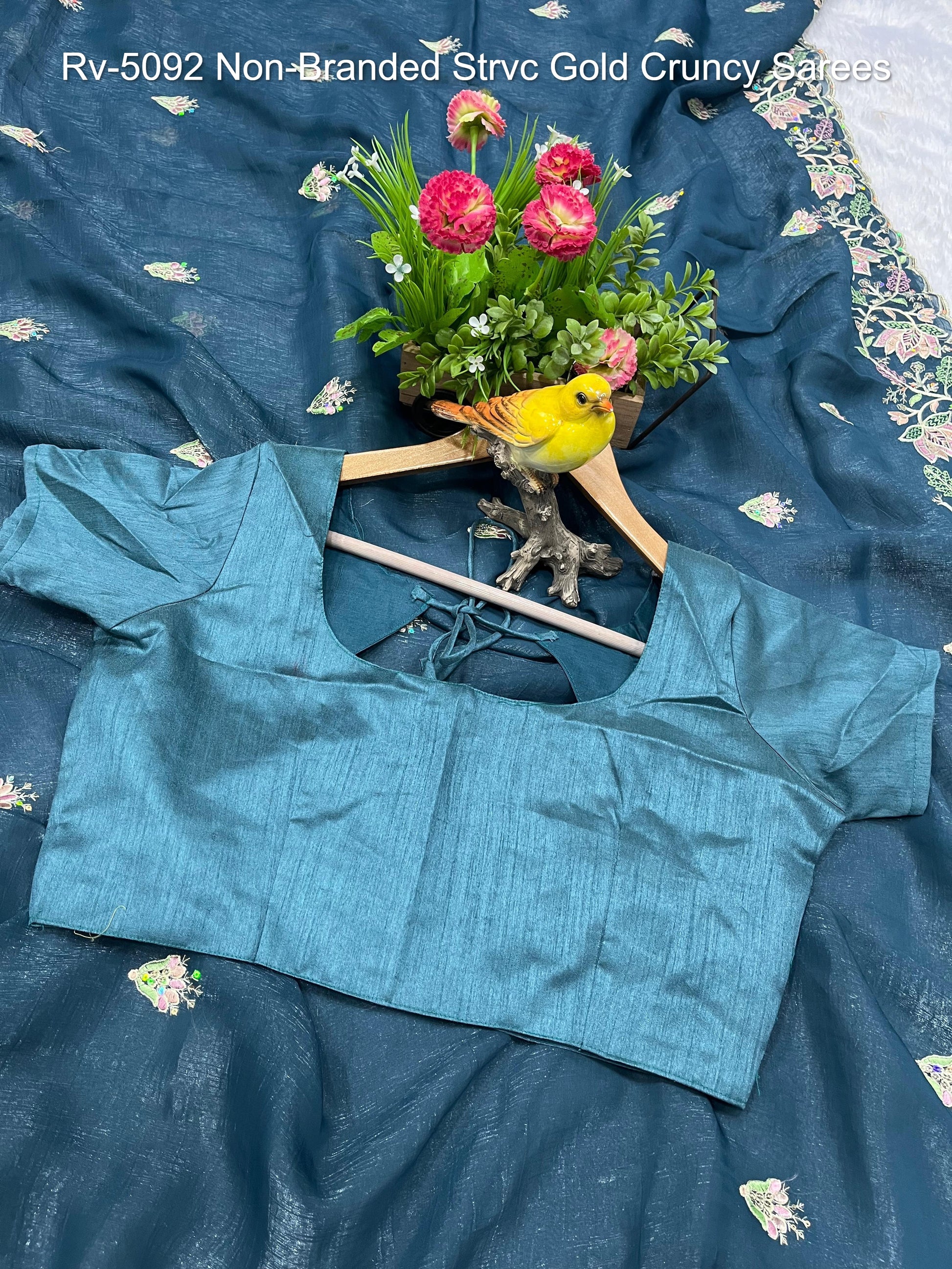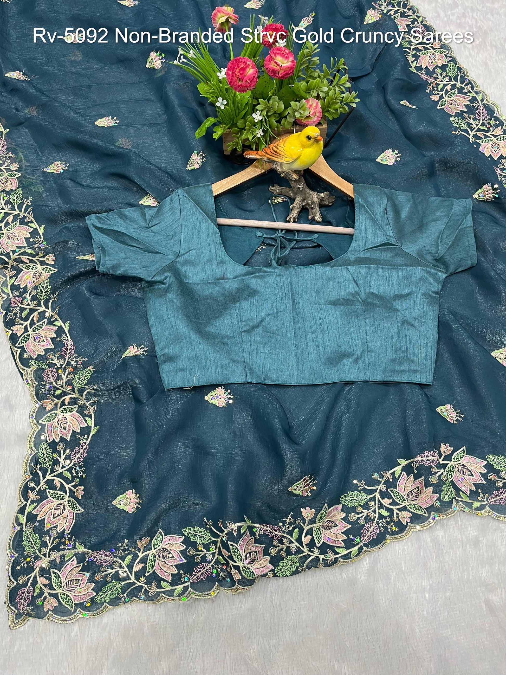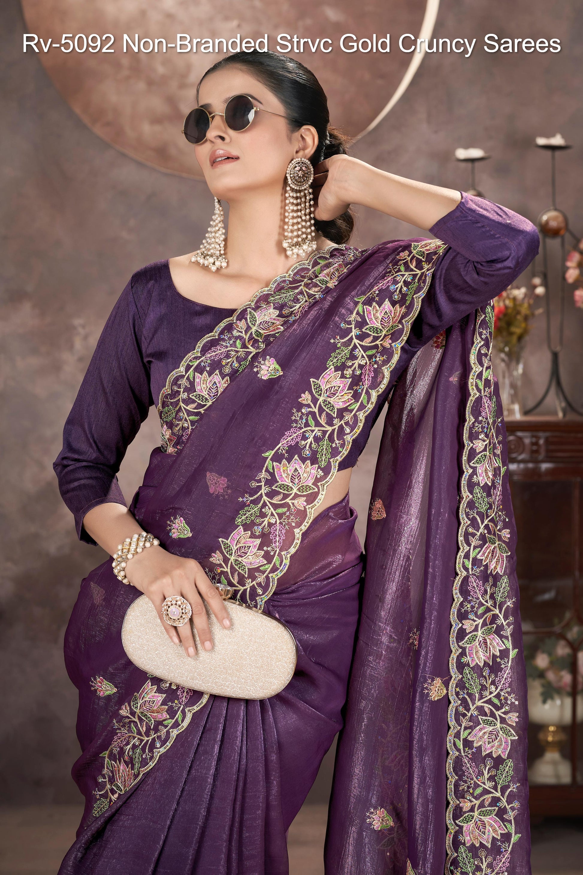 Rv-5092 Non-Branded Strvc Gold Cruncy Sarees