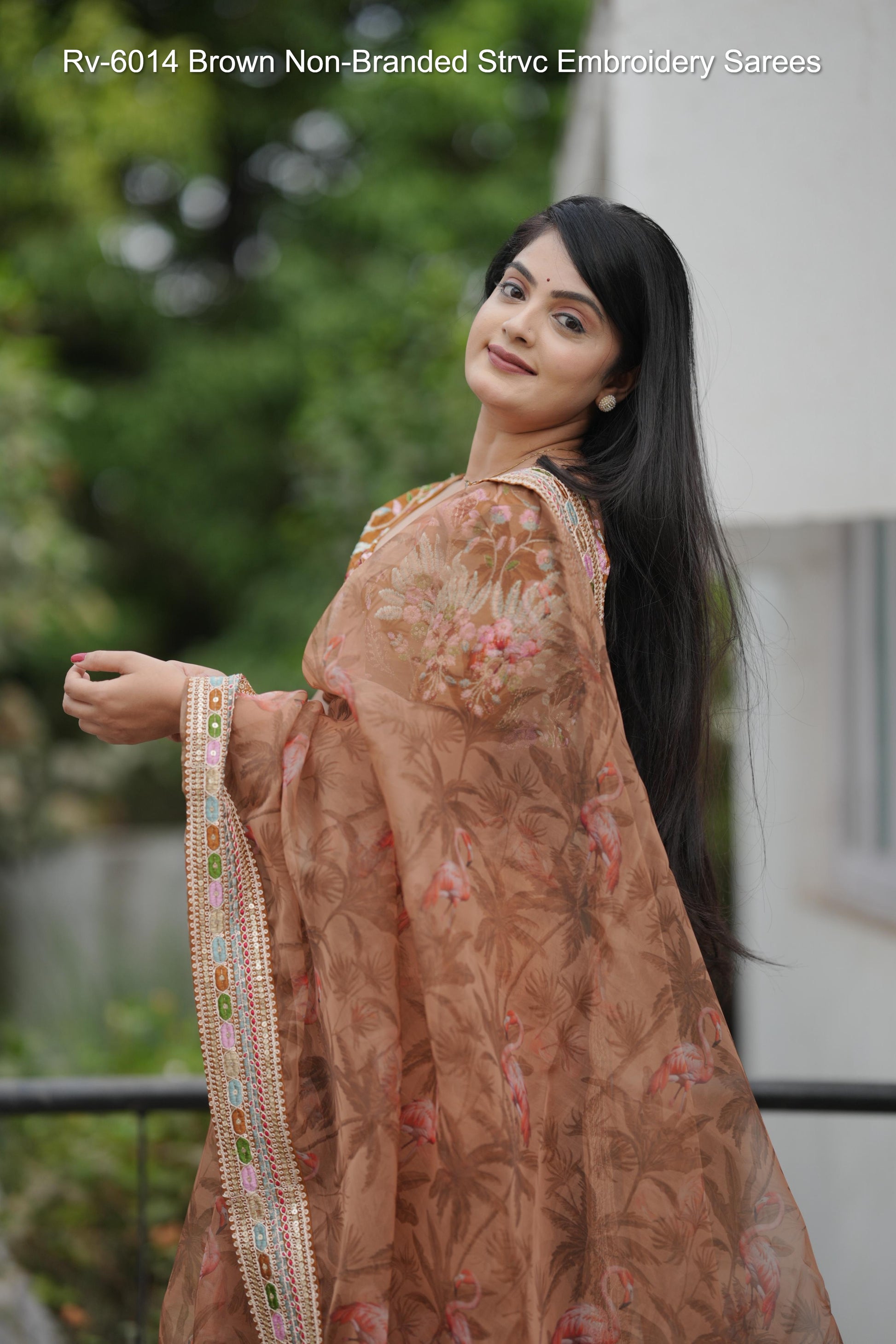 Rv-6014 Brown Non-Branded Strvc Embroidery Sarees