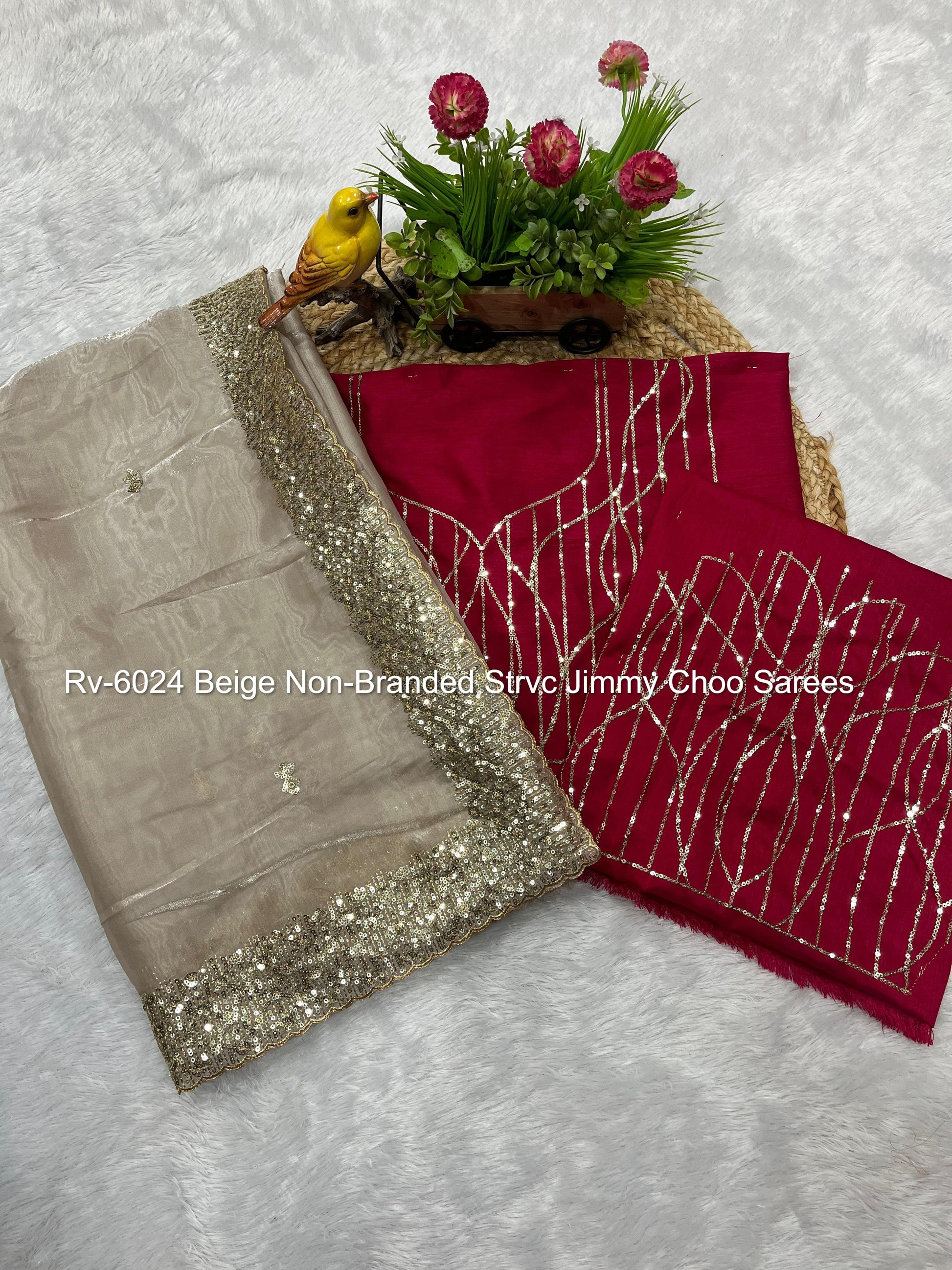 Rv-6024 Beige Non-Branded Strvc Jimmy Choo Sarees