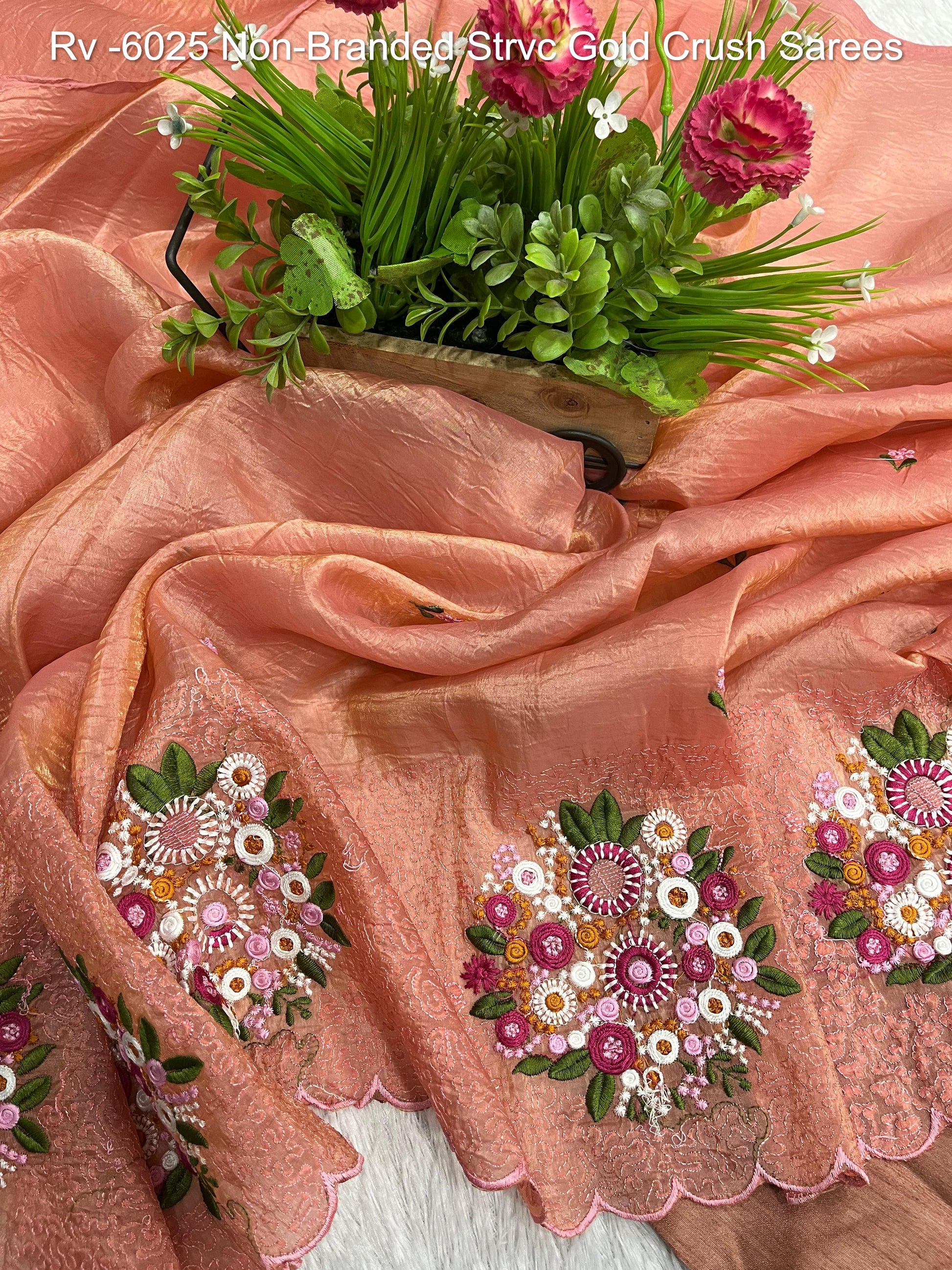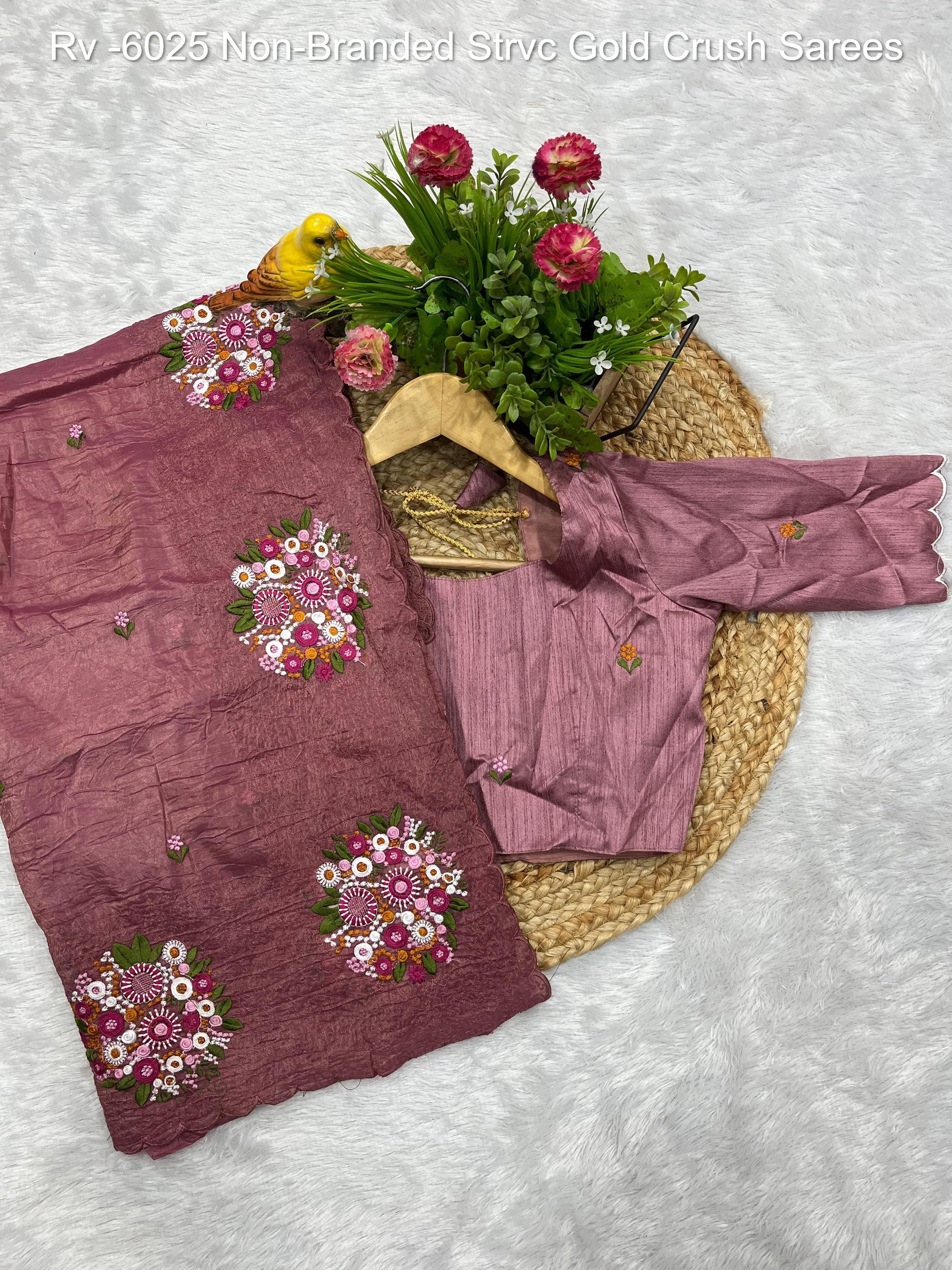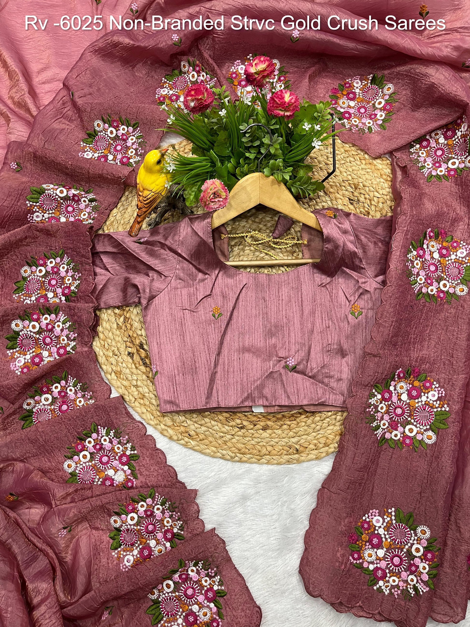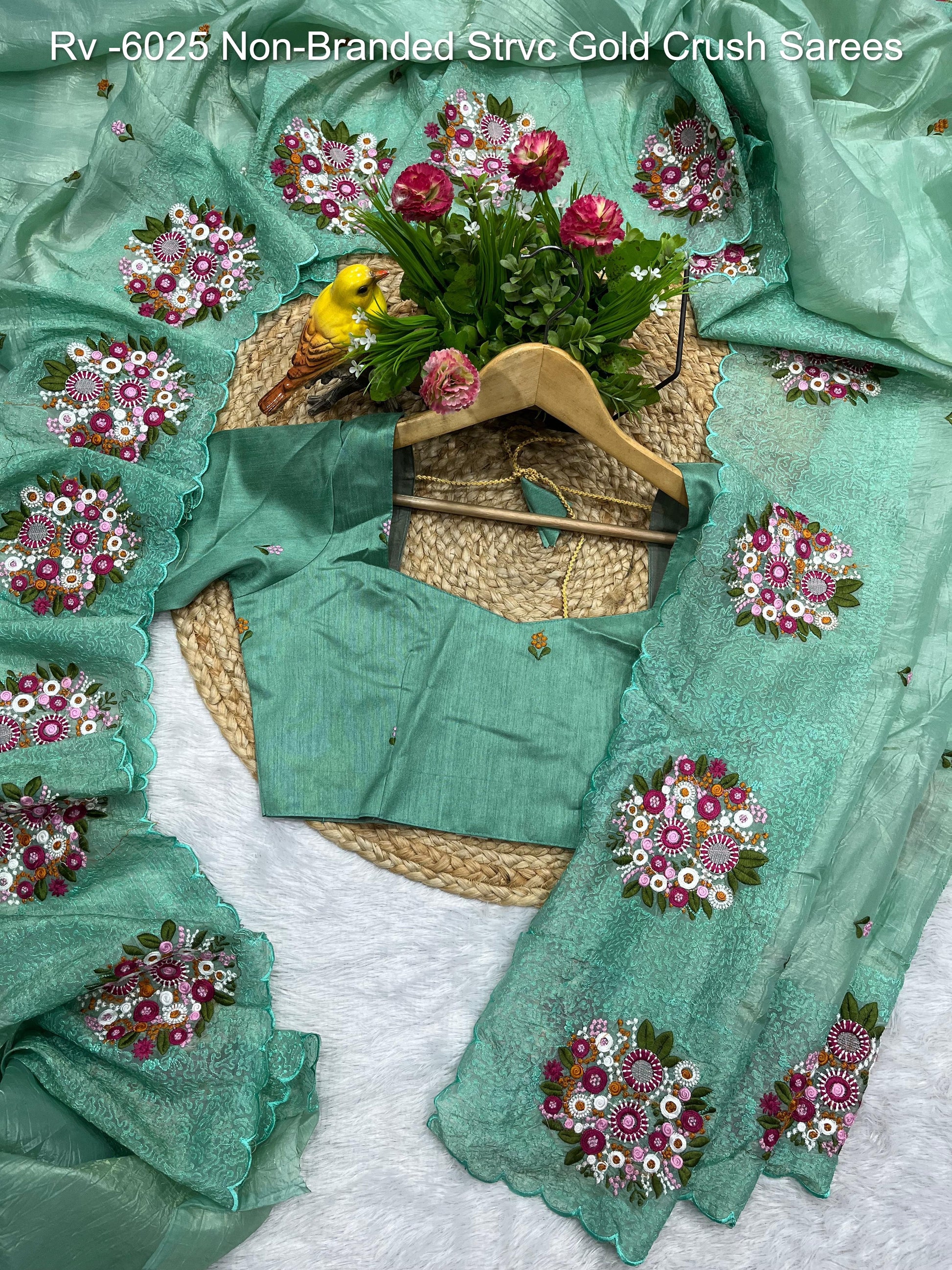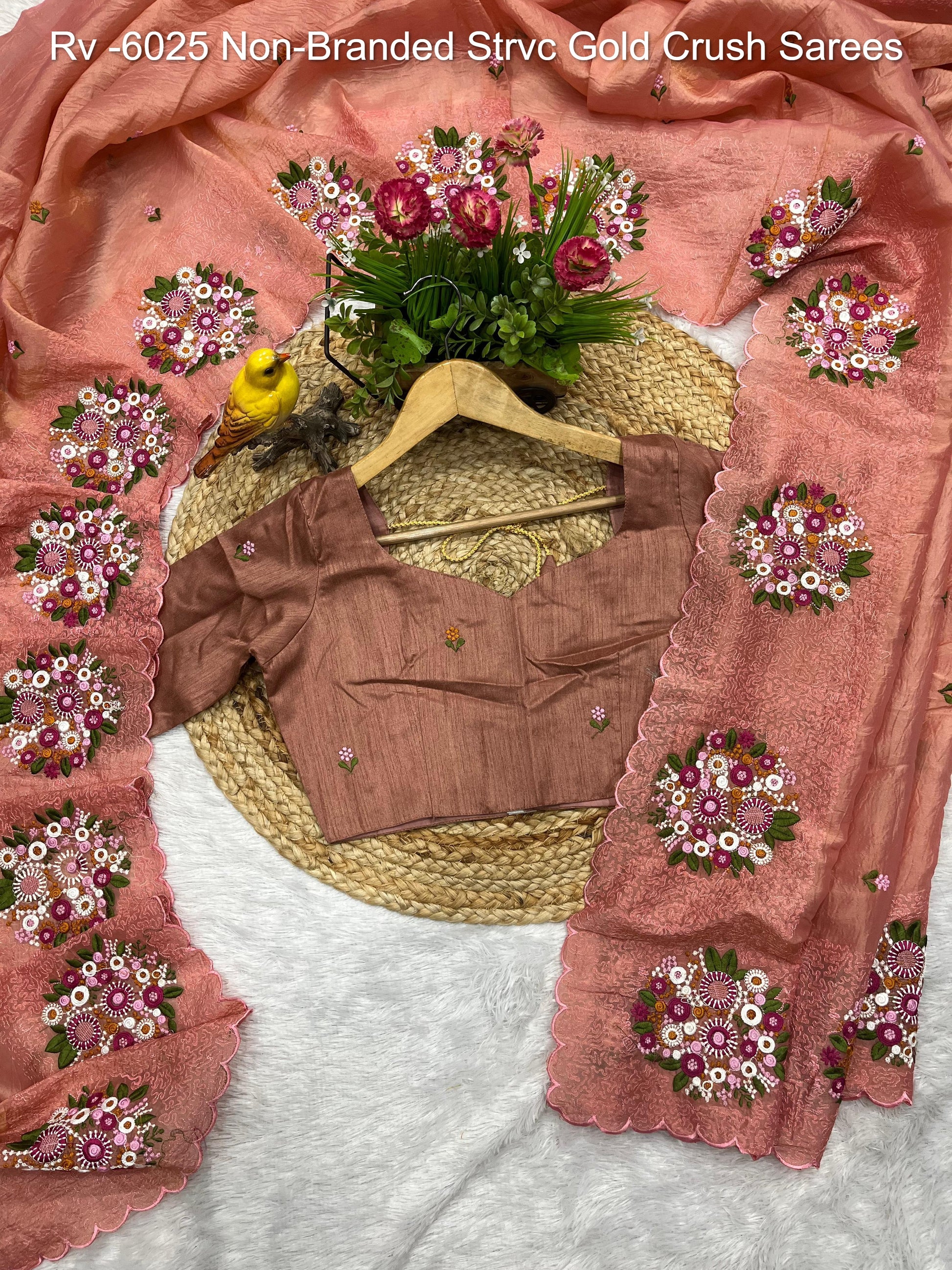 Rv -6025 Non-Branded Strvc Gold Crush Sarees