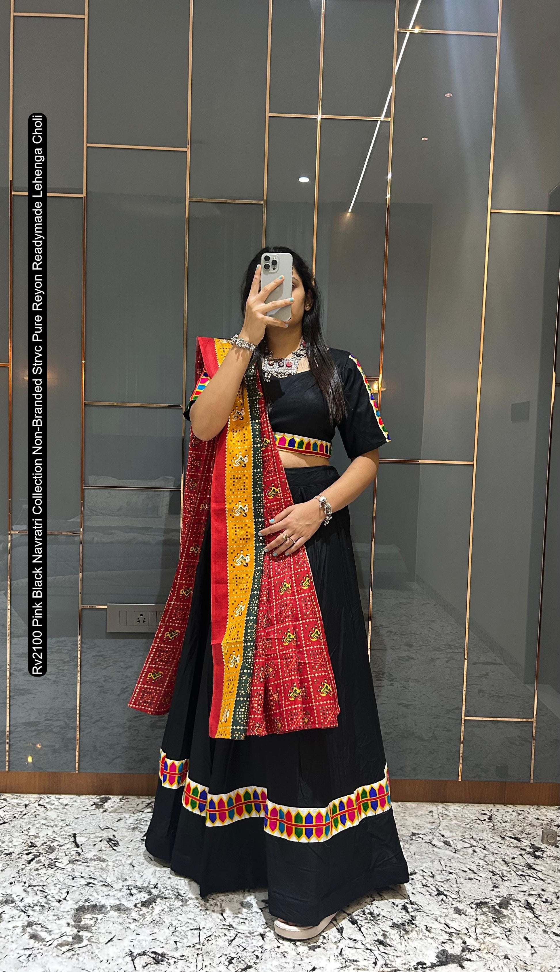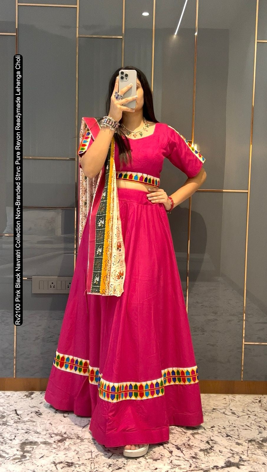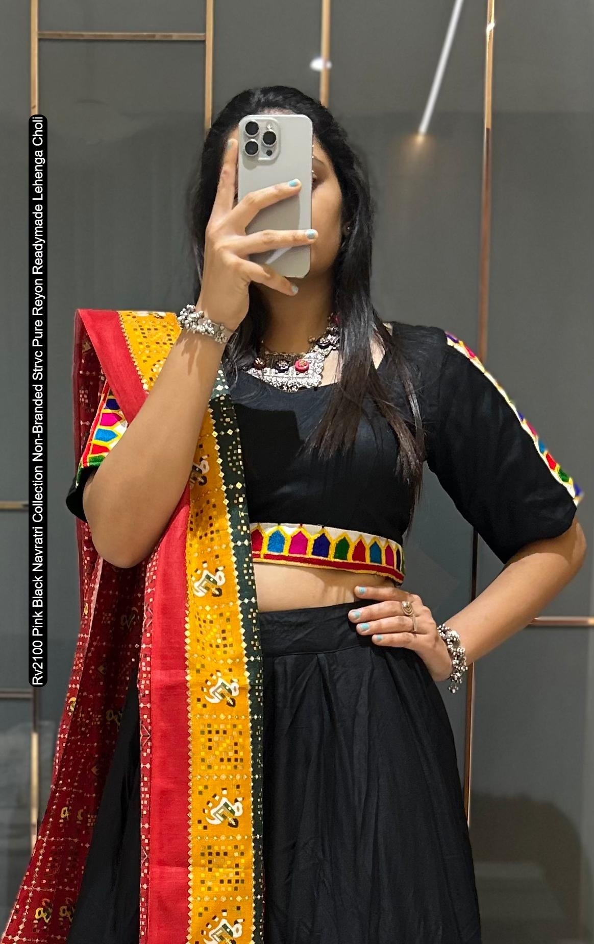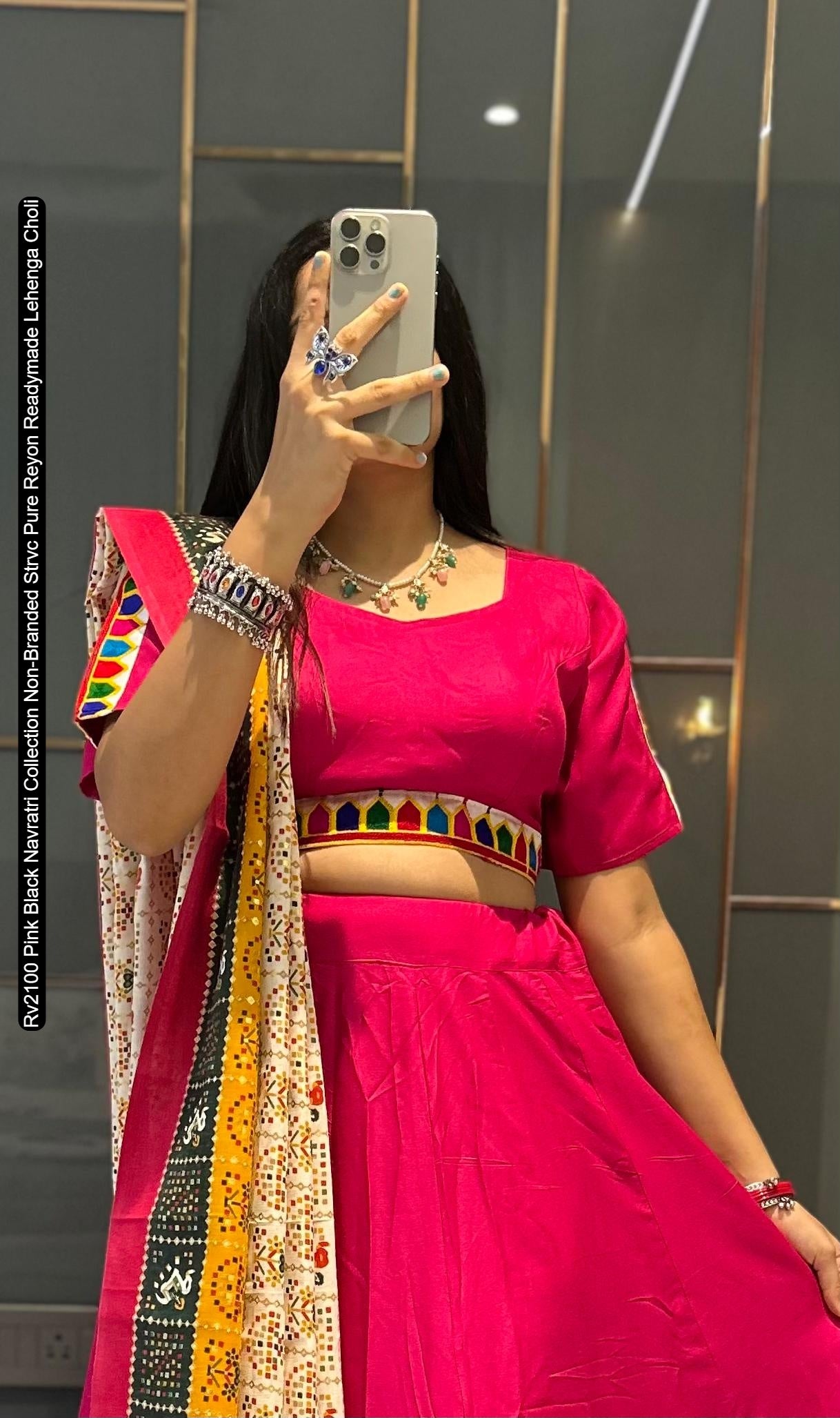 Rv2100 Pink Black Navratri Collection Non-Branded Strvc Pure Reyon Readymade Lehenga Choli