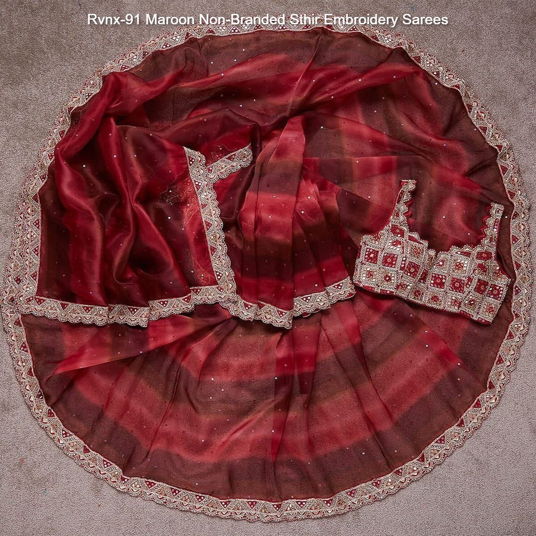 Rvnx-91 Maroon Non-Branded Sthir Embroidery Sarees