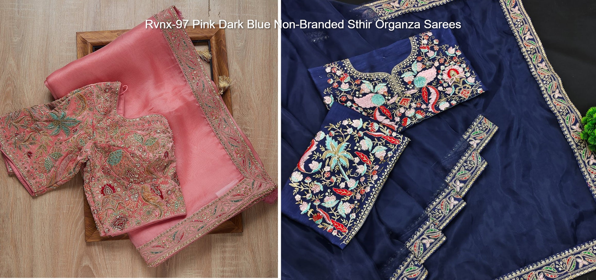 - Rvnx-97 Pink Dark Blue Non-Branded Sthir Organza Sarees Dealer Ahmedabad Surat Wholesale Gujarat India Lowest Price Best Quality Buy Purchase Shipping Kurta Salwaar Kameez Also free Cash on delivery