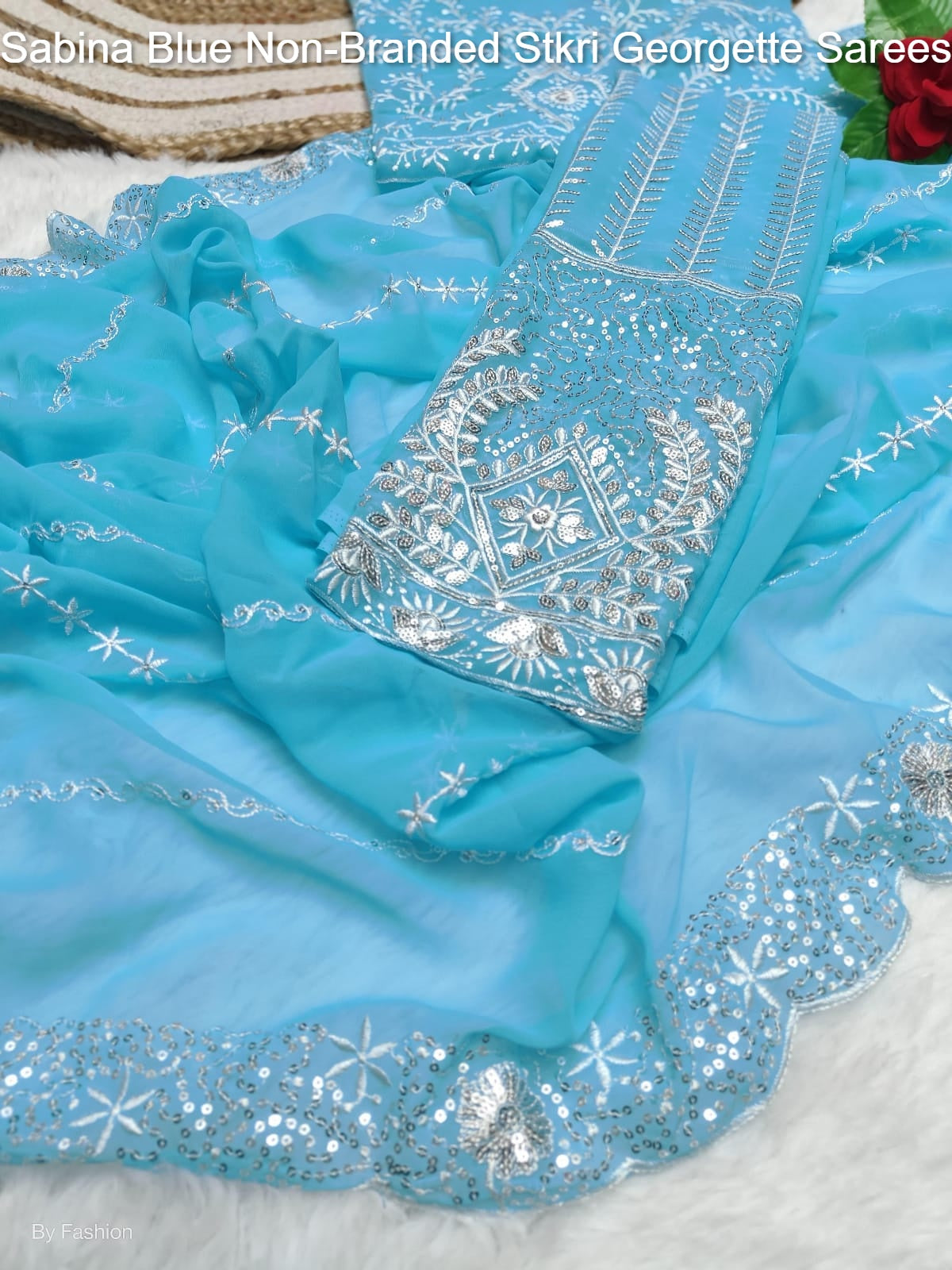 - Sabina Blue Non-Branded Stkri Georgette Sarees Dealer Ahmedabad Surat Wholesale Gujarat India Lowest Price Best Quality Buy Purchase Shipping Kurta Salwaar Kameez Also free Cash on delivery