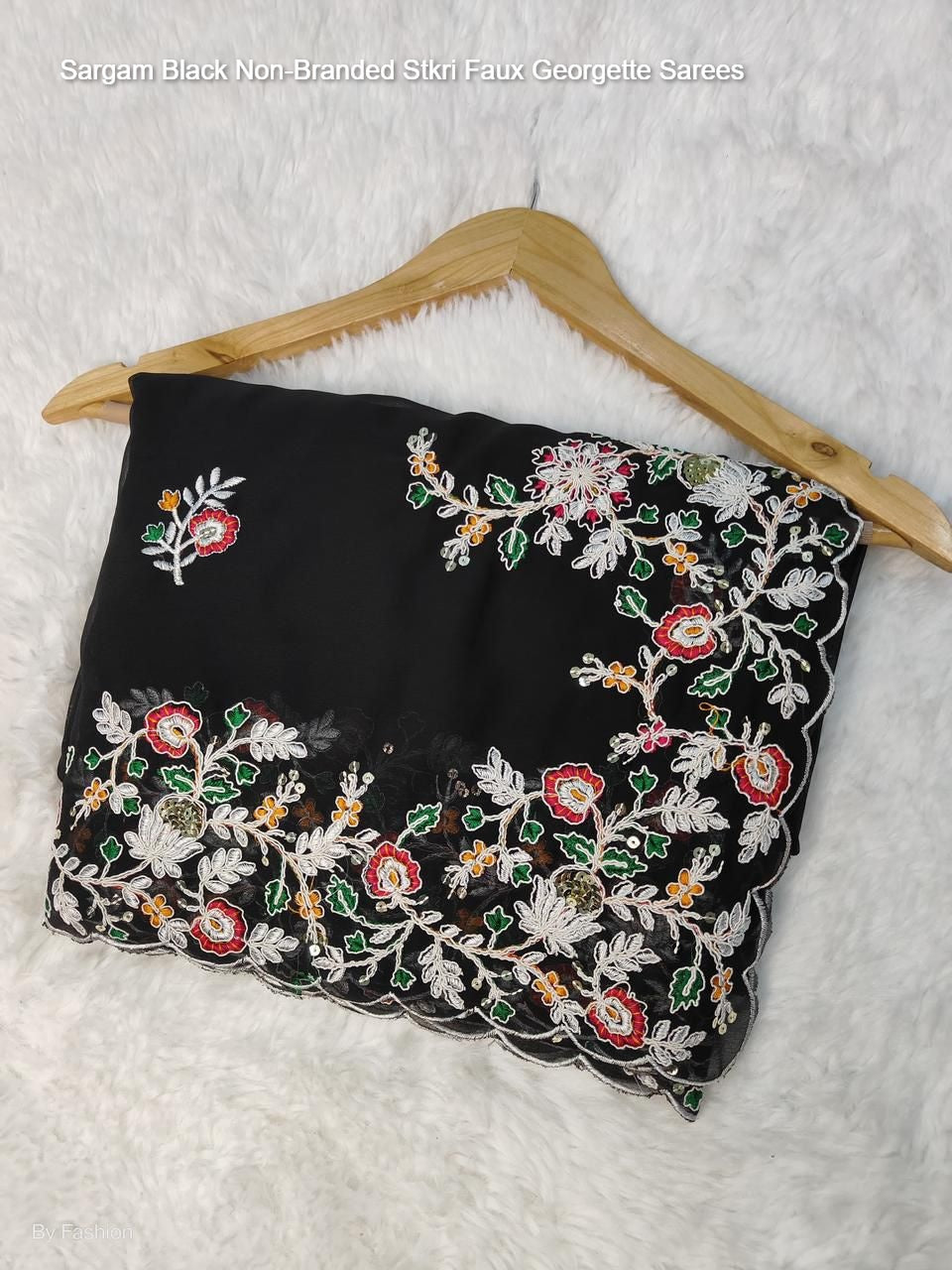 Sargam Black Non-Branded Stkri Faux Georgette Sarees