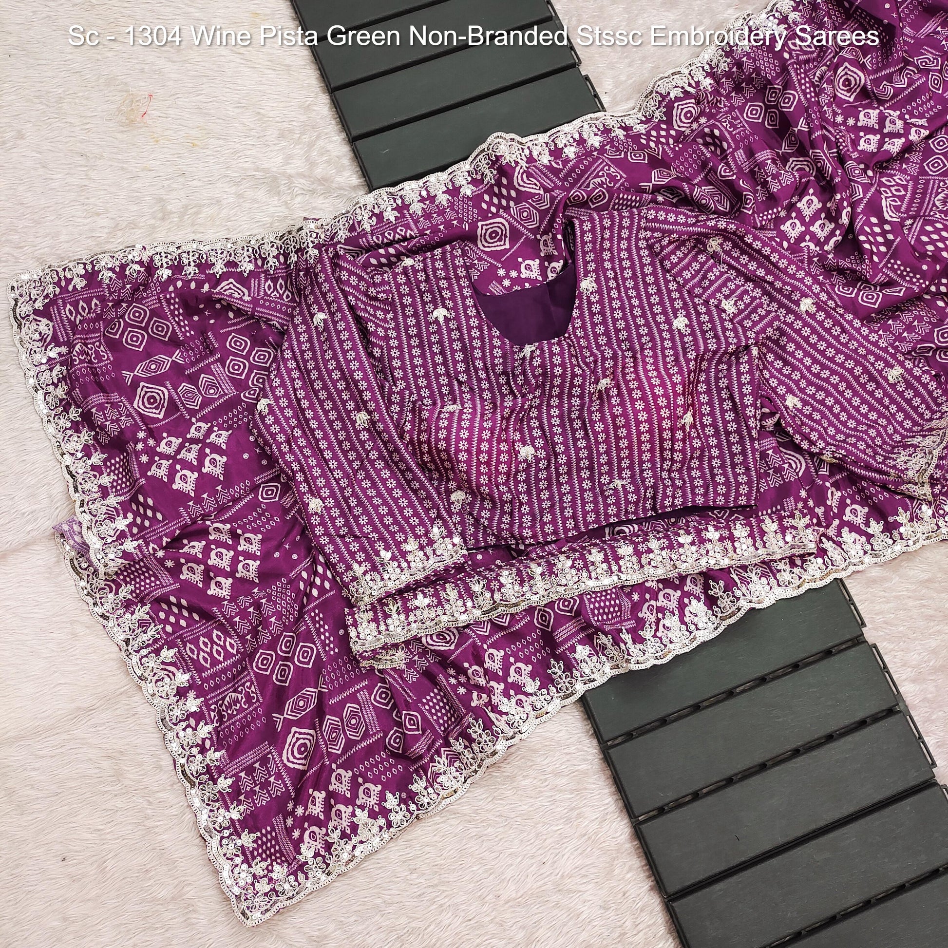 Sc - 1304 Wine Pista Green Non-Branded Stssc Embroidery Sarees