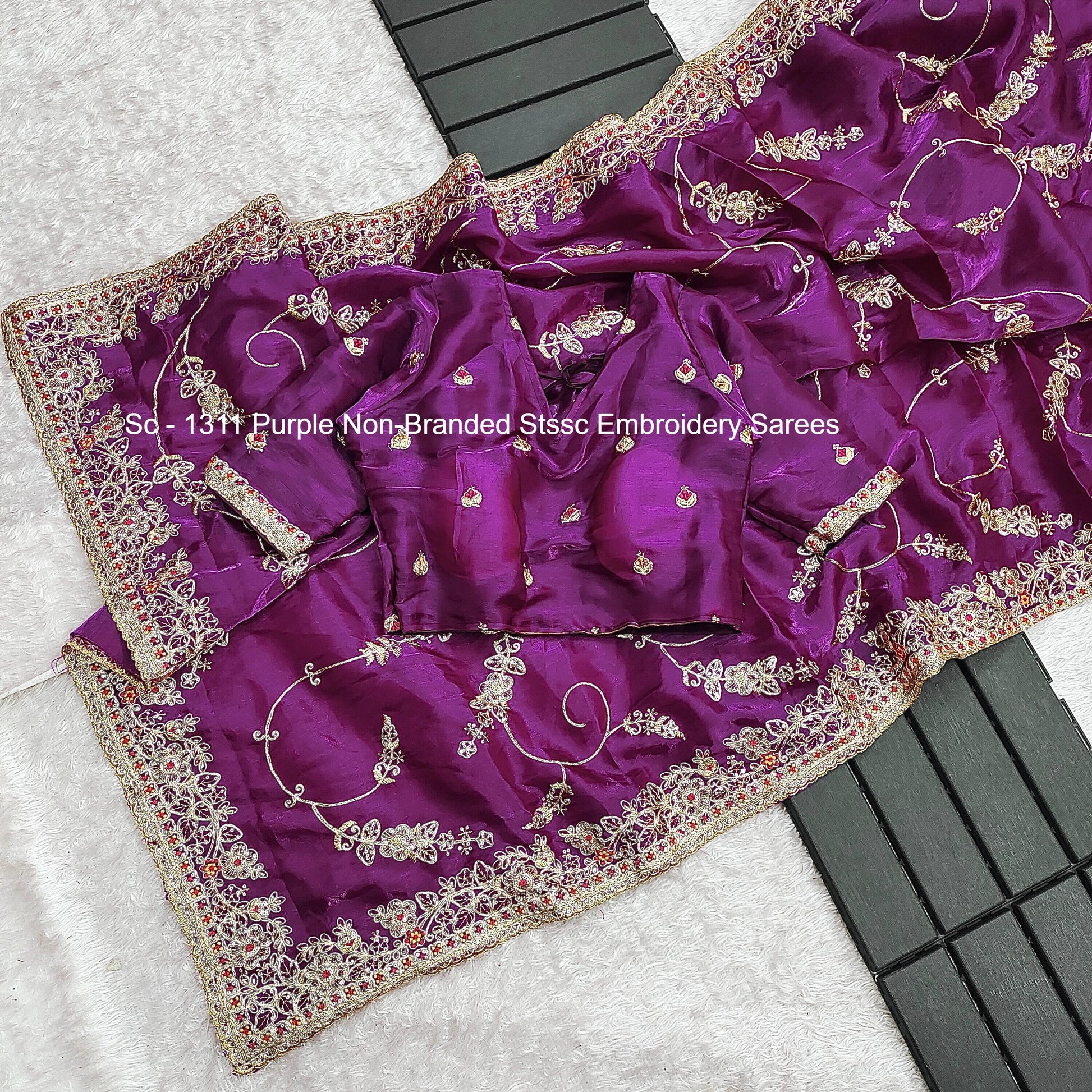Sc - 1311 Purple Non-Branded Stssc Embroidery Sarees