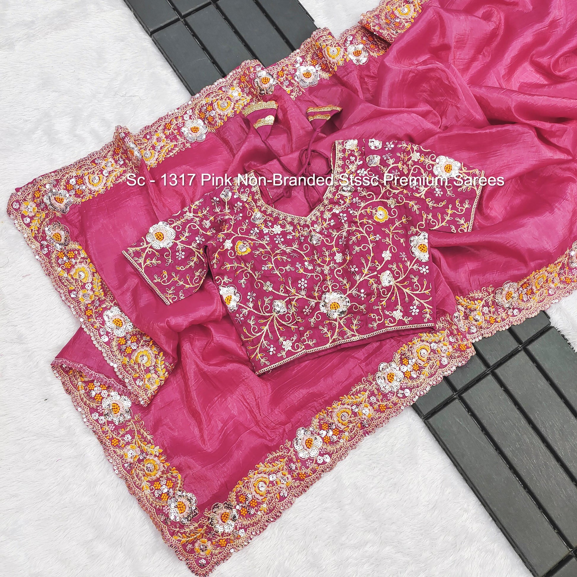 Sc - 1317 Pink Non-Branded Stssc Premium Sarees