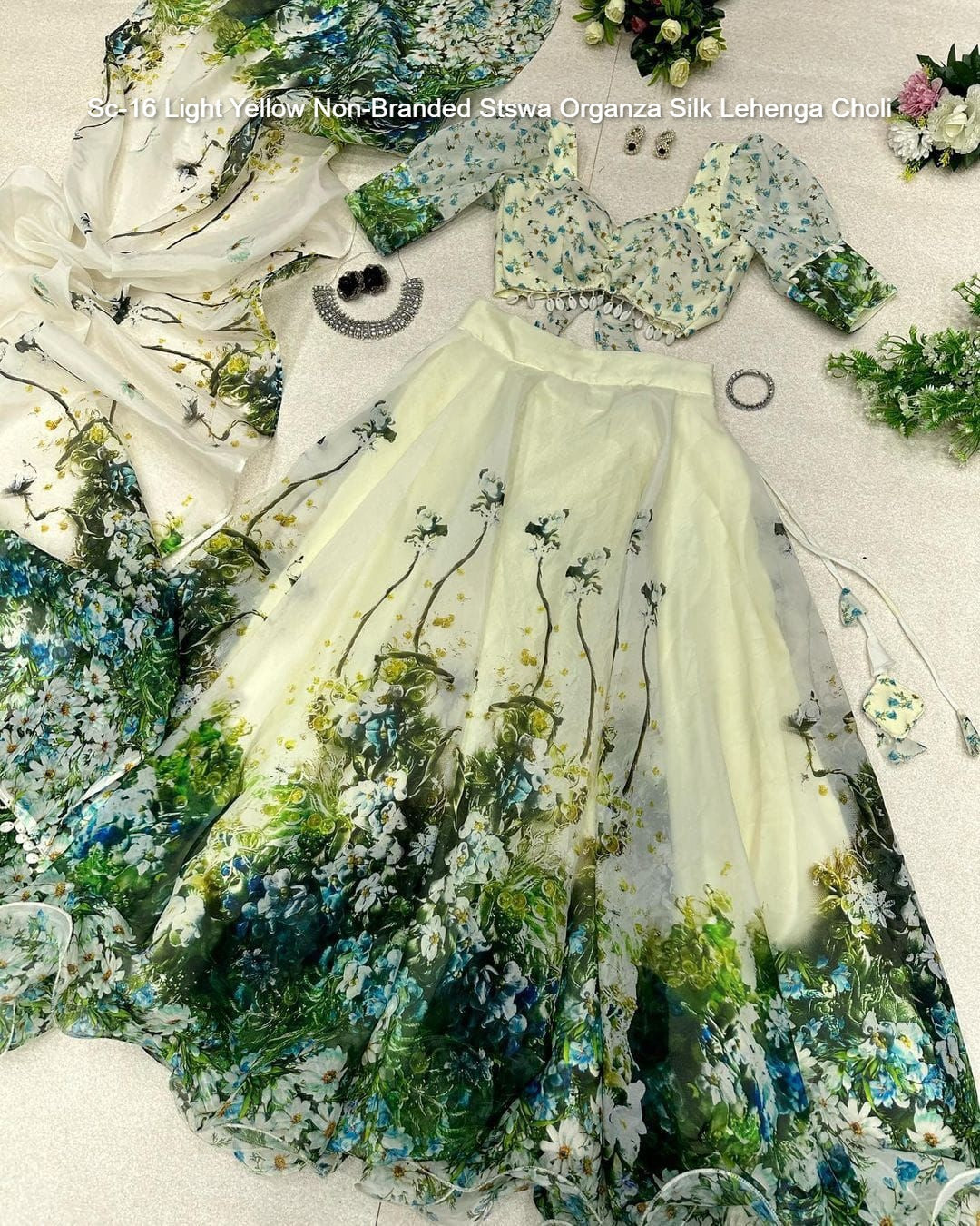 Sc-16 Light Yellow Non-Branded Stswa Organza Silk Lehenga Choli