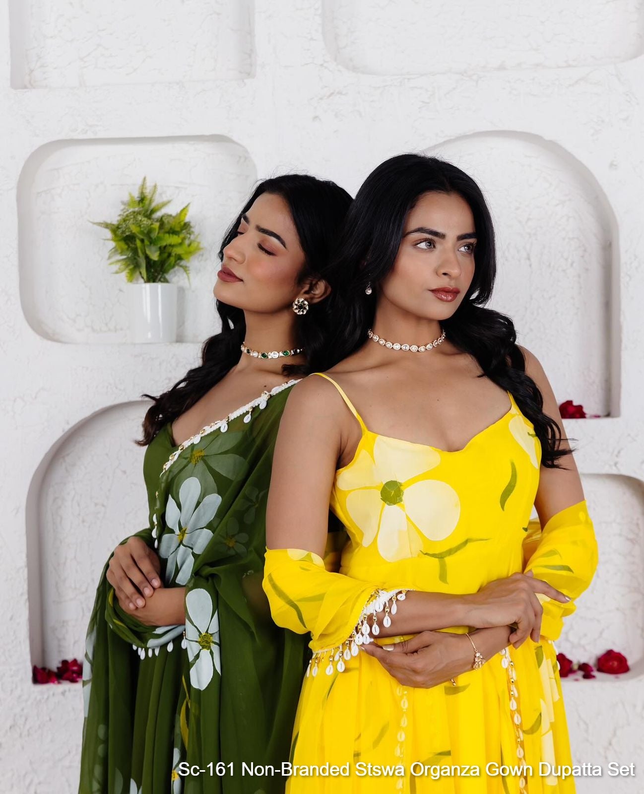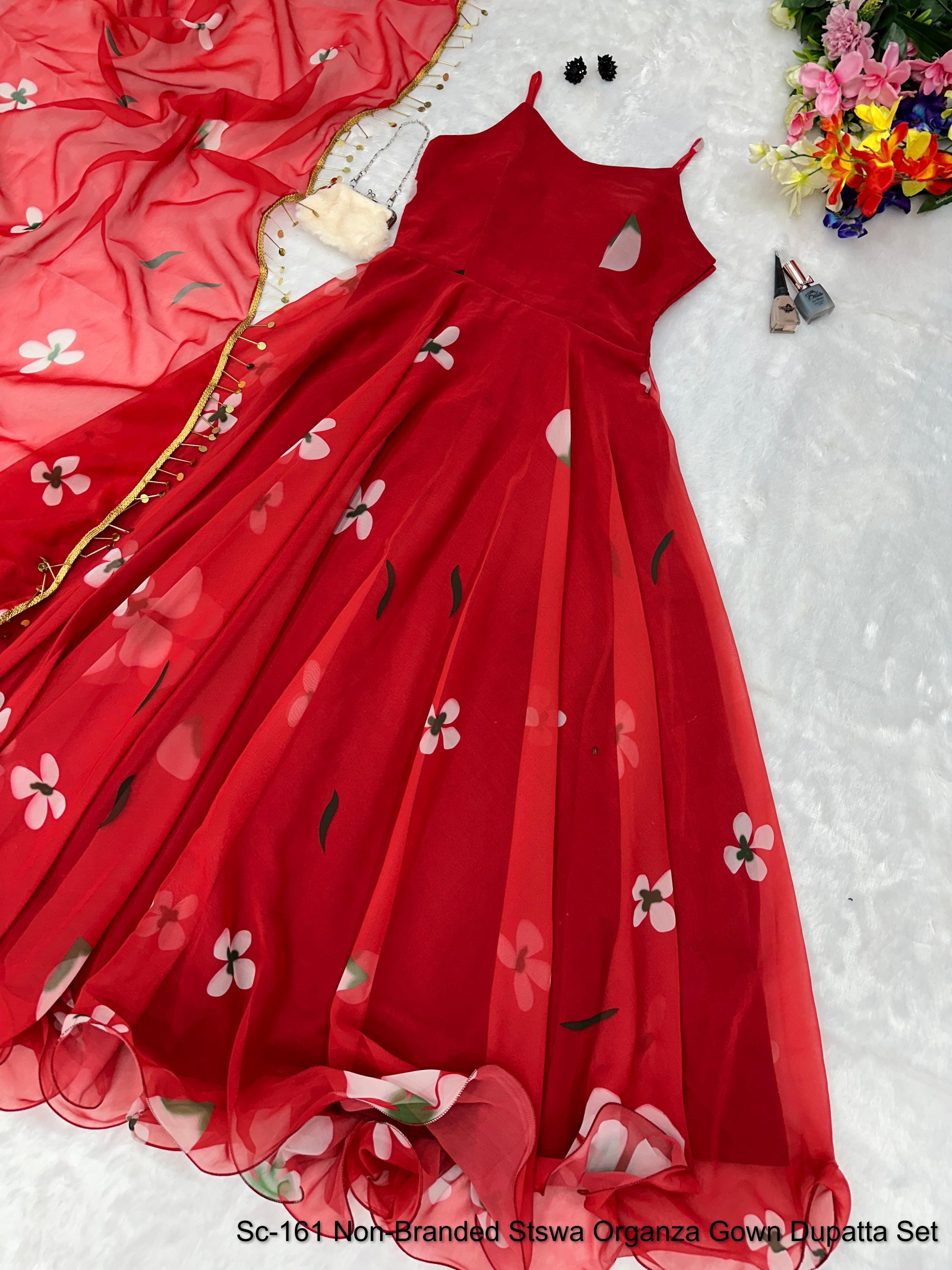 Sc-161 Non-Branded Stswa Organza Gown Dupatta Set