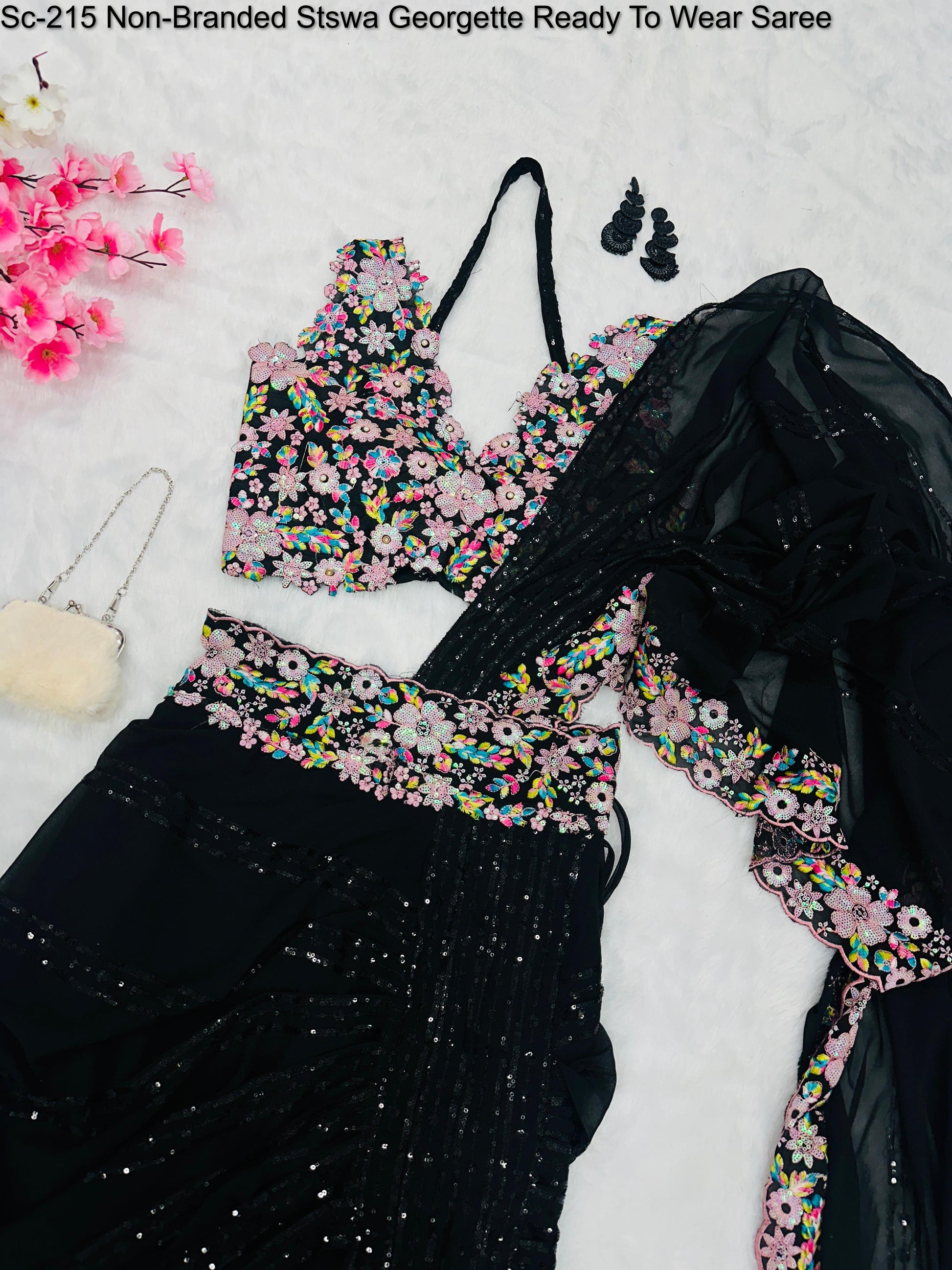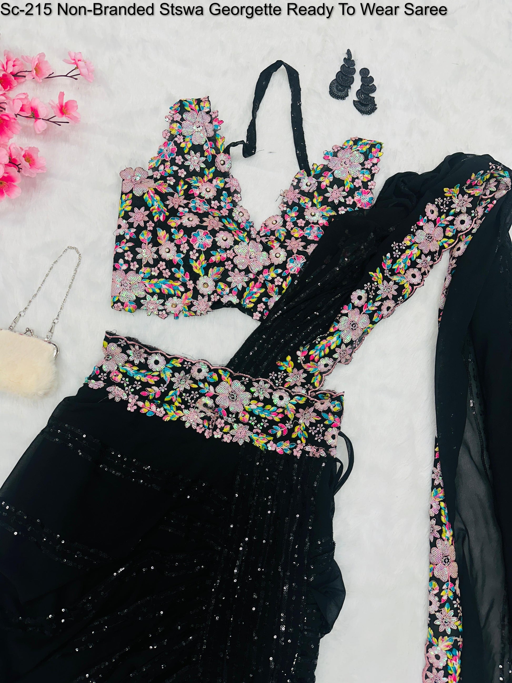 Sc-215 Non-Branded Stswa Georgette Ready To Wear Saree