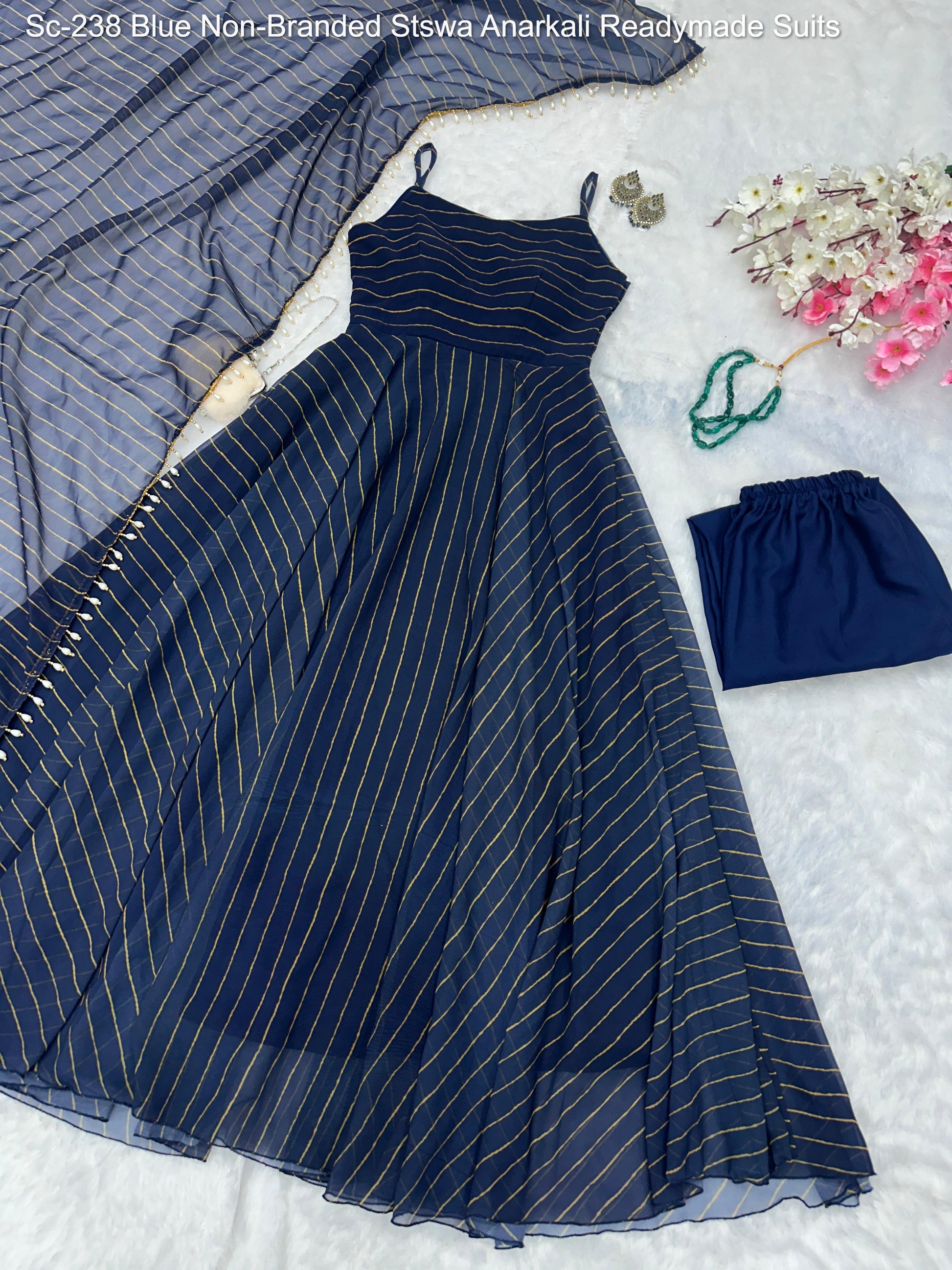 - Sc-238 Blue Non-Branded Stswa Anarkali Readymade Suits Dealer Ahmedabad Surat Wholesale Gujarat India Lowest Price Best Quality Buy Purchase Shipping Kurta Salwaar Kameez Also free Cash on delivery