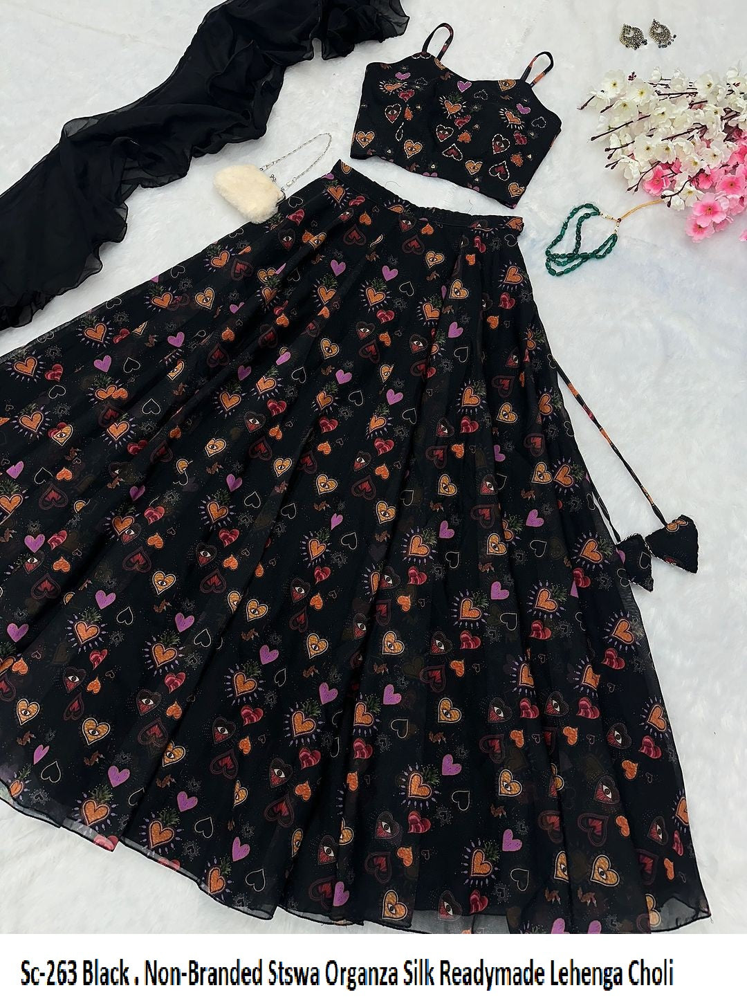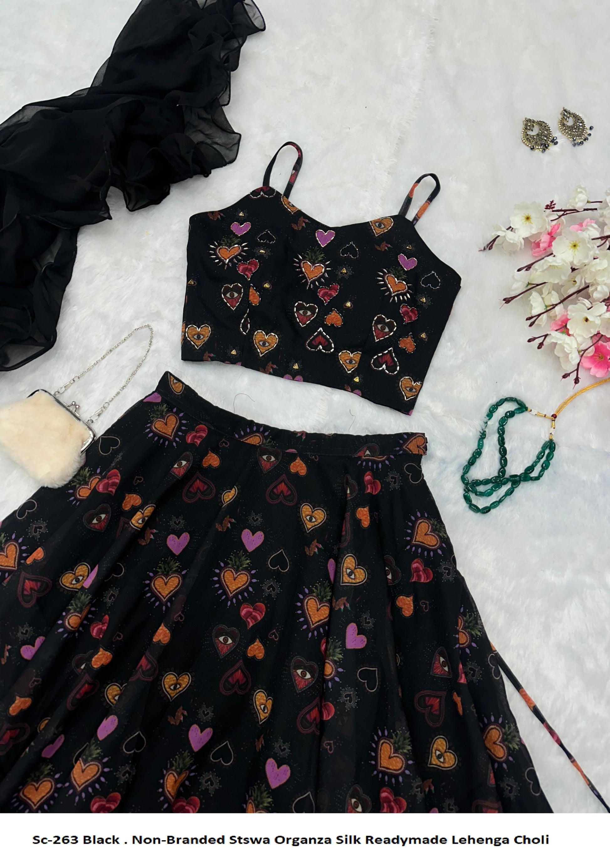 Sc-263 Black . Non-Branded Stswa Organza Silk Readymade Lehenga Choli