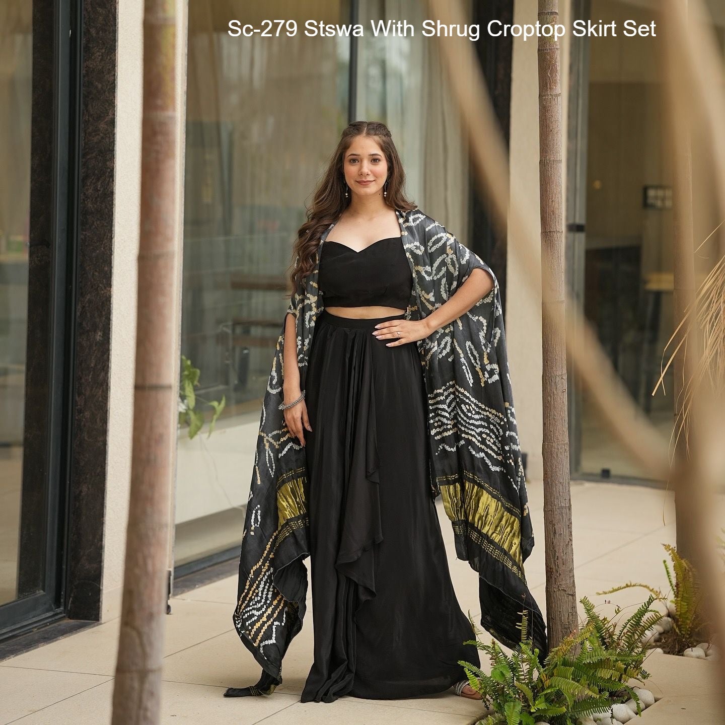 - Sc-279 Stswa With Shrug Croptop Skirt Set Dealer Ahmedabad Surat Wholesale Gujarat India Lowest Price Best Quality Buy Purchase Shipping Kurta Salwaar Kameez Also free Cash on delivery
