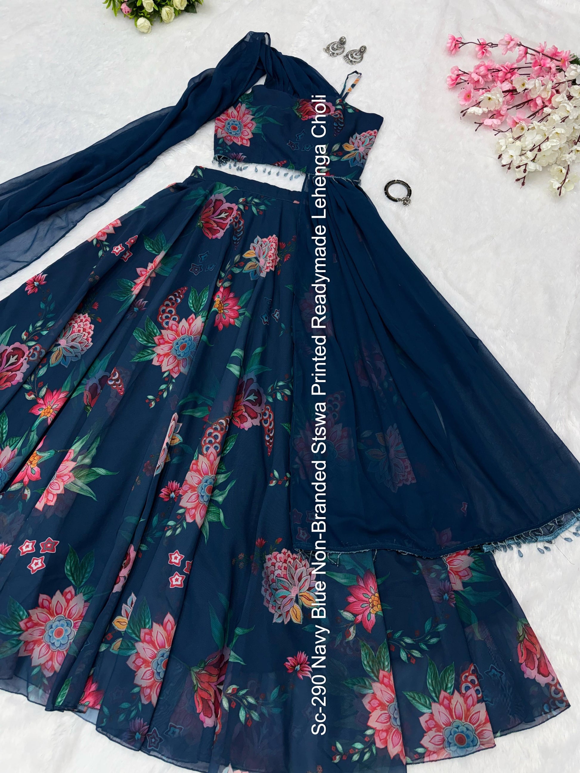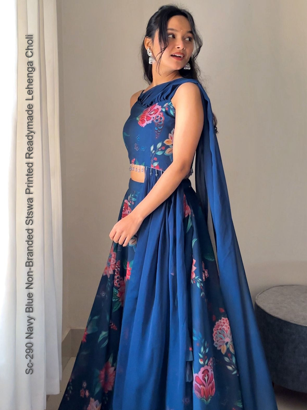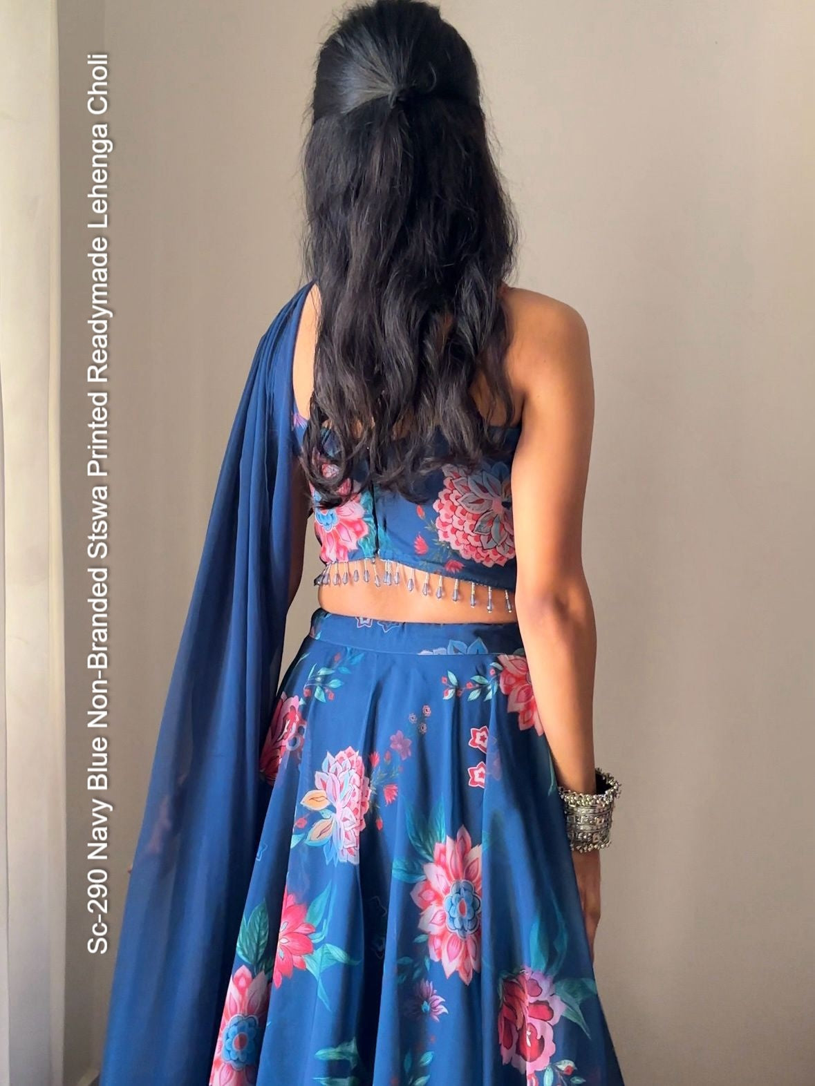 Sc-290 Navy Blue Non-Branded Stswa Printed Readymade Lehenga Choli