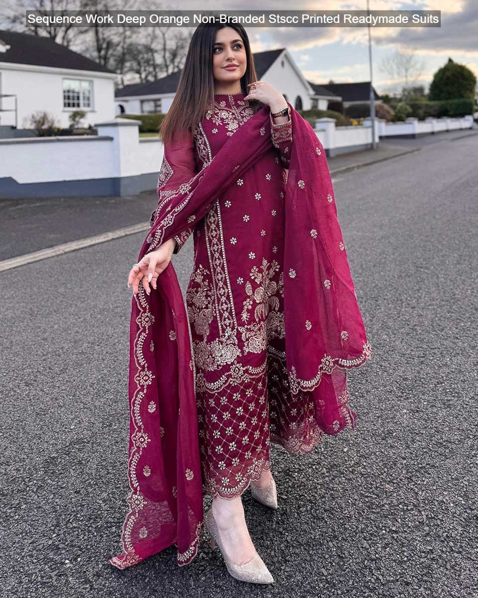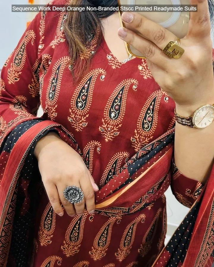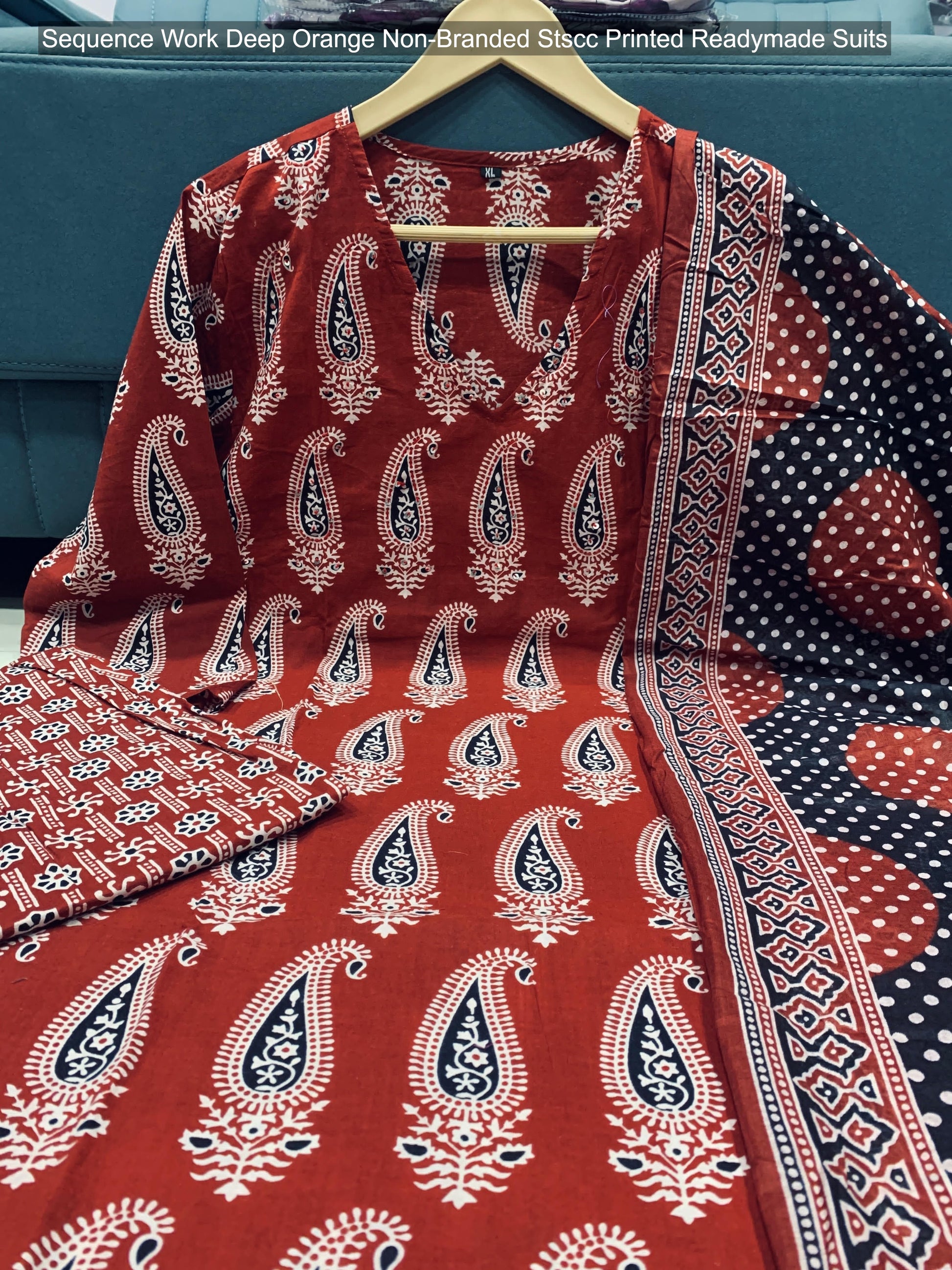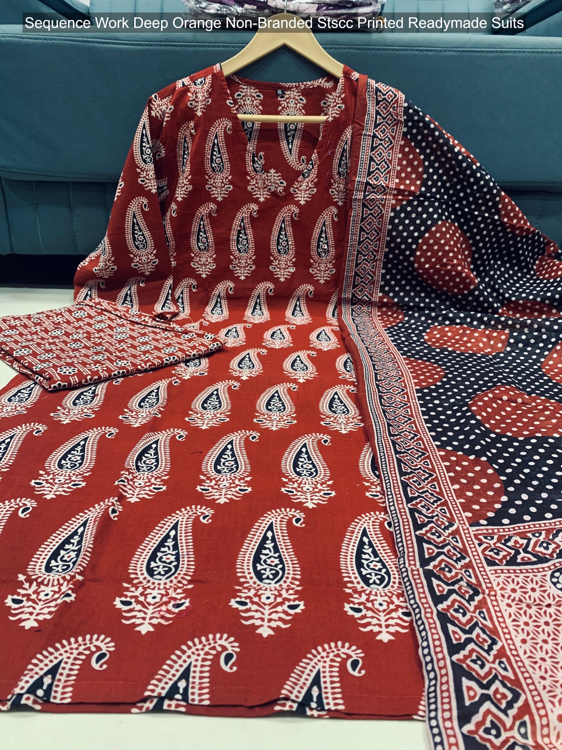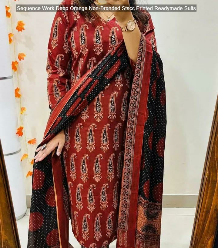 Sequence Work Deep Orange Non-Branded Stscc Printed Readymade Suits