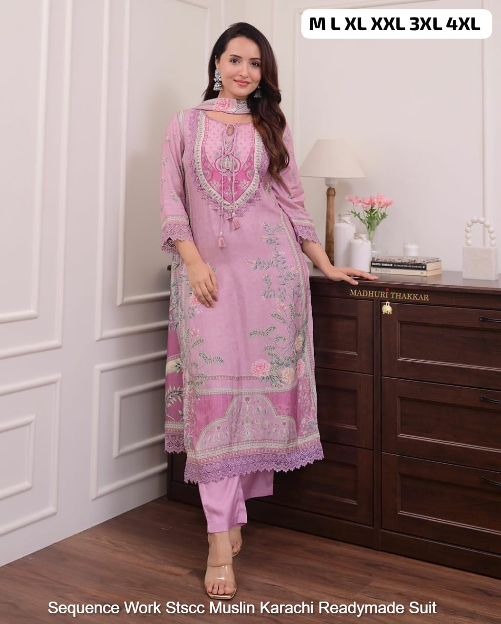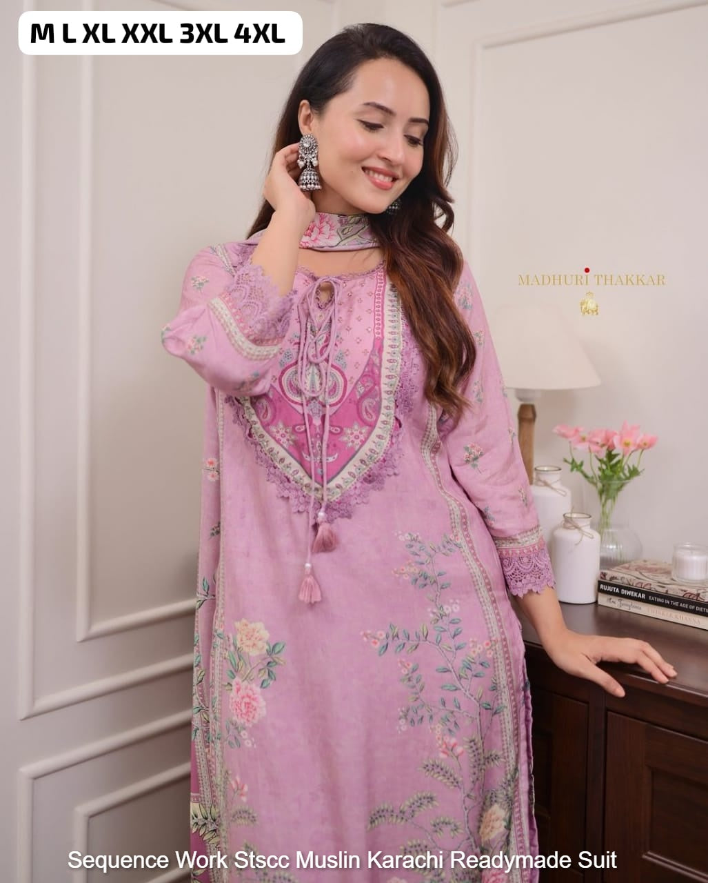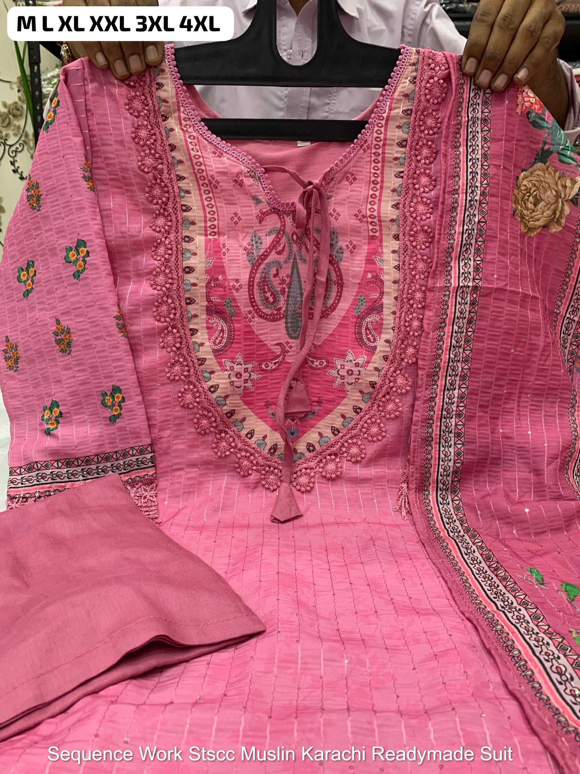 Sequence Work Stscc Muslin Karachi Readymade Suit