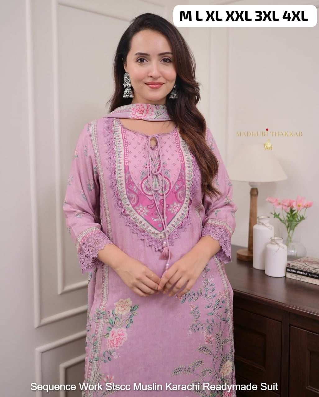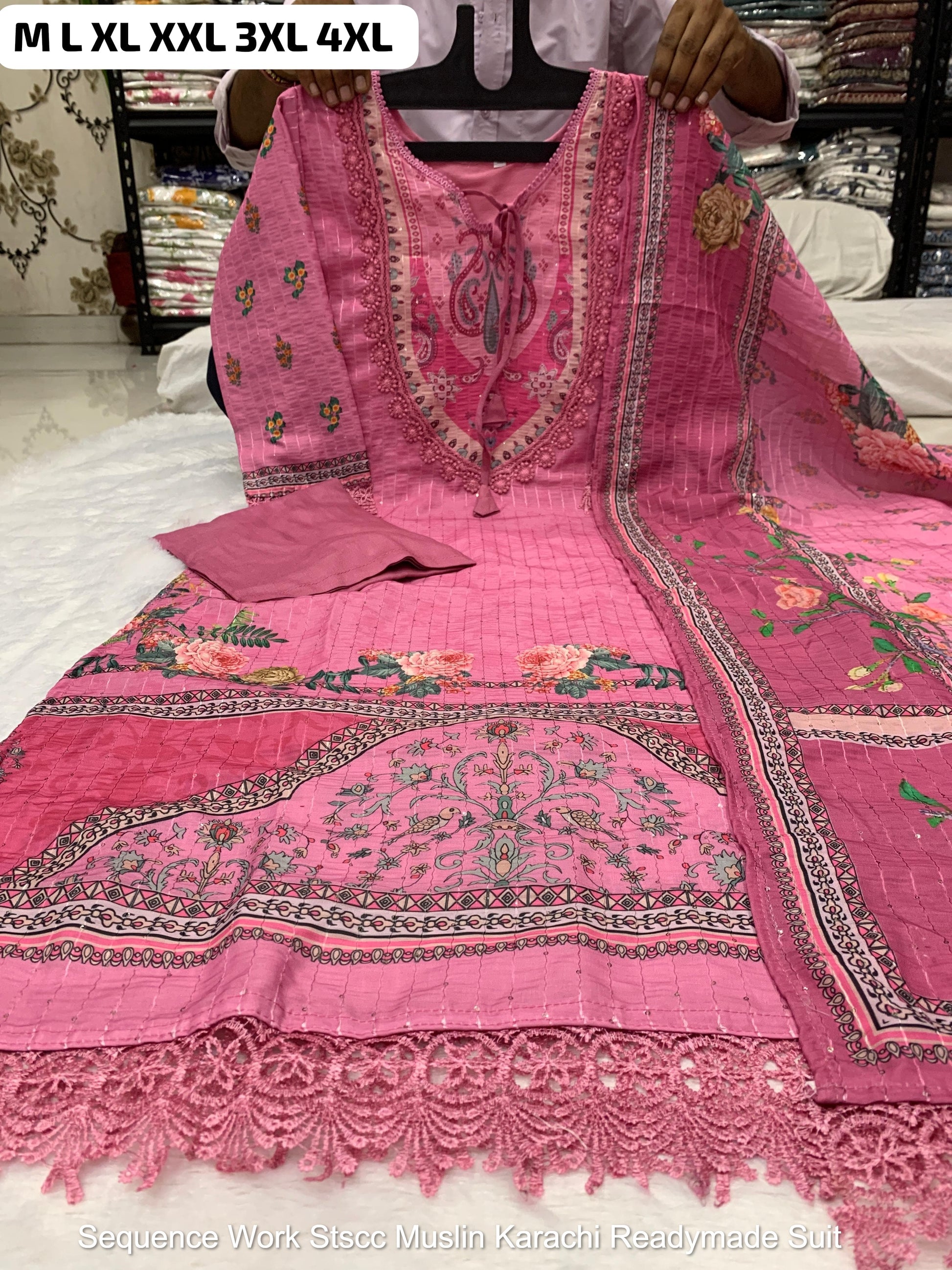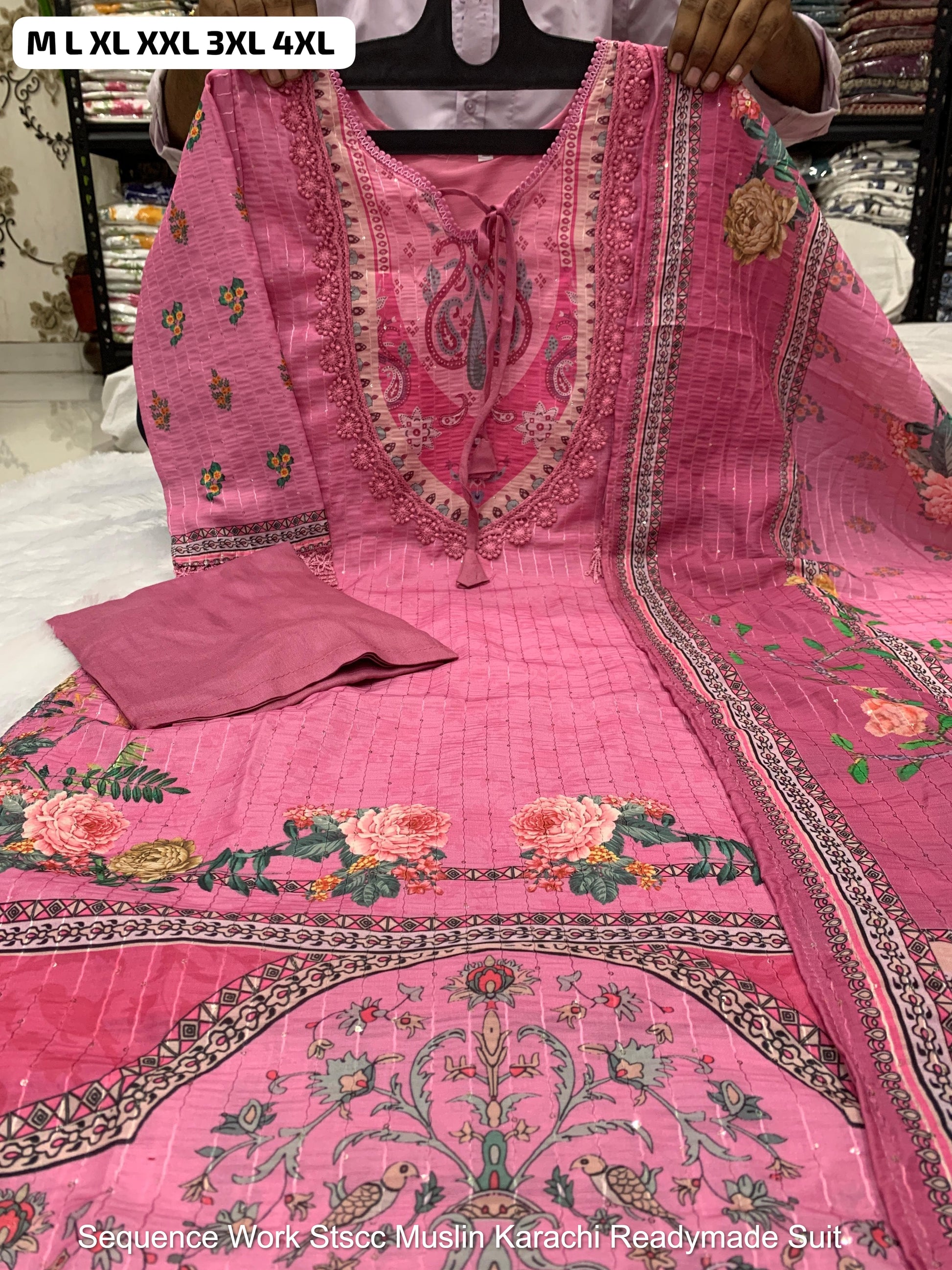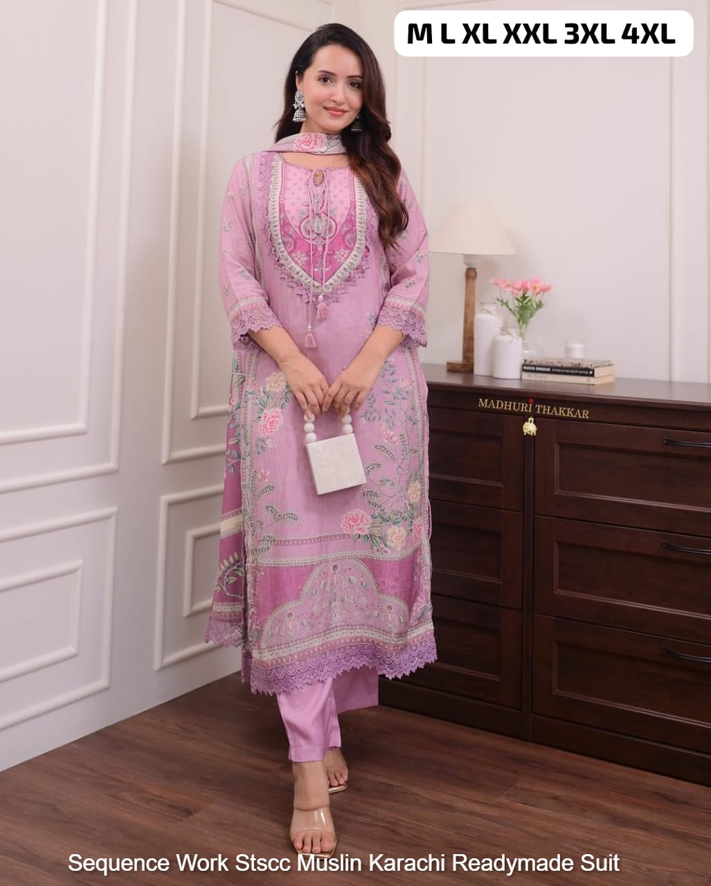 Sequence Work Stscc Muslin Karachi Readymade Suit