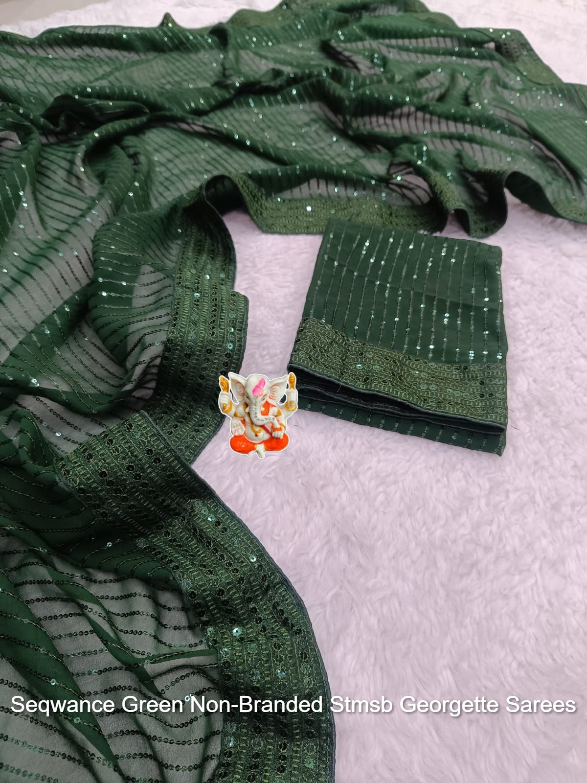 Seqwance Green Non-Branded Stmsb Georgette Sarees