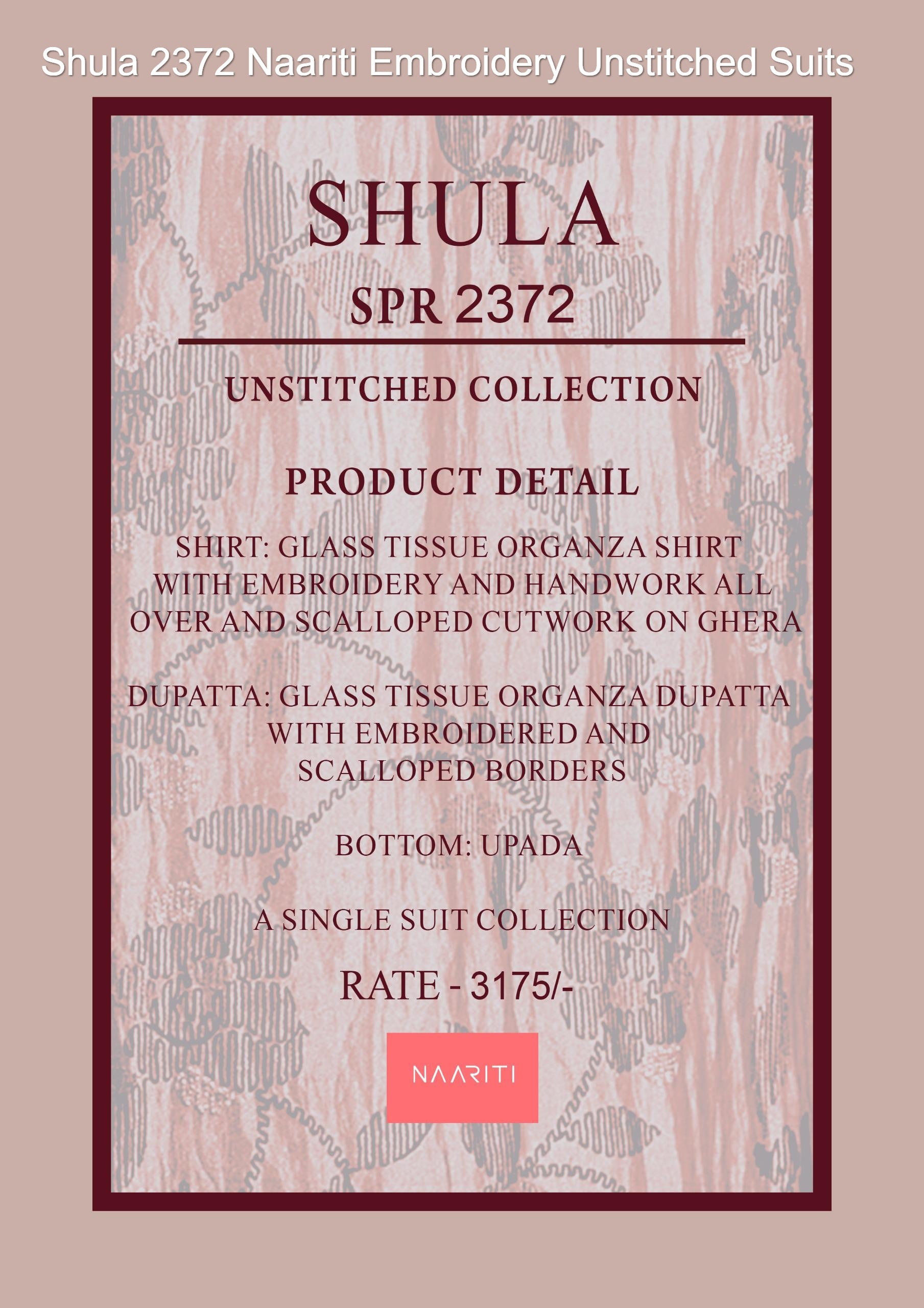 Shula 2372 Naariti Embroidery Unstitched Suits