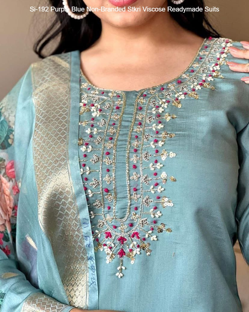 - Si-192 Purple Blue Non-Branded Stkri Viscose Readymade Suits Dealer Ahmedabad Surat Wholesale Gujarat India Lowest Price Best Quality Buy Purchase Shipping Kurta Salwaar Kameez Also free Cash on delivery