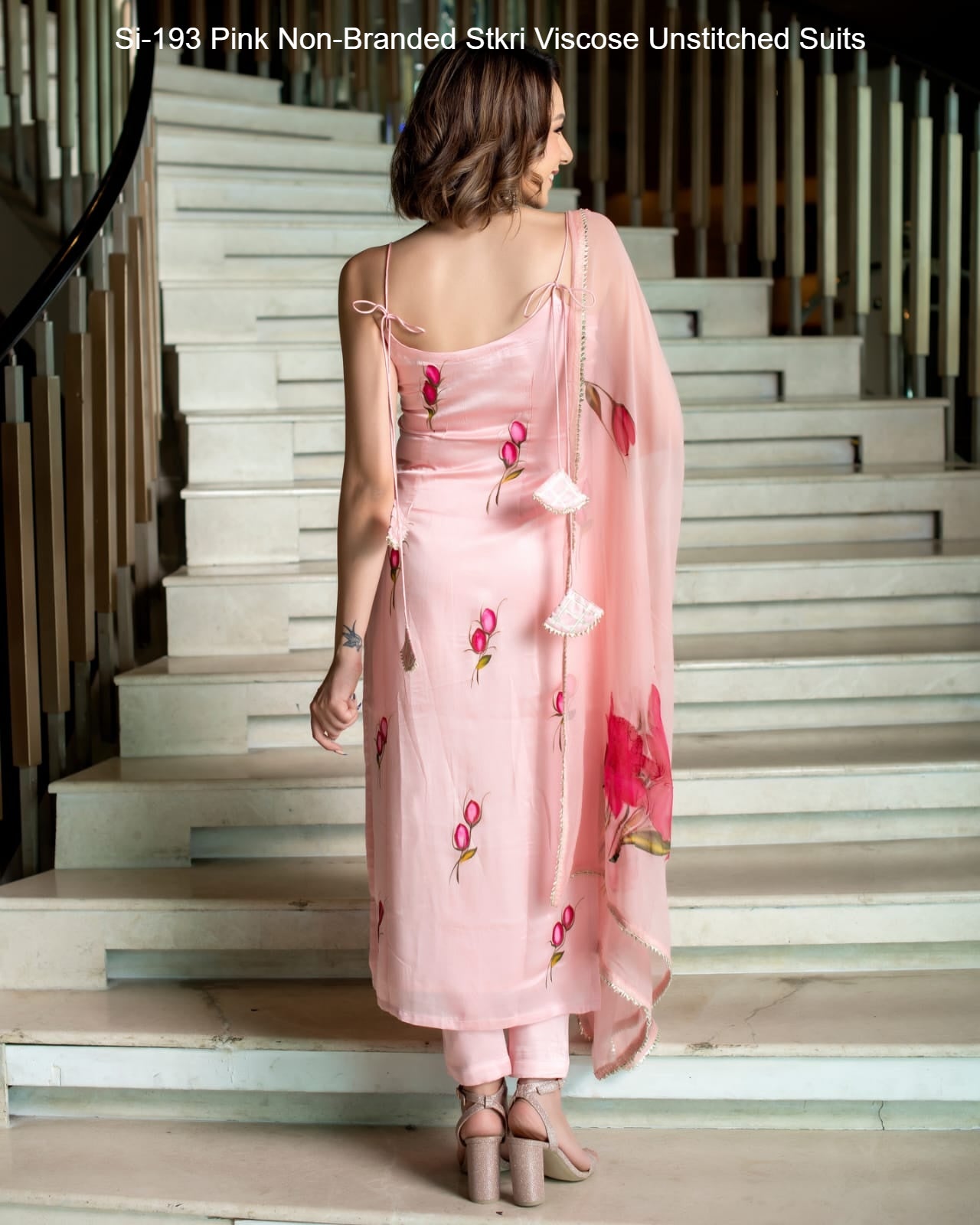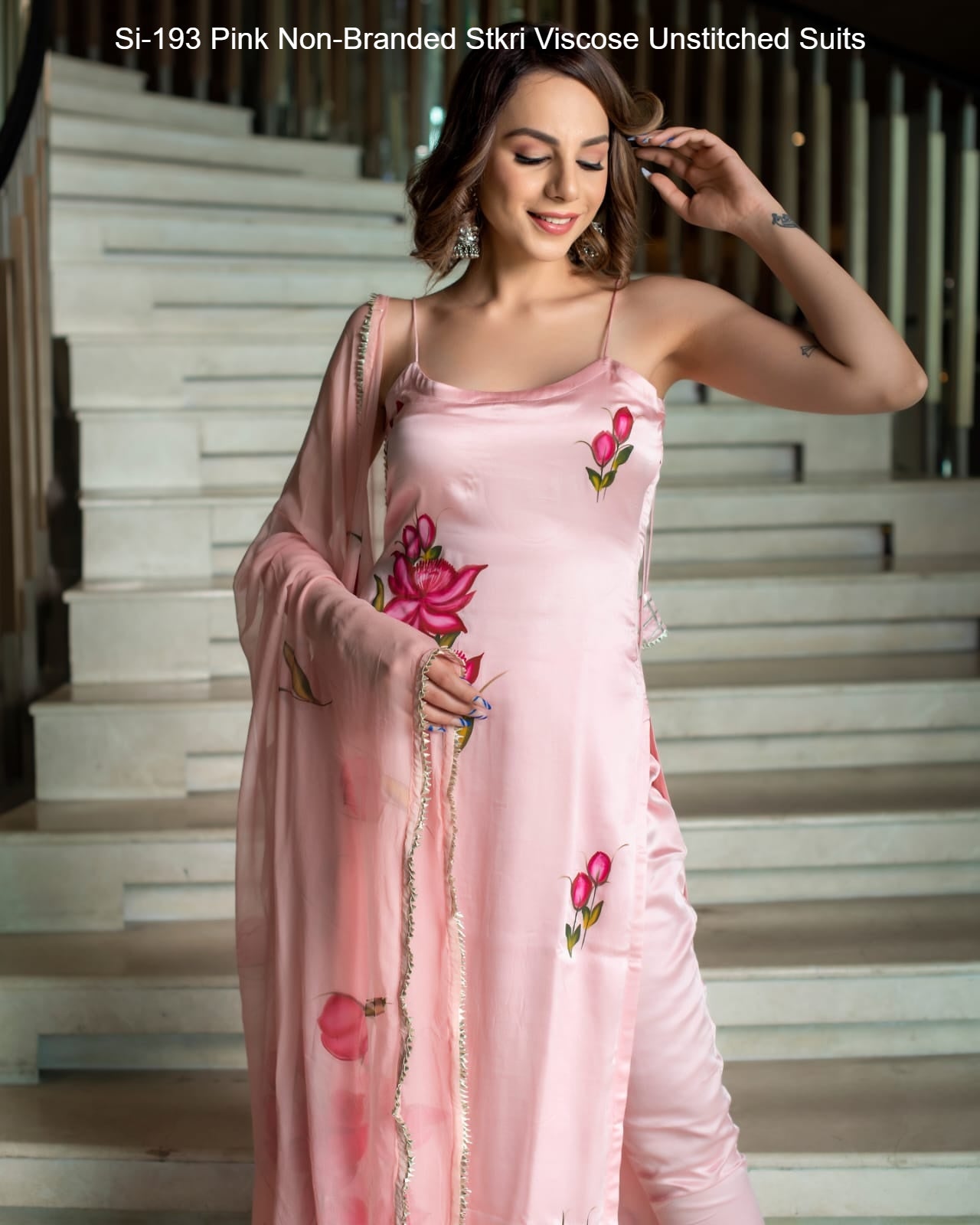 - Si-193 Pink Non-Branded Stkri Viscose Unstitched Suits Dealer Ahmedabad Surat Wholesale Gujarat India Lowest Price Best Quality Buy Purchase Shipping Kurta Salwaar Kameez Also free Cash on delivery