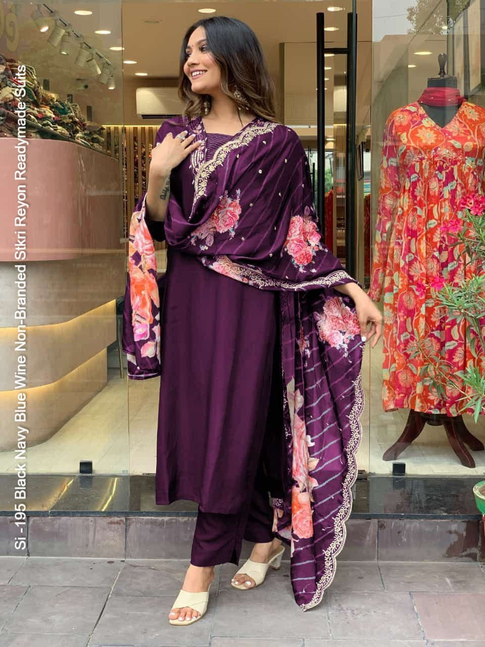 - Si -195 Black Navy Blue Wine Non-Branded Stkri Reyon Readymade Suits Dealer Ahmedabad Surat Wholesale Gujarat India Lowest Price Best Quality Buy Purchase Shipping Kurta Salwaar Kameez Also free Cash on delivery