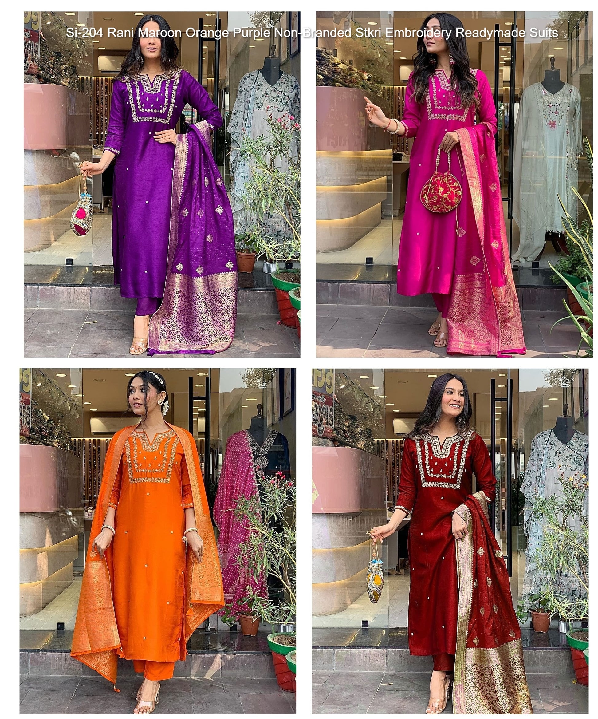 - Si-204 Rani Maroon Orange Purple Non-Branded Stkri Embroidery Readymade Suits Dealer Ahmedabad Surat Wholesale Gujarat India Lowest Price Best Quality Buy Purchase Shipping Kurta Salwaar Kameez Also free Cash on delivery