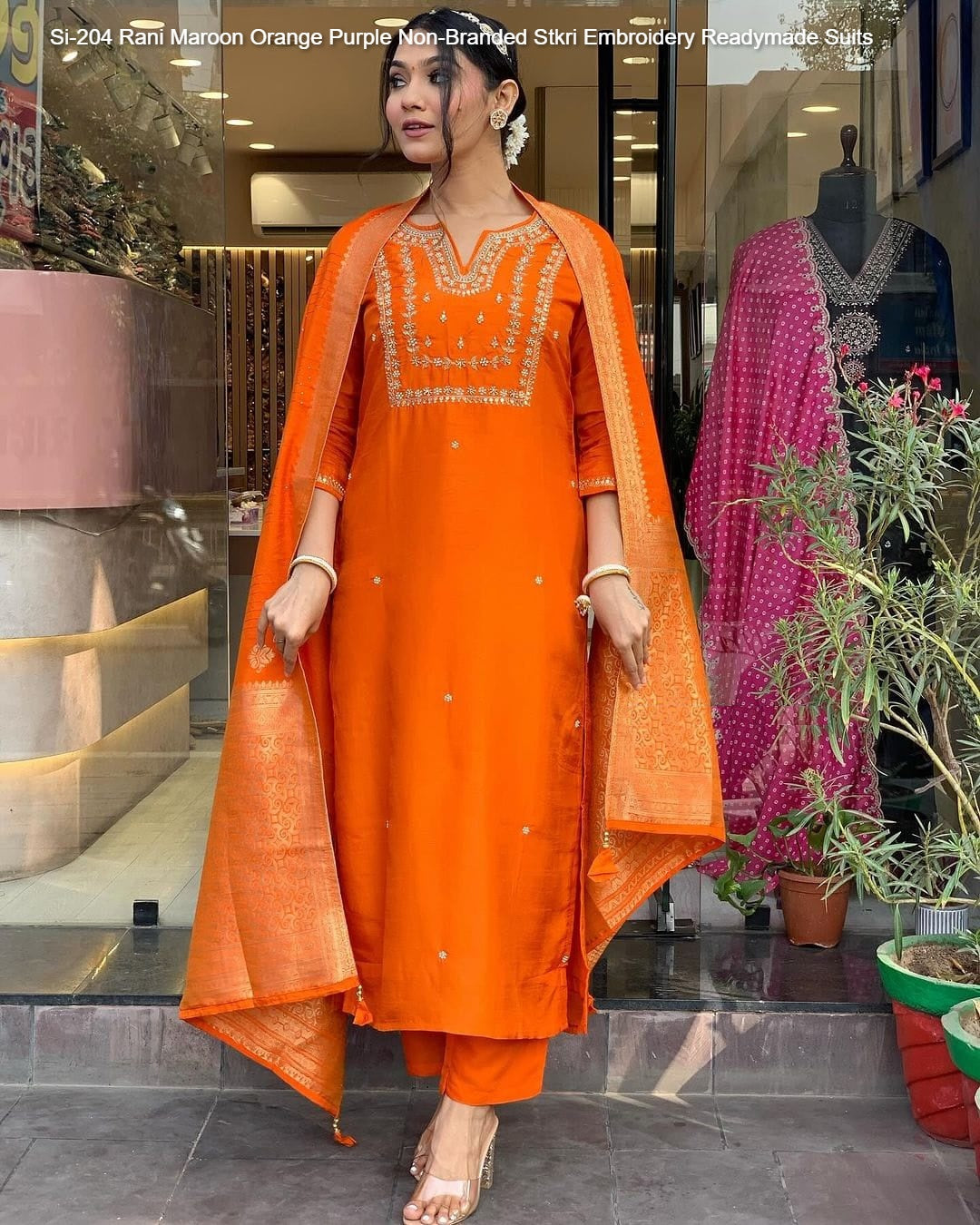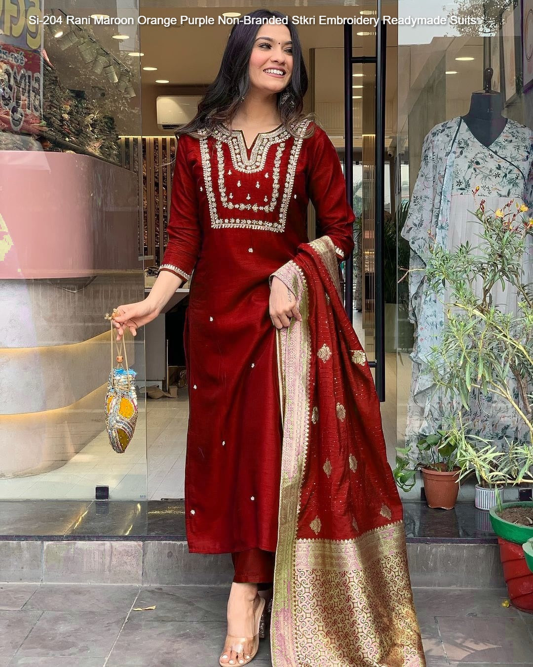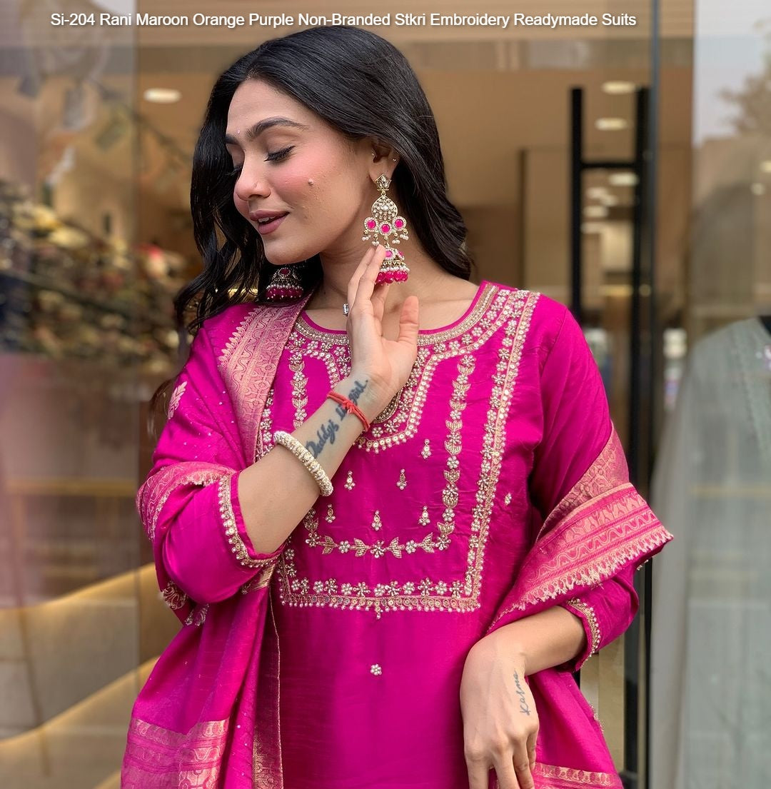 Si-204 Rani Maroon Orange Purple Non-Branded Stkri Embroidery Readymade Suits