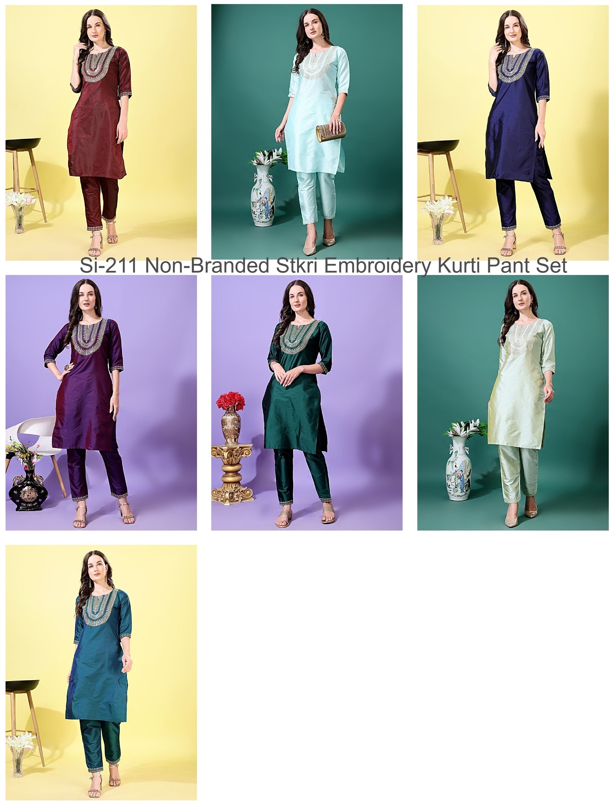 Si-211 Non-Branded Stkri Embroidery Kurti Pant Set
