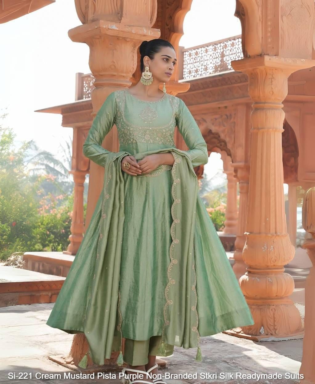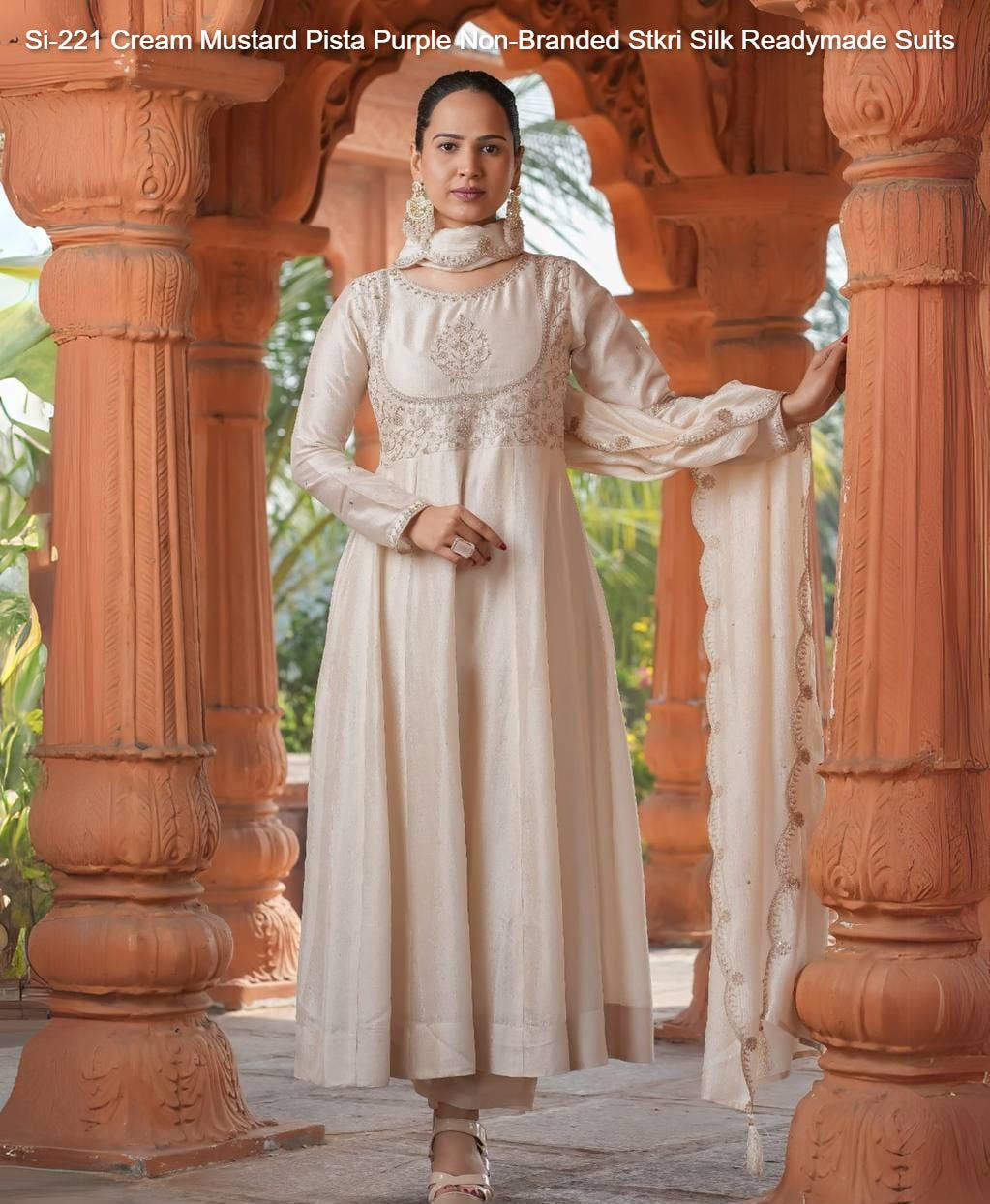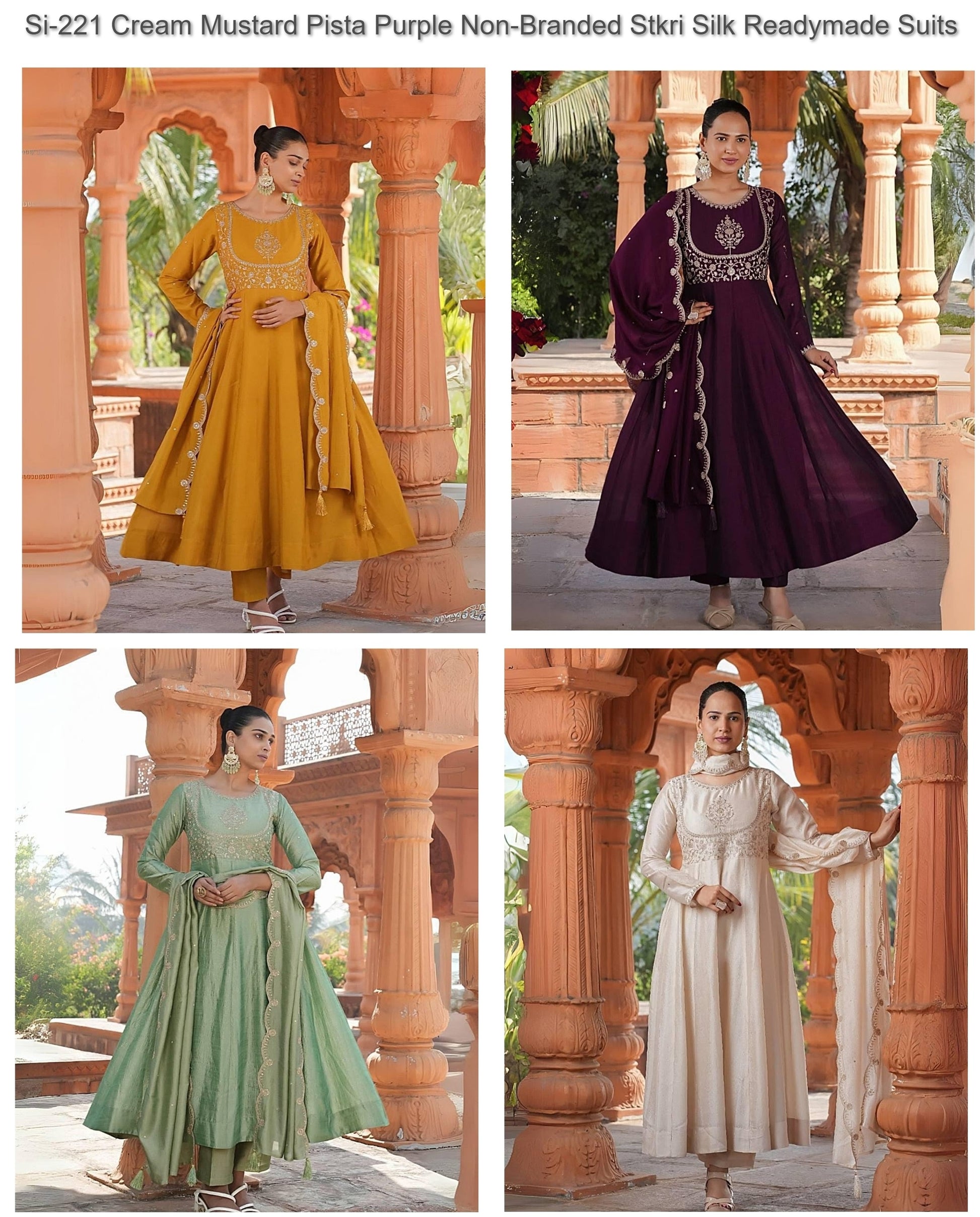 Si-221 Cream Mustard Pista Purple Non-Branded Stkri Silk Readymade Suits