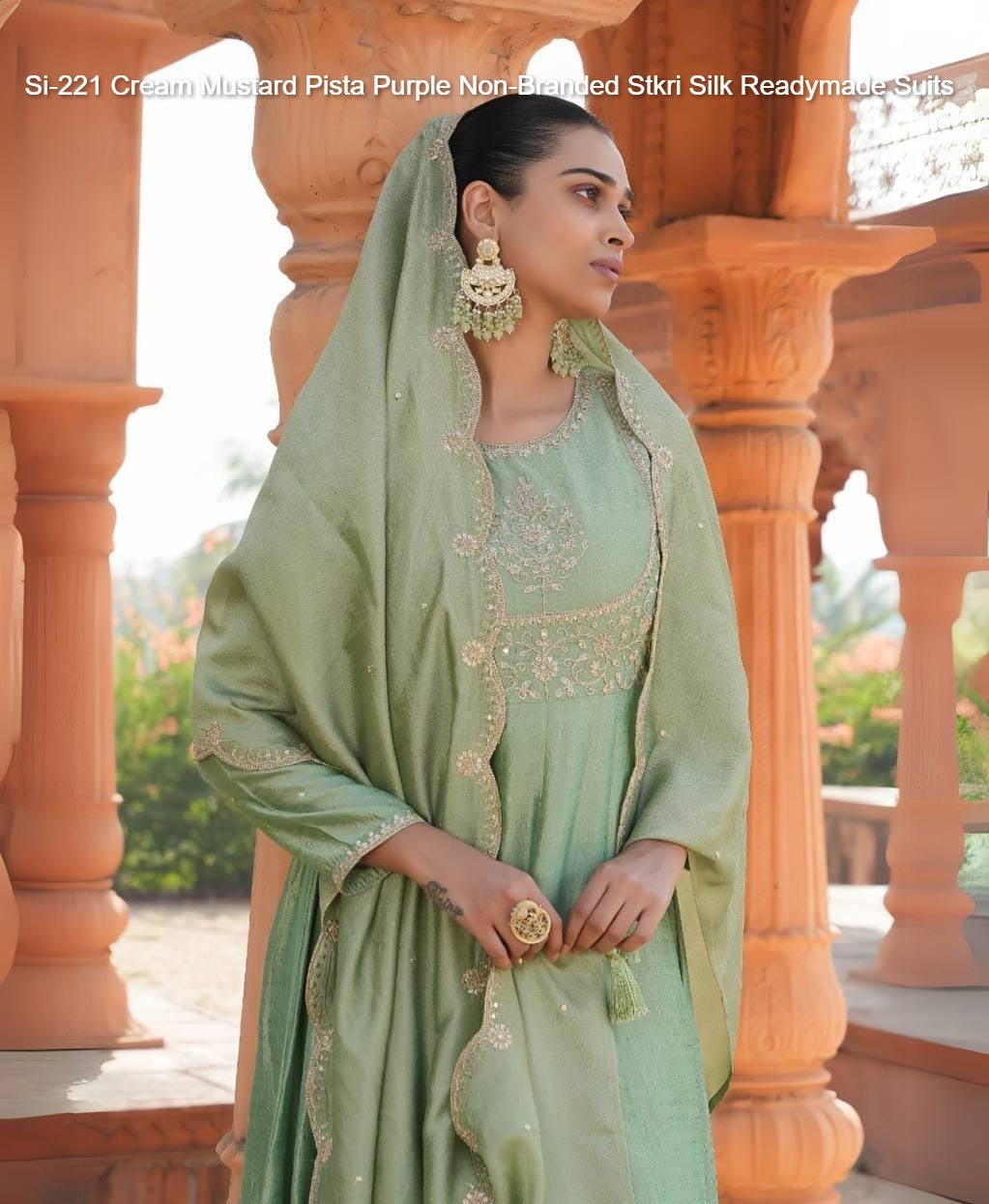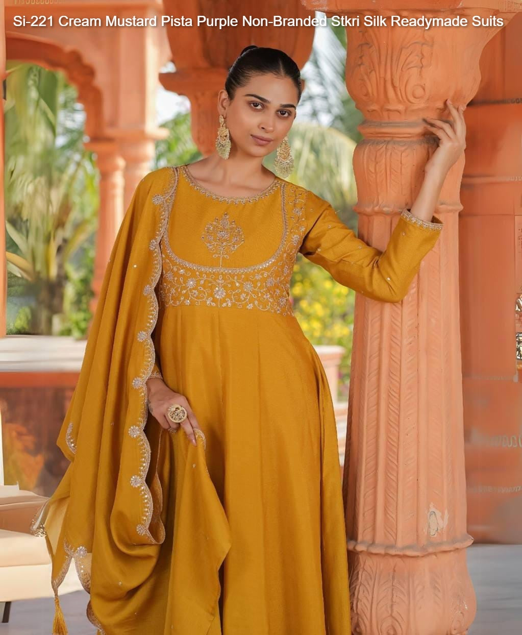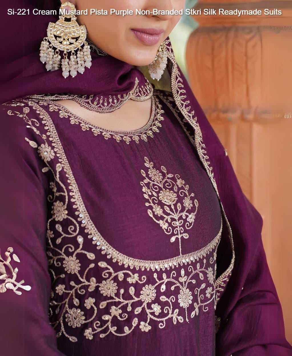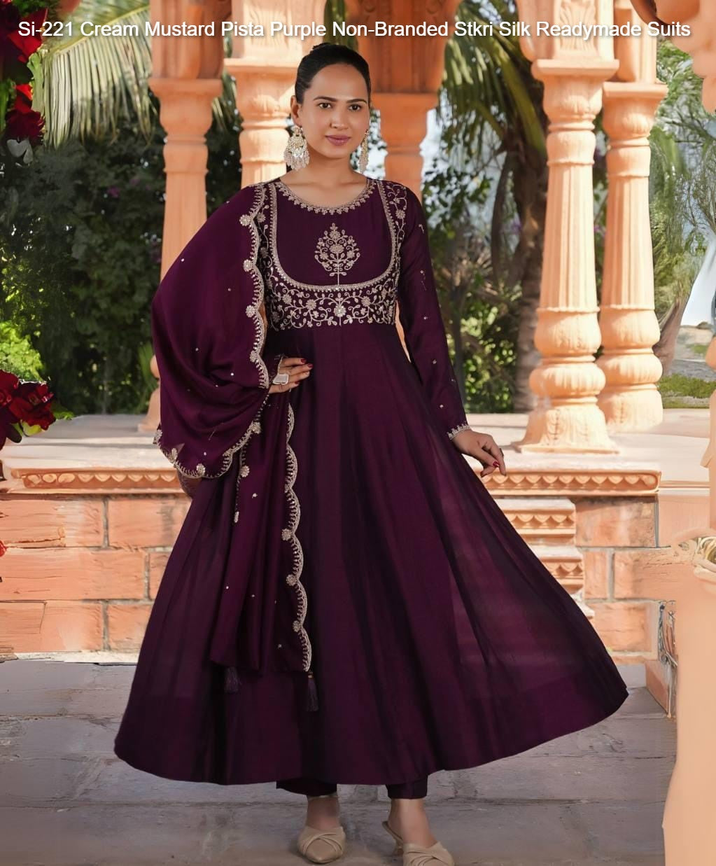 Si-221 Cream Mustard Pista Purple Non-Branded Stkri Silk Readymade Suits