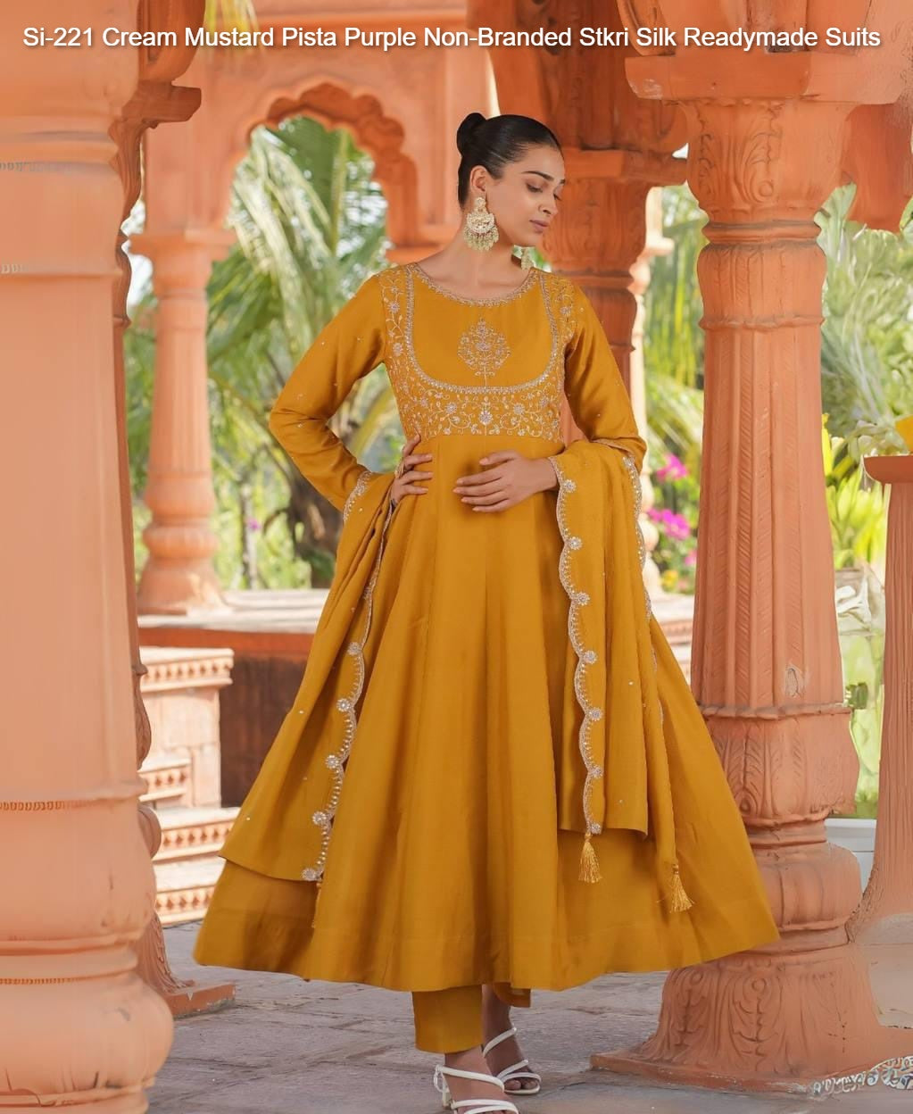 - Si-221 Cream Mustard Pista Purple Non-Branded Stkri Silk Readymade Suits Dealer Ahmedabad Surat Wholesale Gujarat India Lowest Price Best Quality Buy Purchase Shipping Kurta Salwaar Kameez Also free Cash on delivery