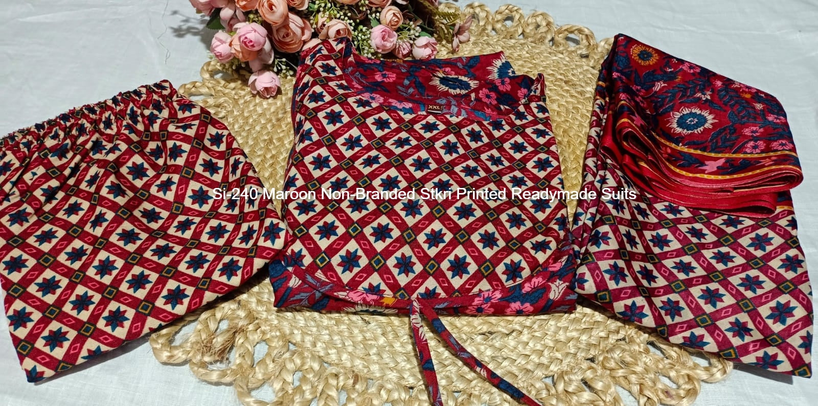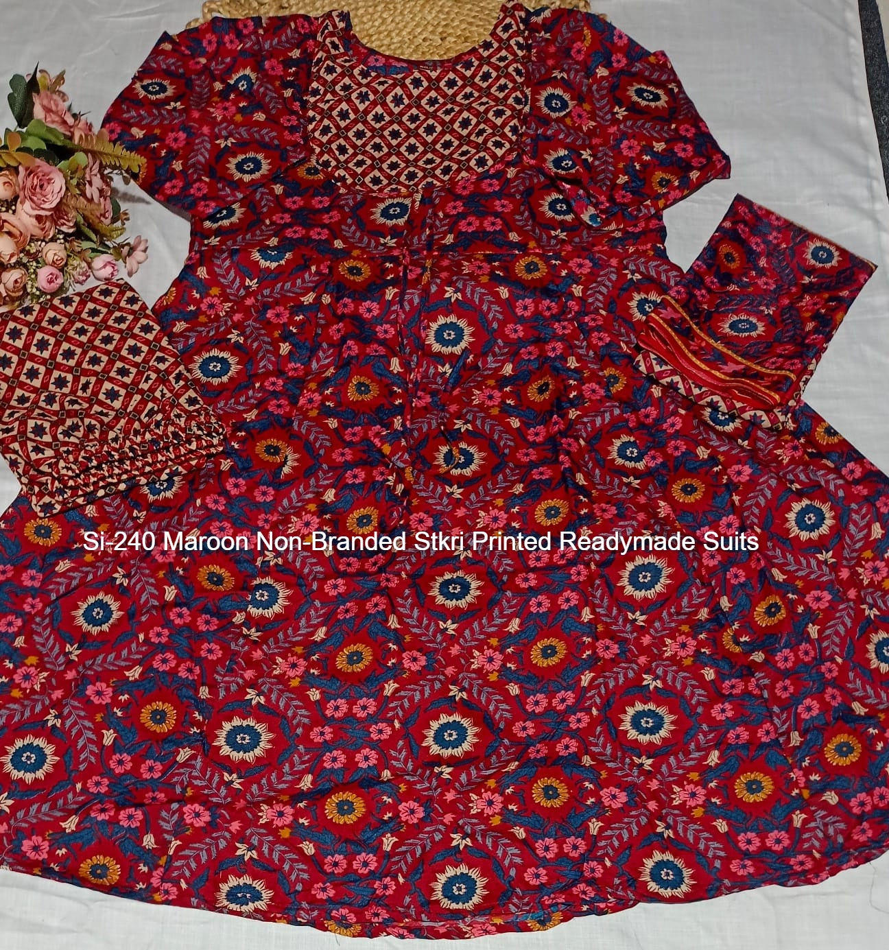 Si-240 Maroon Non-Branded Stkri Printed Readymade Suits