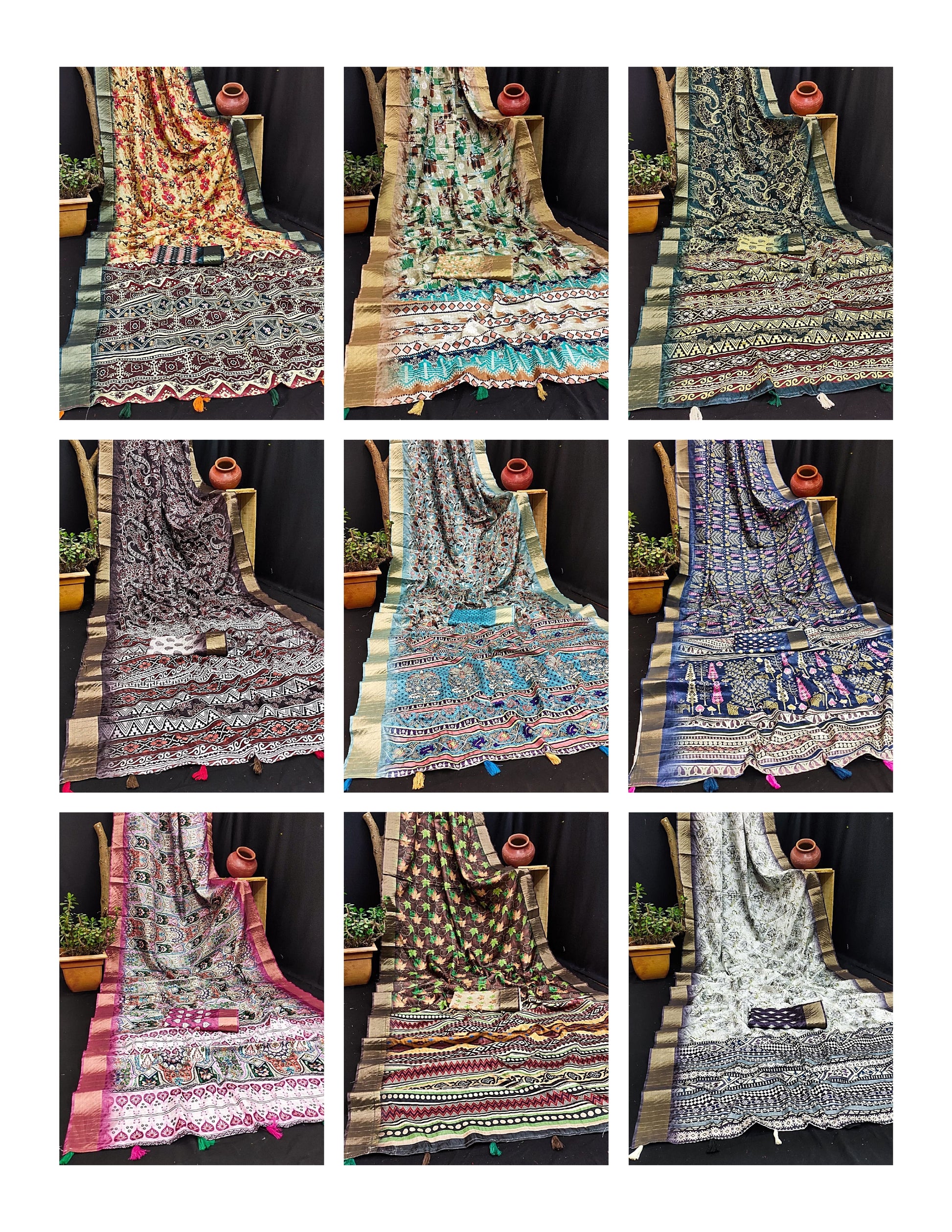 - Fabric Detail: Saree : Soft, Flowy Handloom Silk Digital Printed With All Over Prints Zari Weaving Border And Contrast Digital Printed Pallu , Blouse : Contrast Digital Printed , ,