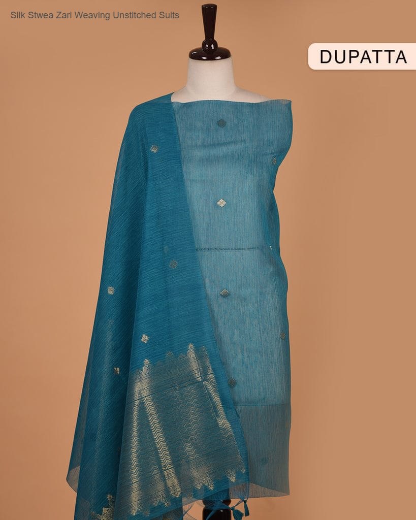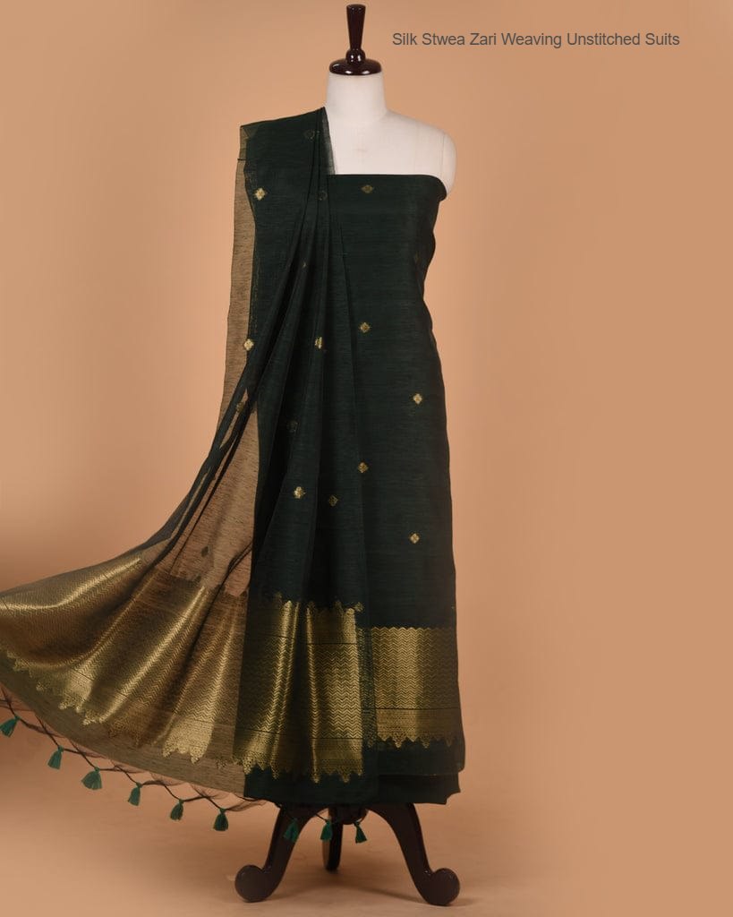 - Fabric Detail: Top : Soft Linen Silk Blend With Unique Zari Weaving, Cut : 2.5 Mtr Apx , Bottom : Soft Linen Silk, Cut : 2.5 Mtr , Dupatta : Soft Linen Silk With Fancy Border, Cut : 2.25 Mtr ,