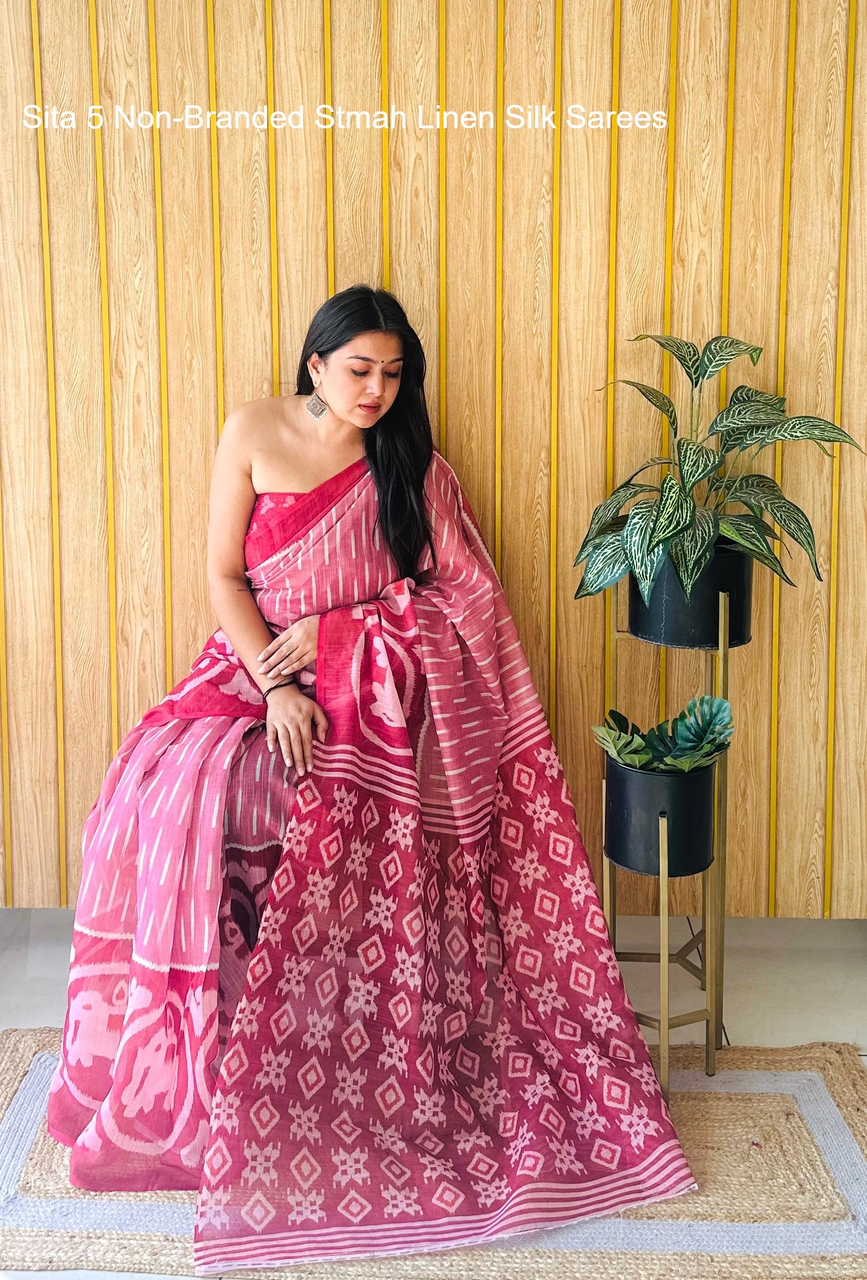 Sita 5 Non-Branded Stmah Linen Silk Sarees