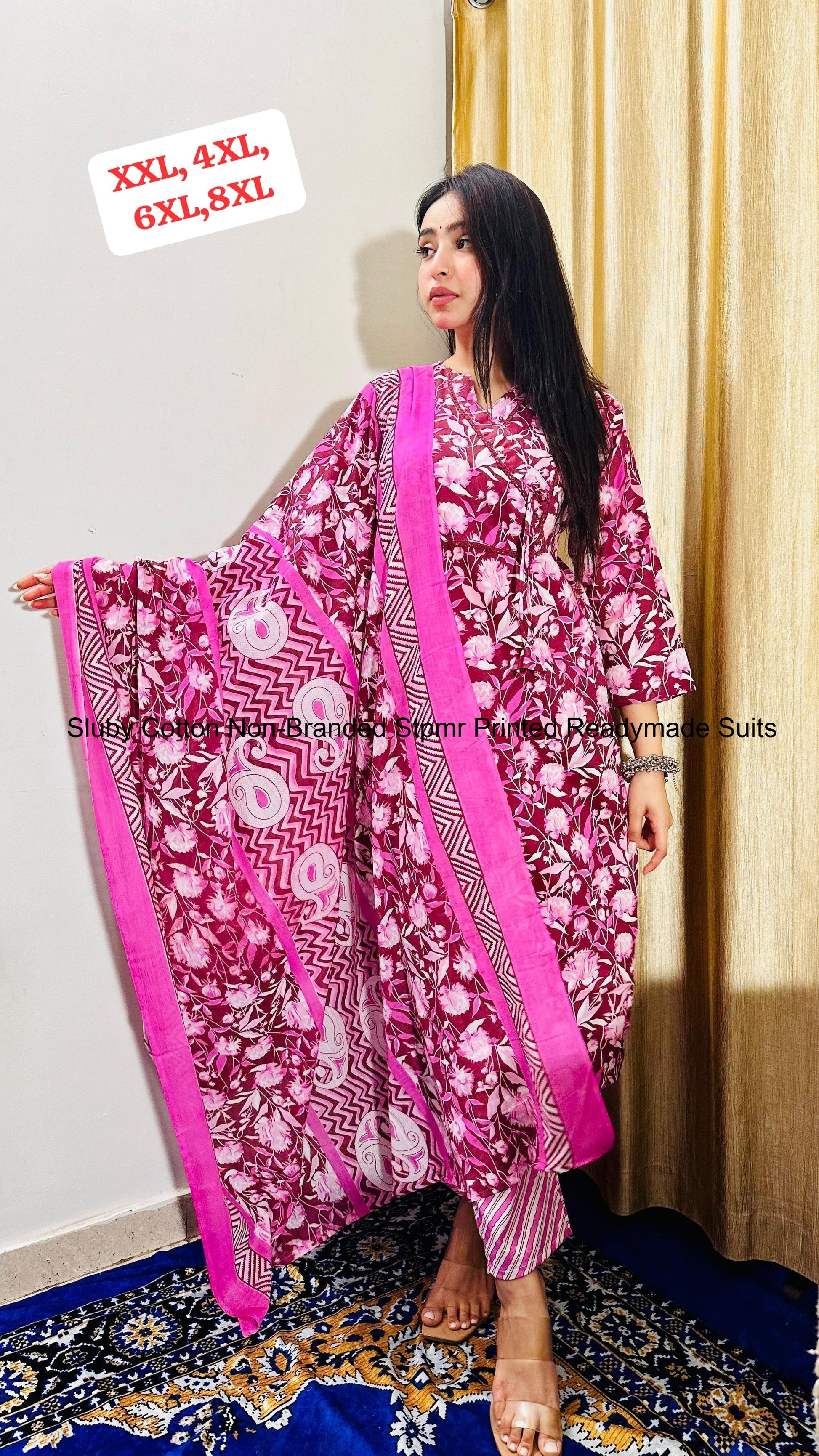 - Fabric Detail: Top : Cotton Sluby Printed Round Neck , Bottom : Cotton Sluby, Dupatta : Printed , Size : M, L, Xl, 2Xl ( Note : 3Xl, 4Xl, 5Xl, 6Xl, 7Xl, 8Xl : 40 Rs Extra ) Available Size Mention On Photo