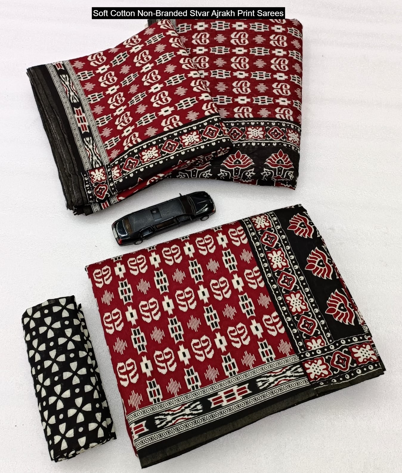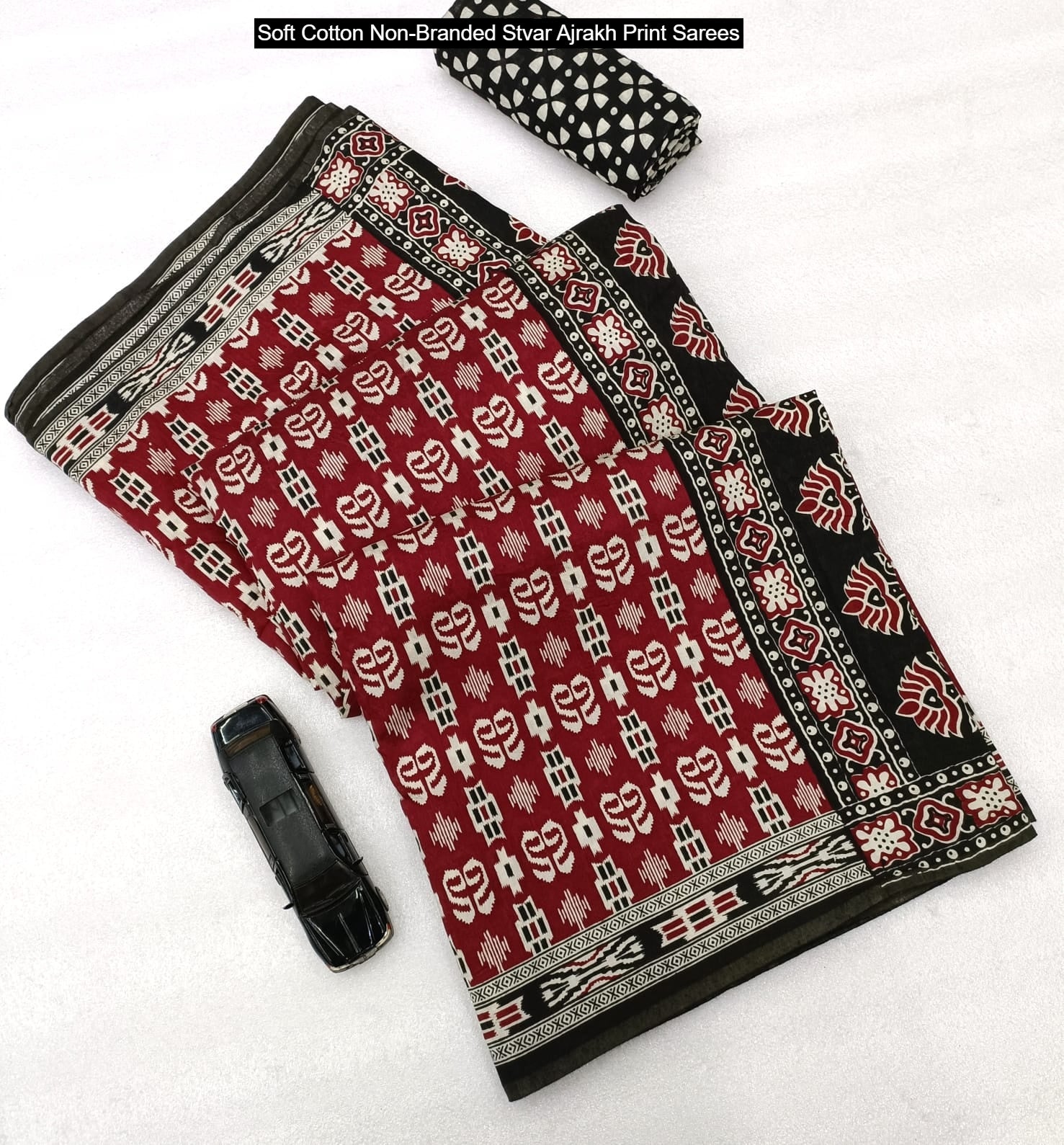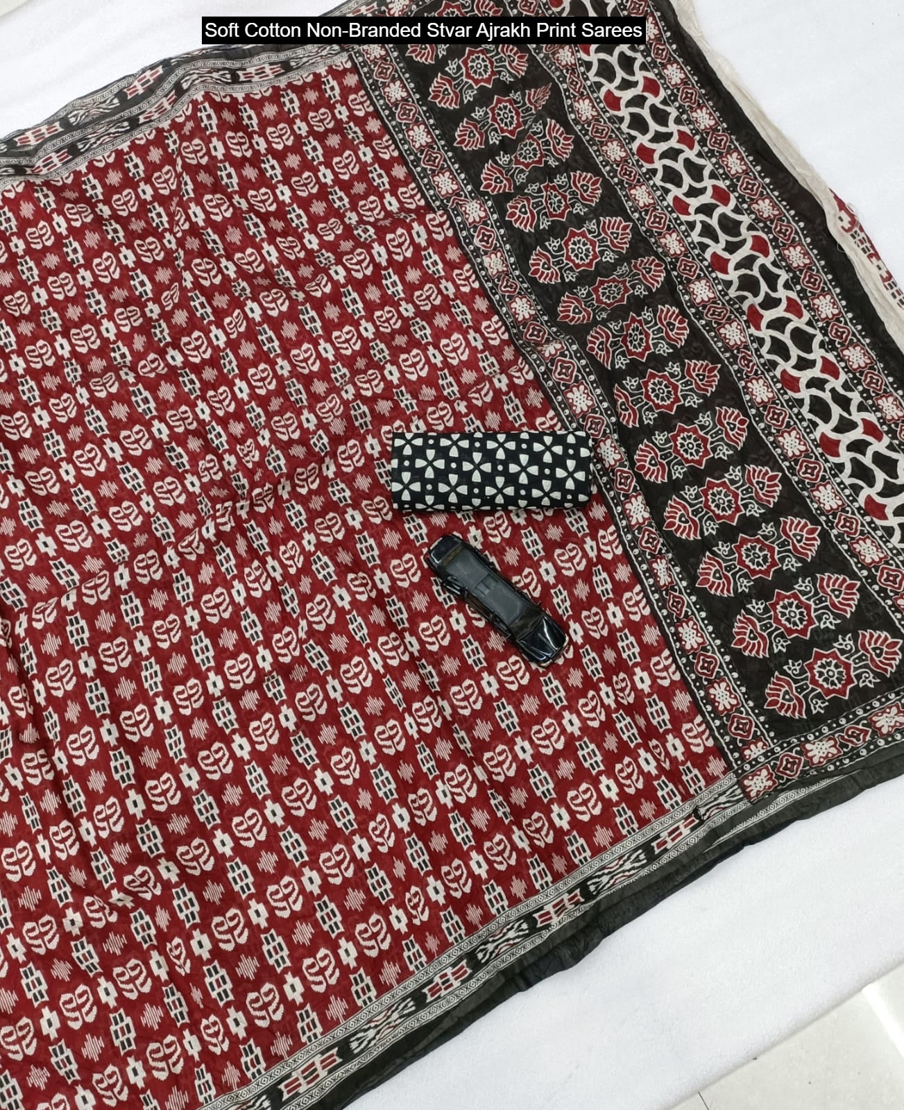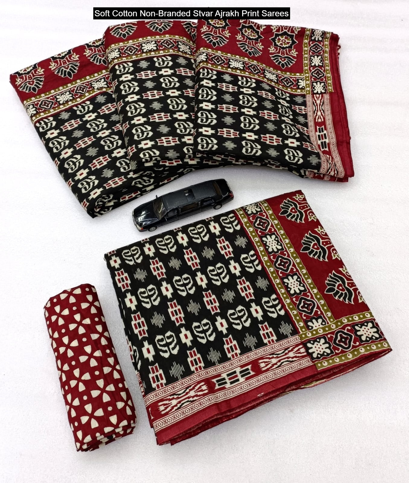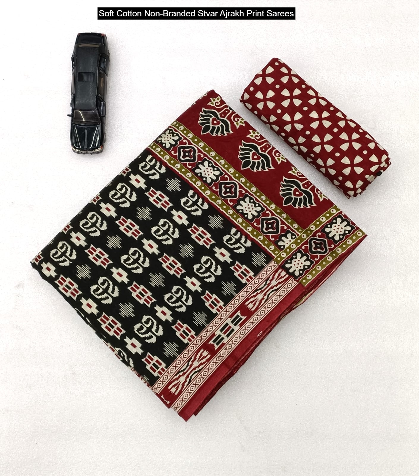 Soft Cotton Non-Branded Stvar Ajrakh Print Sarees