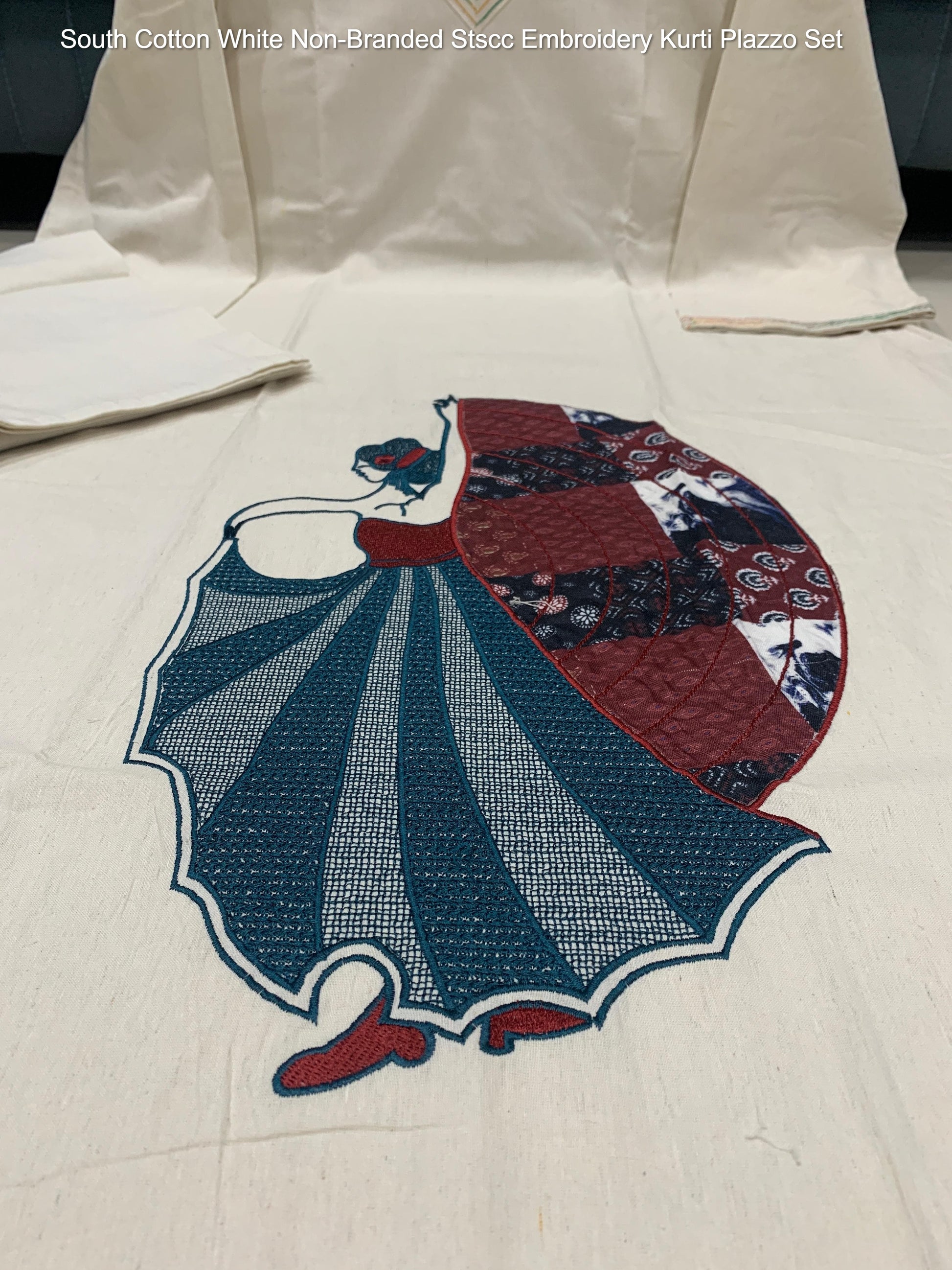 South Cotton White Non-Branded Stscc Embroidery Kurti Plazzo Set