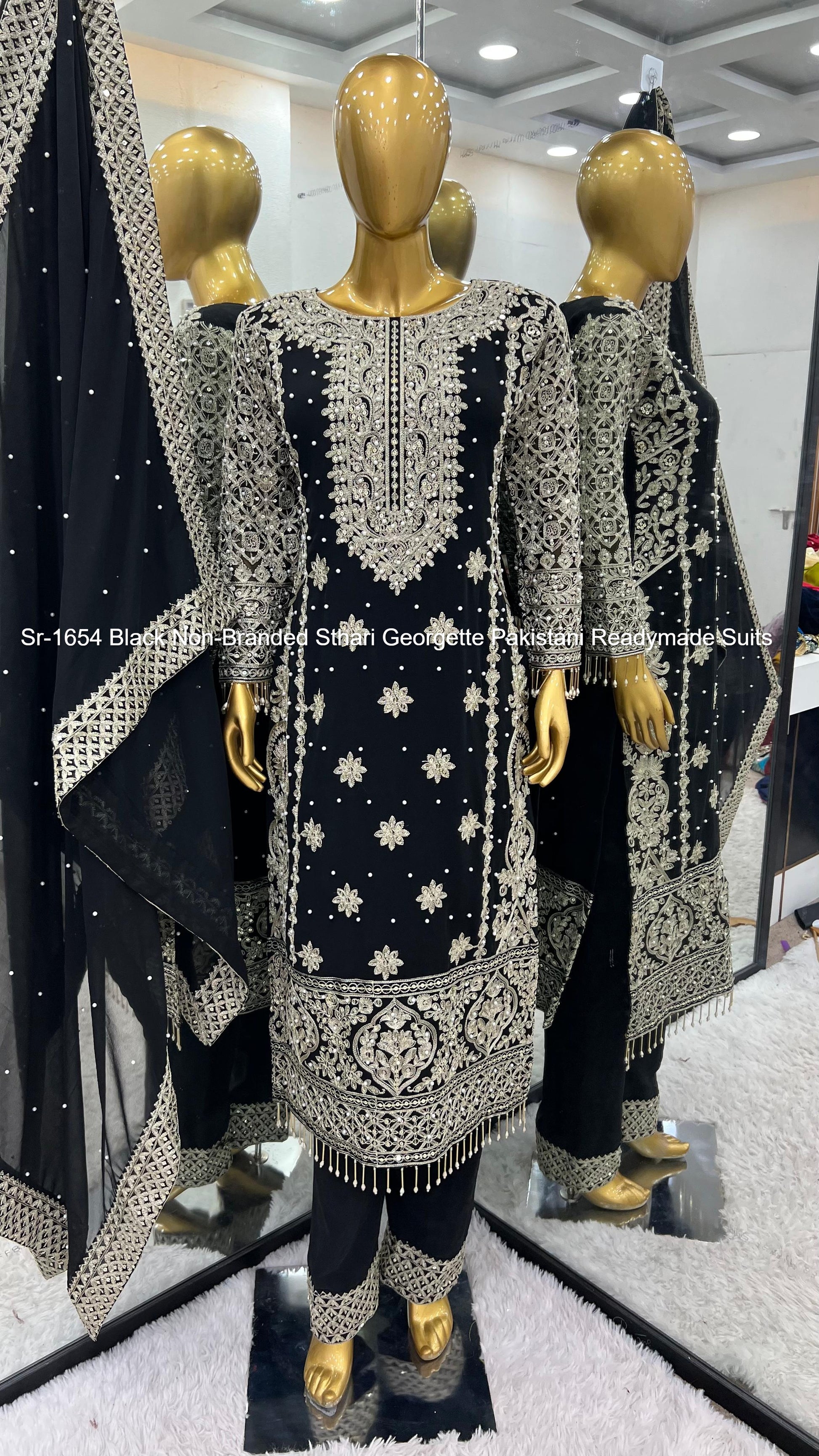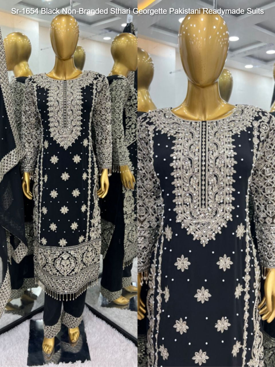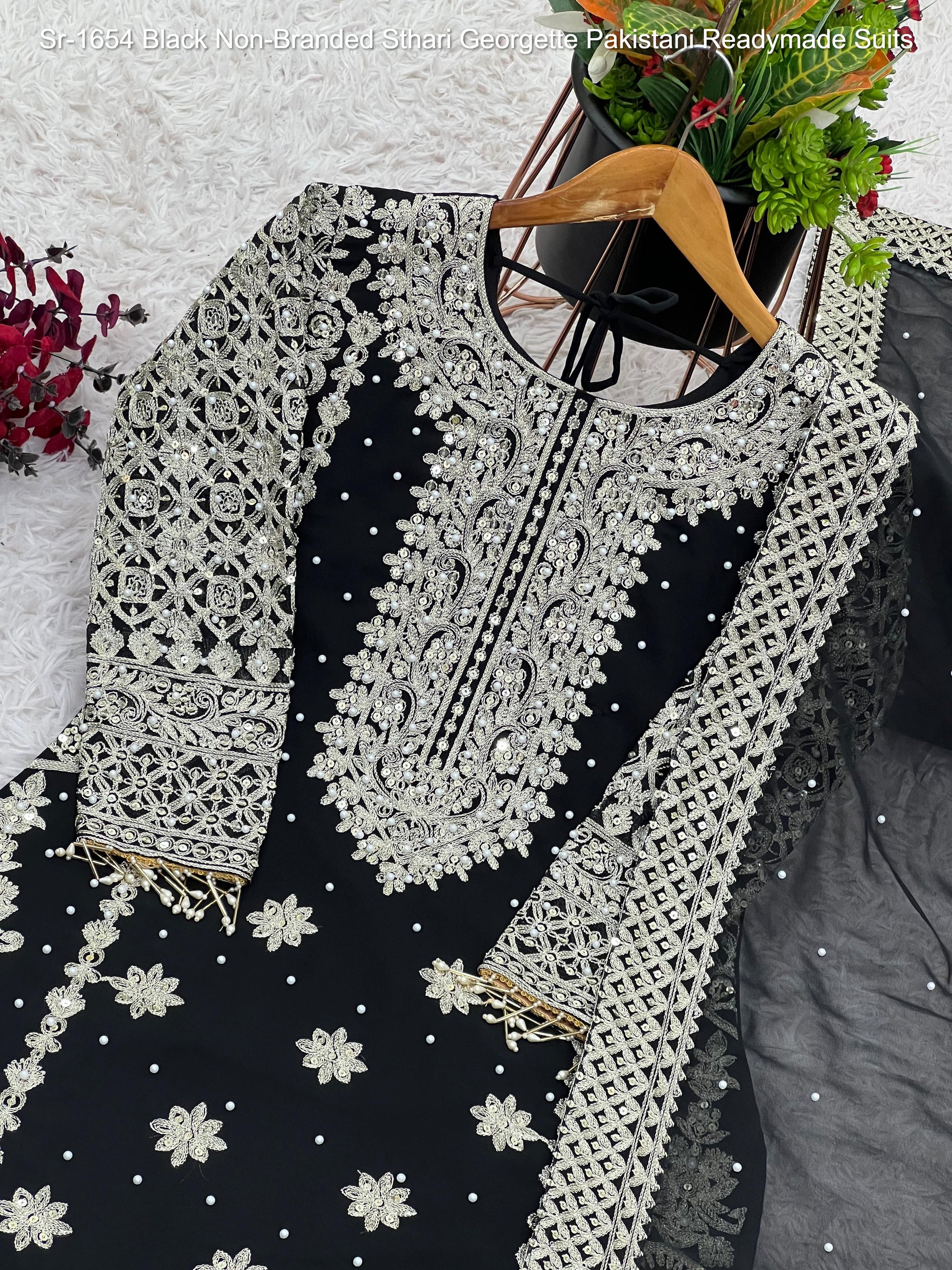 Sr-1654 Black Non-Branded Sthari Georgette Pakistani Readymade Suits
