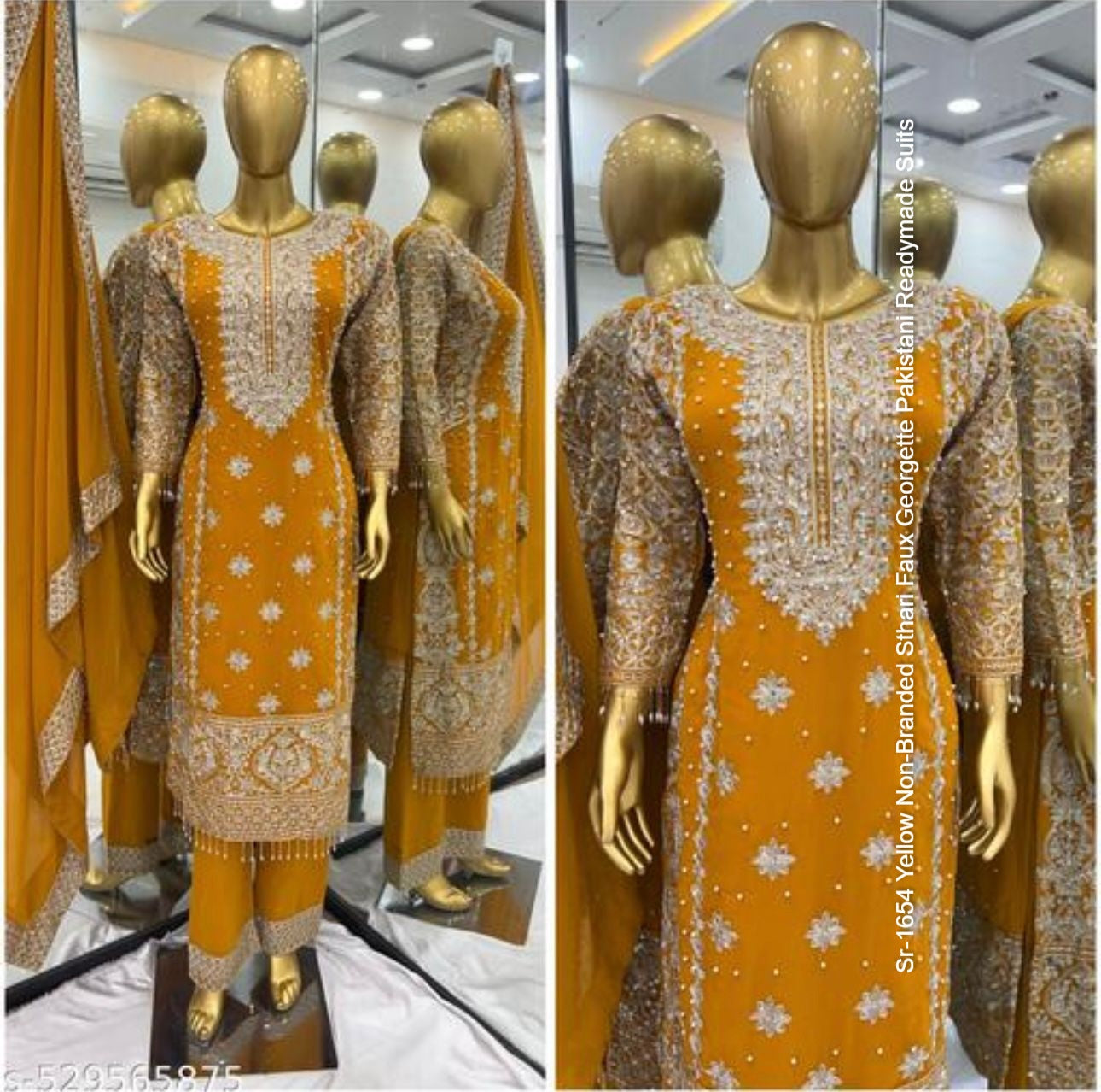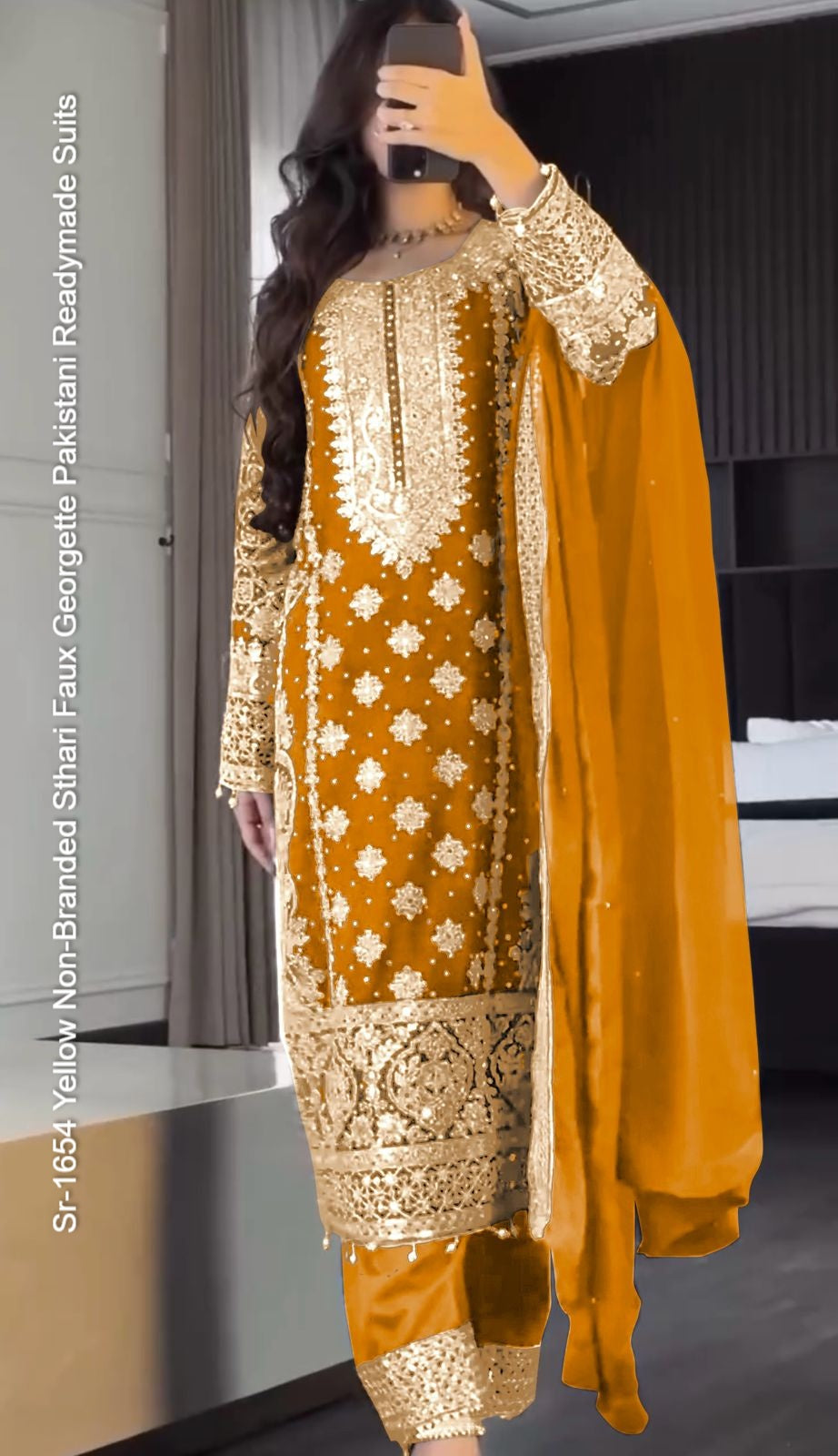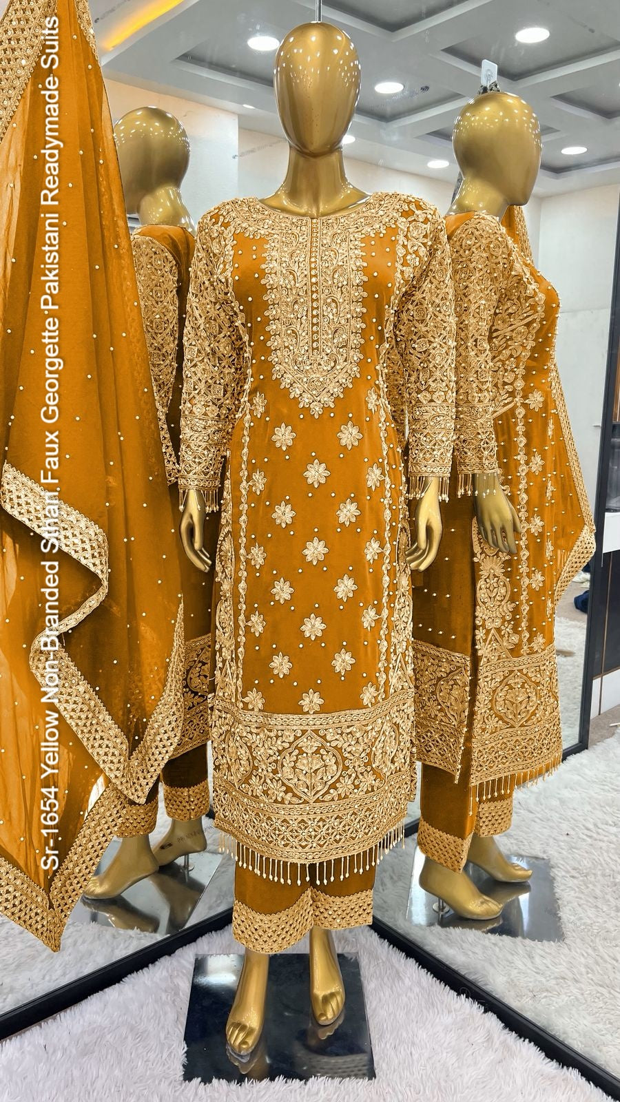 Sr-1654 Yellow Non-Branded Sthari Faux Georgette Pakistani Readymade Suits