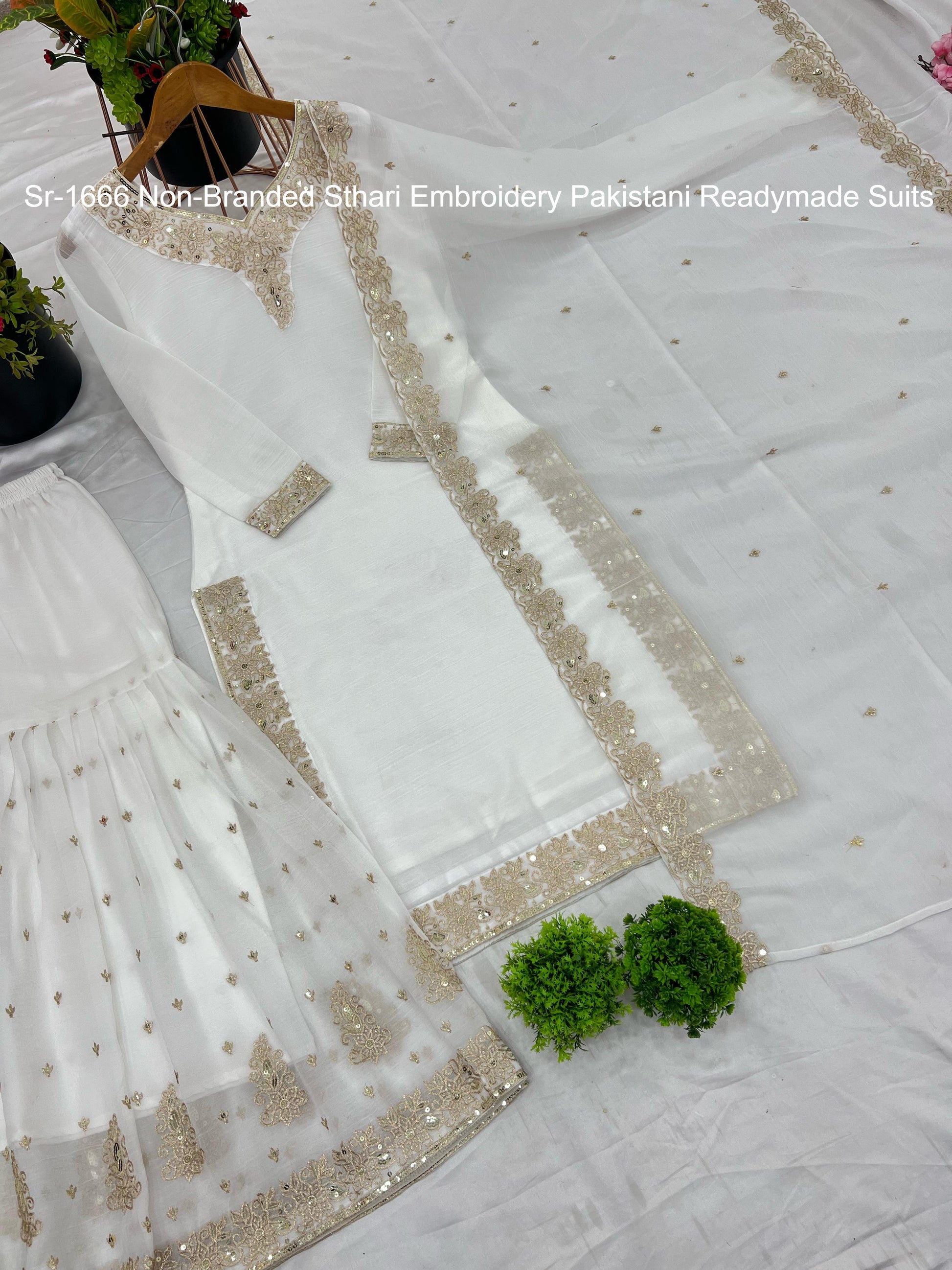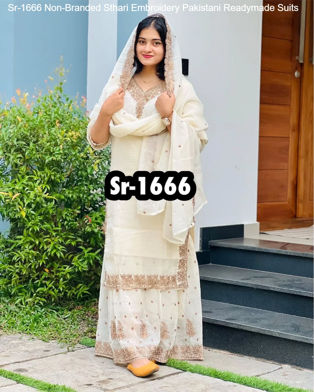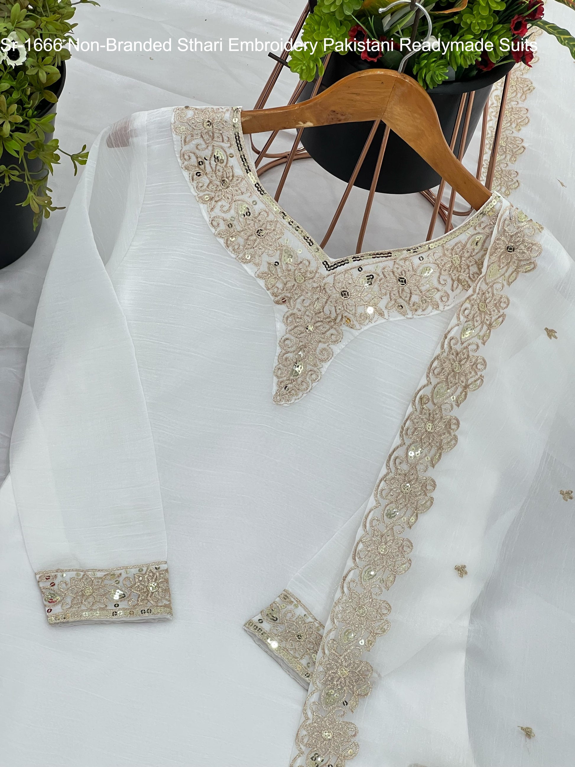 Sr-1666 White Non-Branded Sthari Embroidery Pakistani Readymade Suits