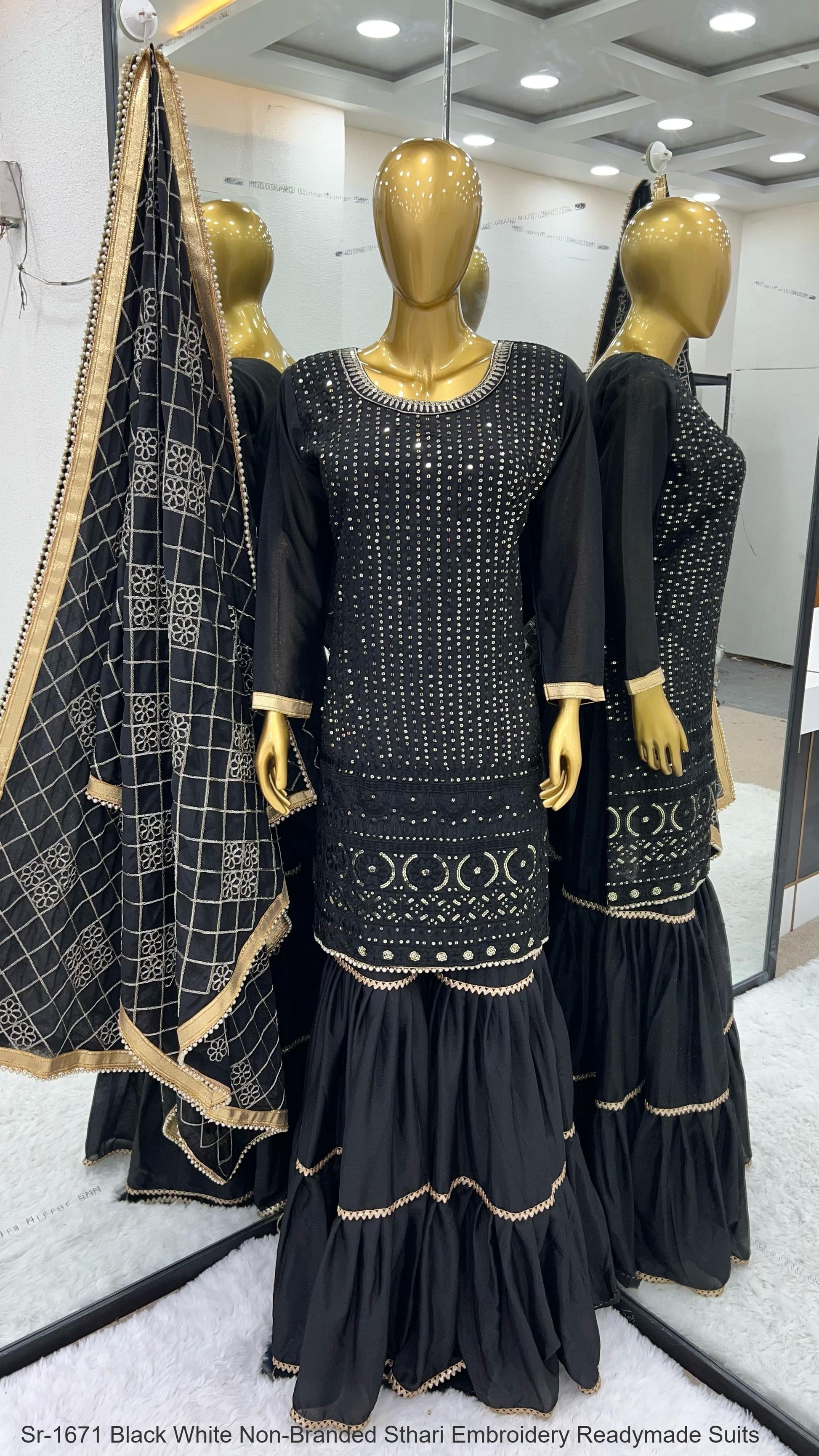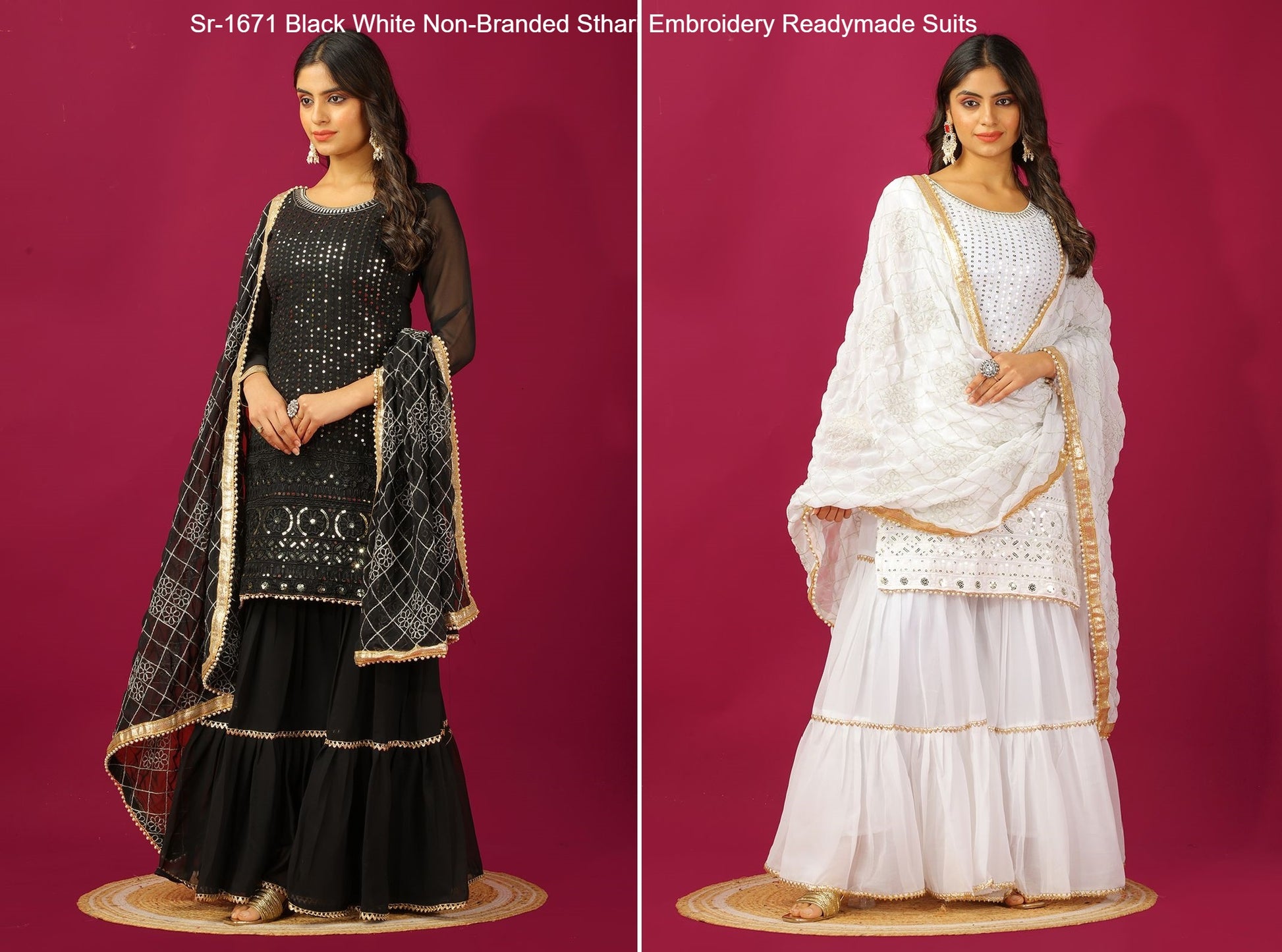 Sr-1671 Black White Non-Branded Sthari Embroidery Readymade Suits
