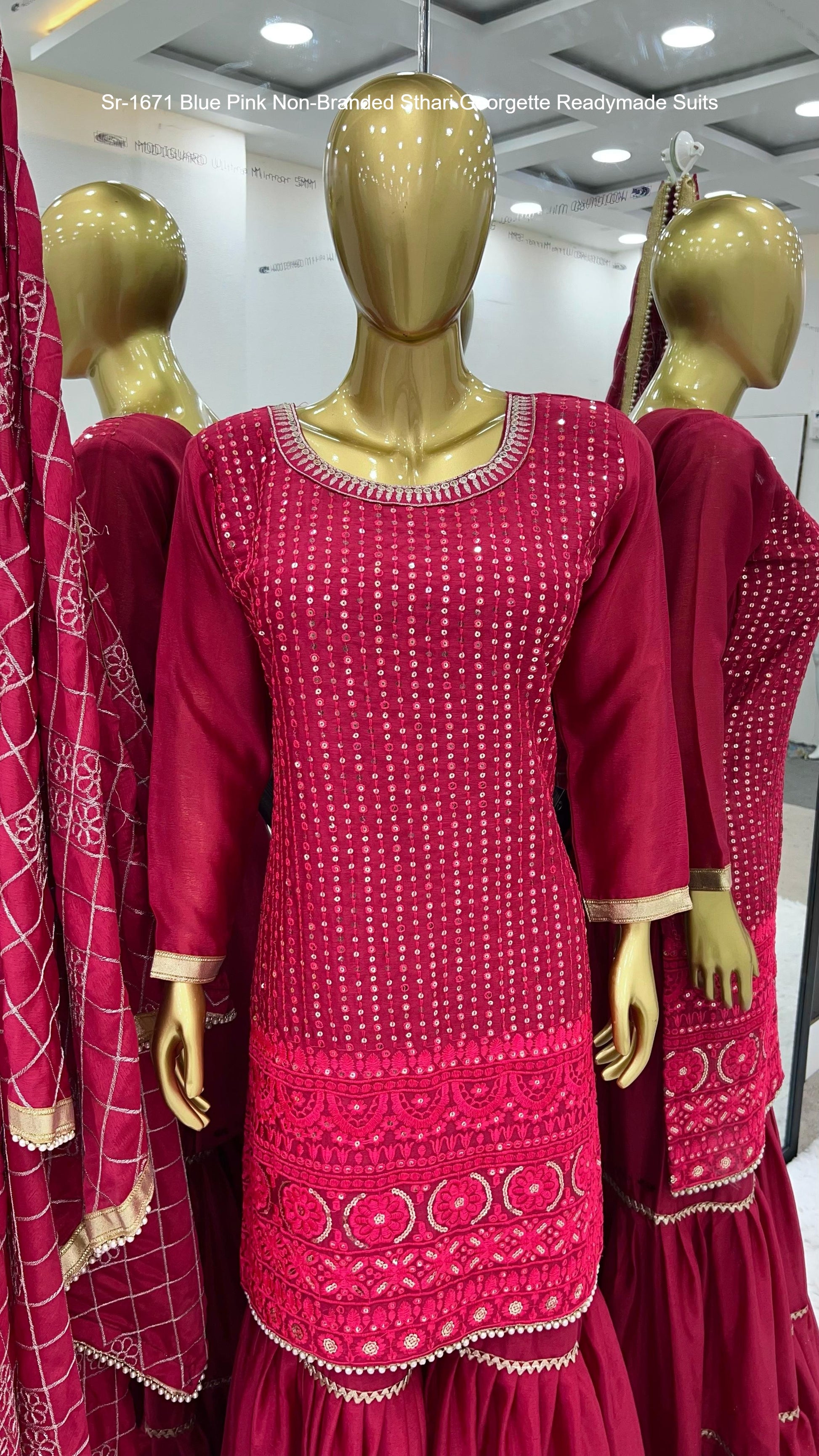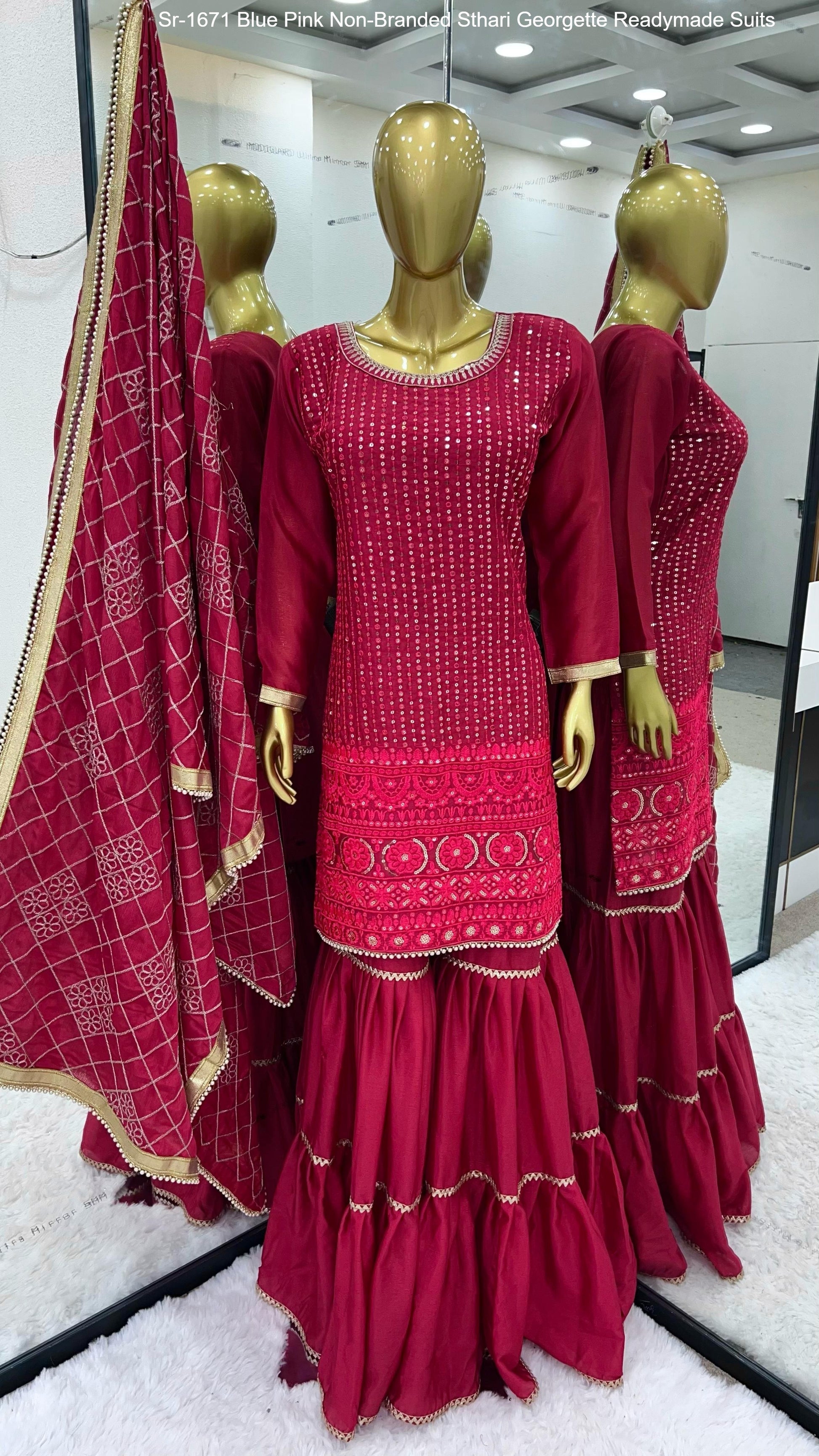 Sr-1671 Blue Pink Non-Branded Sthari Georgette Readymade Suits