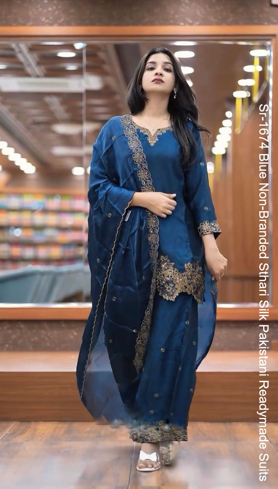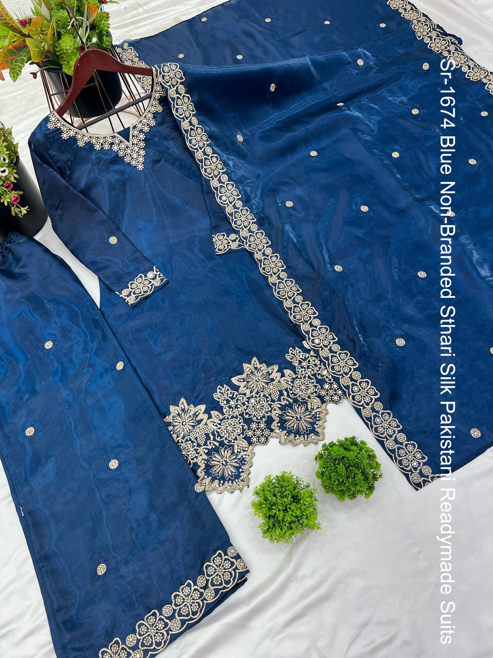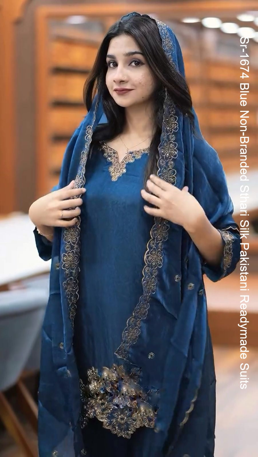 - Sr-1674 Blue Non-Branded Sthari Silk Pakistani Readymade Suits Dealer Ahmedabad Surat Wholesale Gujarat India Lowest Price Best Quality Buy Purchase Shipping Kurta Salwaar Kameez Also free Cash on delivery
