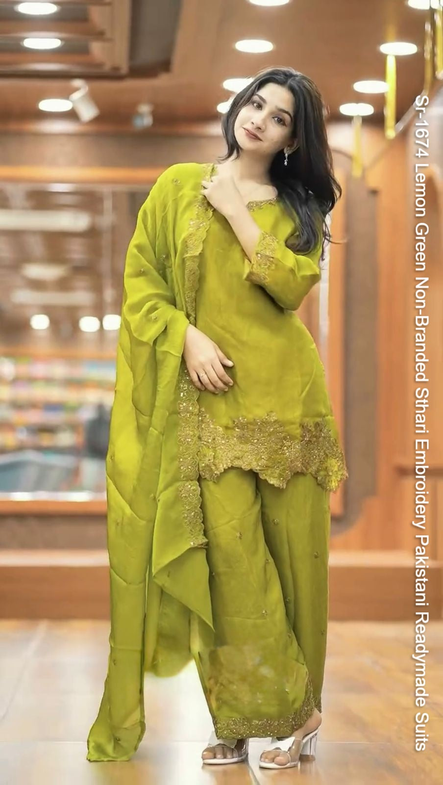 - Sr-1674 Lemon Green Non-Branded Sthari Embroidery Pakistani Readymade Suits Dealer Ahmedabad Surat Wholesale Gujarat India Lowest Price Best Quality Buy Purchase Shipping Kurta Salwaar Kameez Also free Cash on delivery