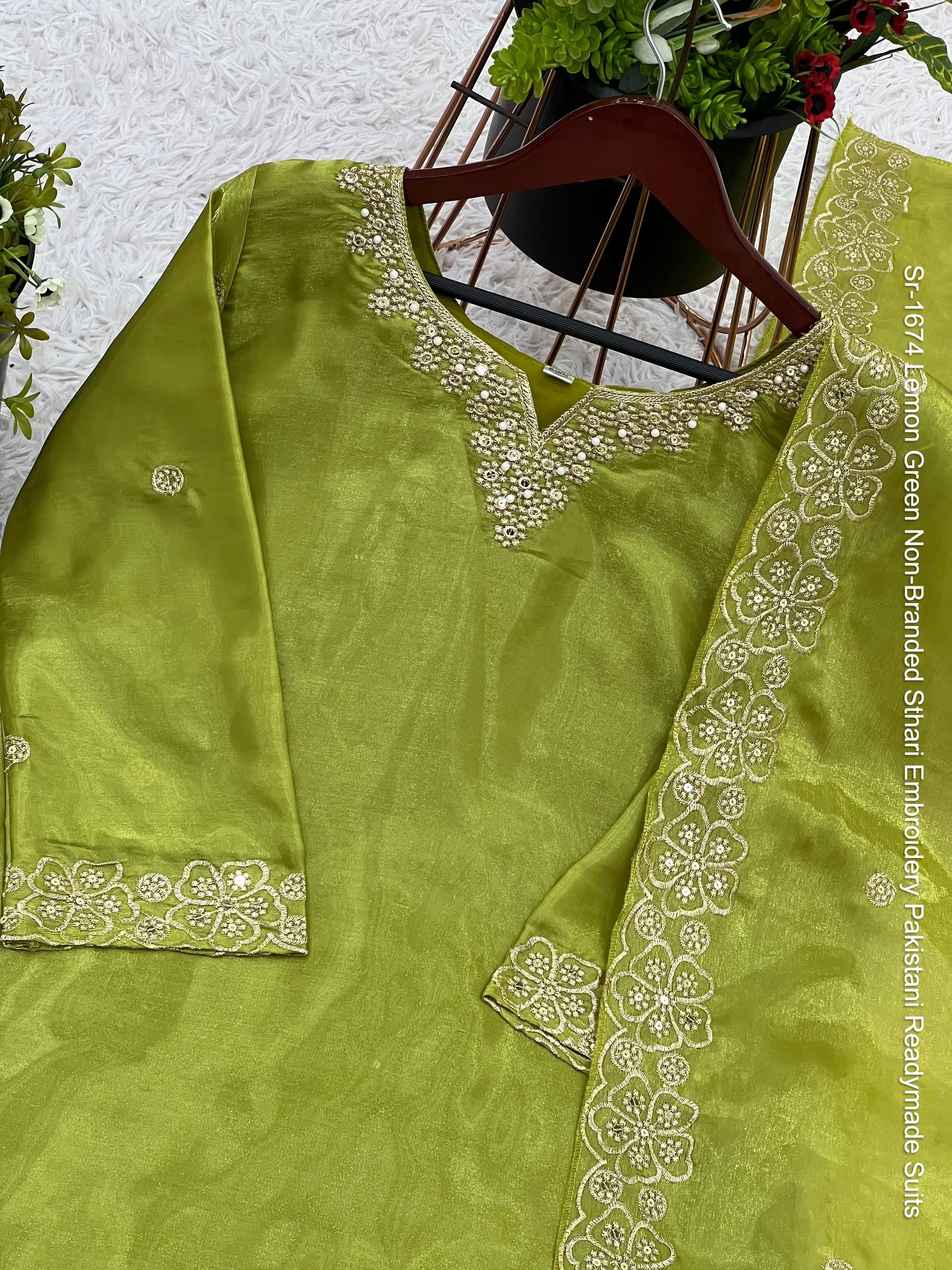 Sr-1674 Lemon Green Non-Branded Sthari Embroidery Pakistani Readymade Suits