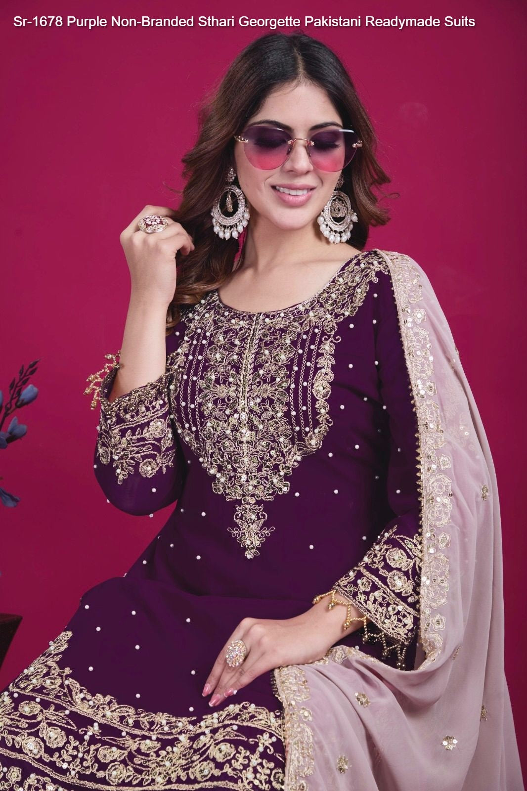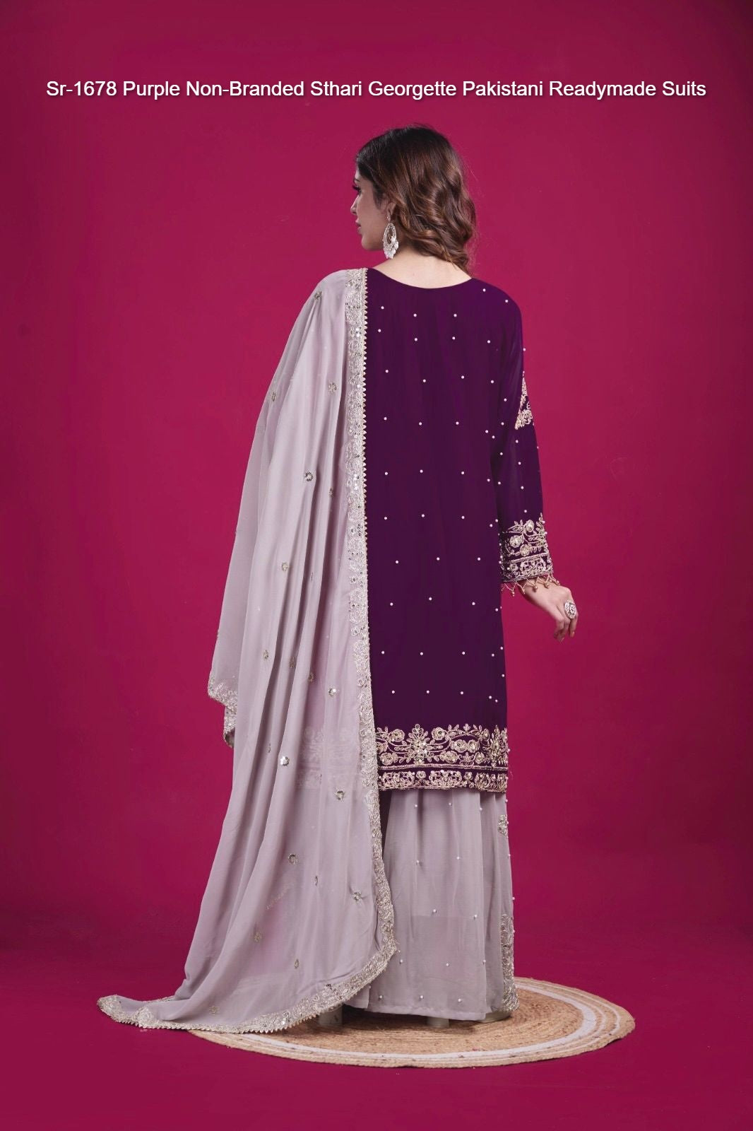 Sr-1678 Purple Non-Branded Sthari Georgette Pakistani Readymade Suits