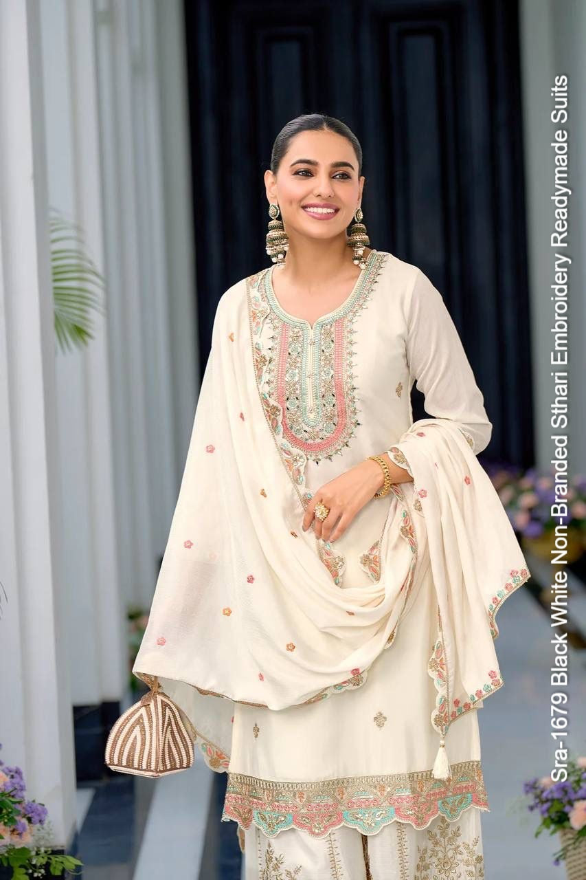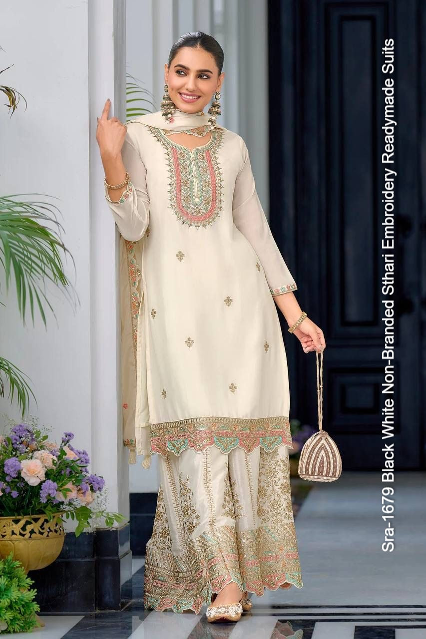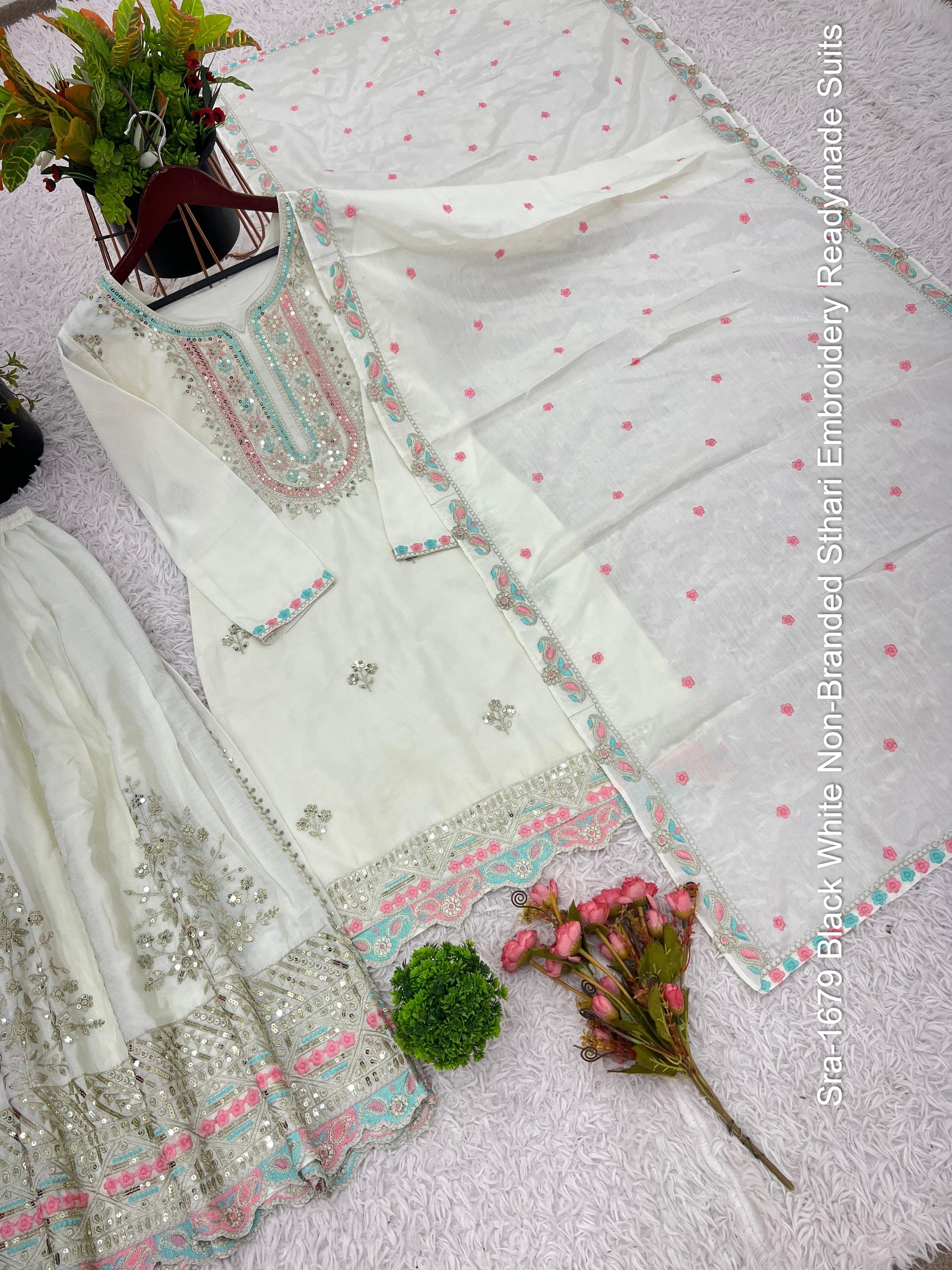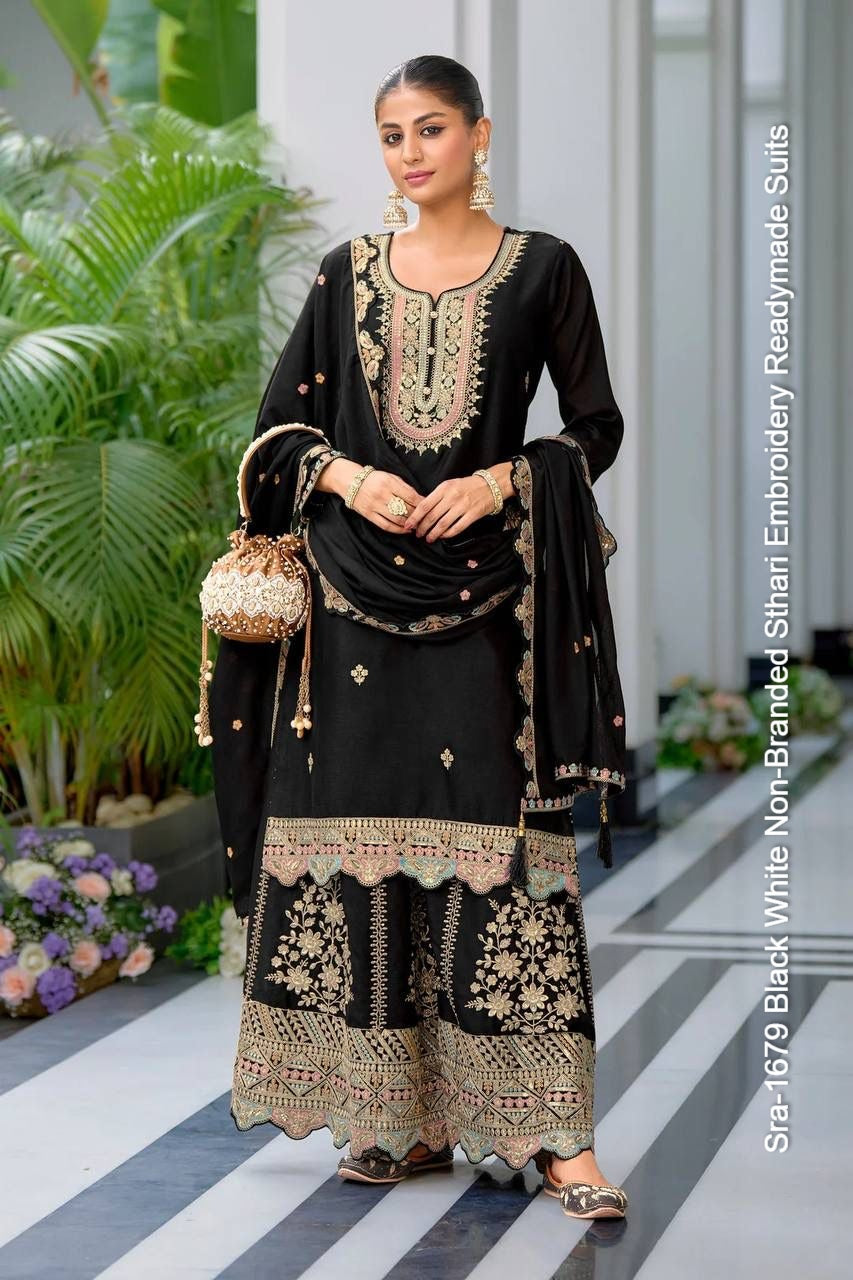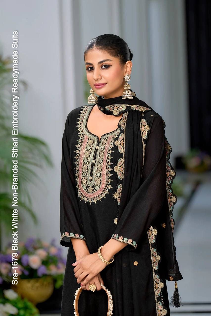 Sra-1679 Black White Non-Branded Sthari Embroidery Readymade Suits